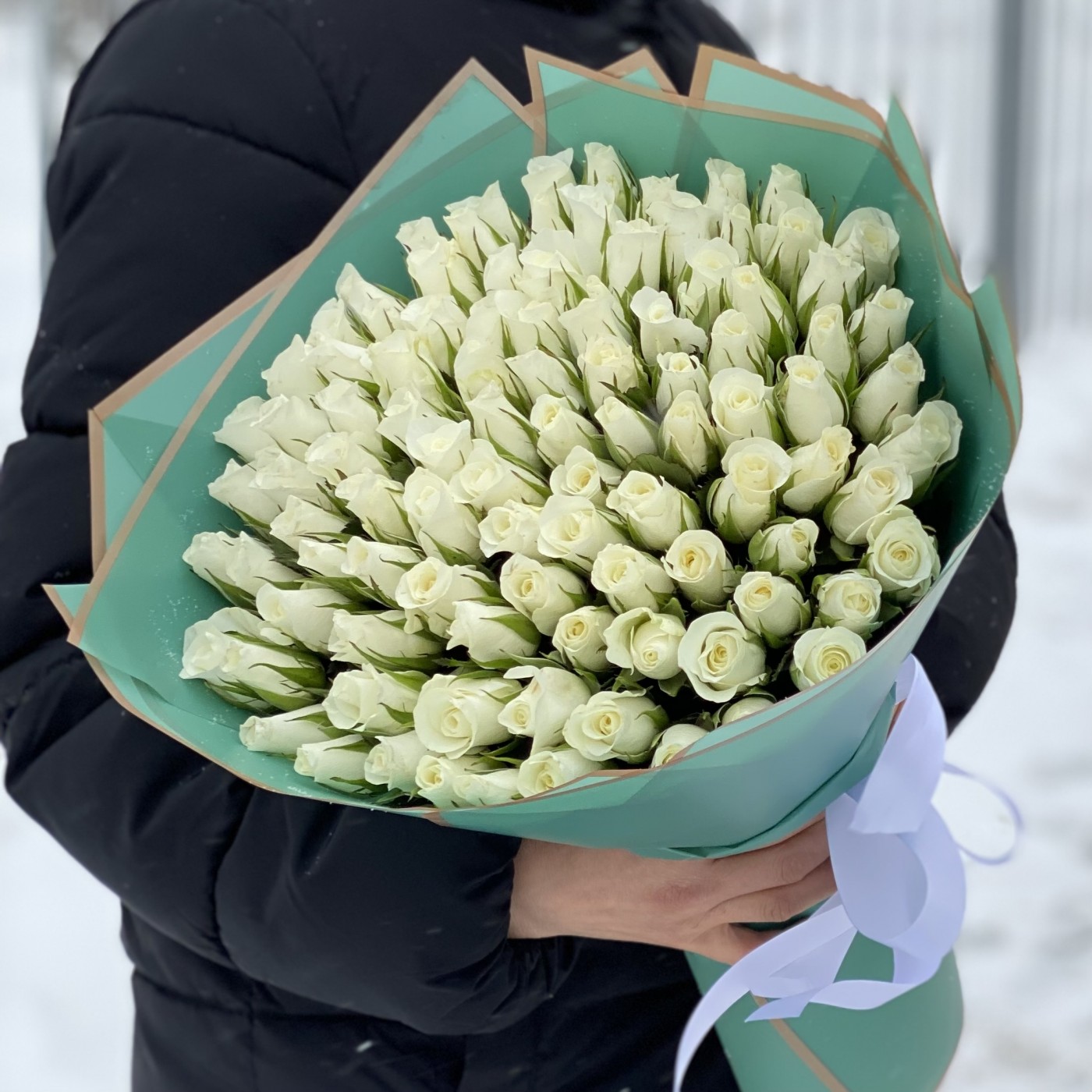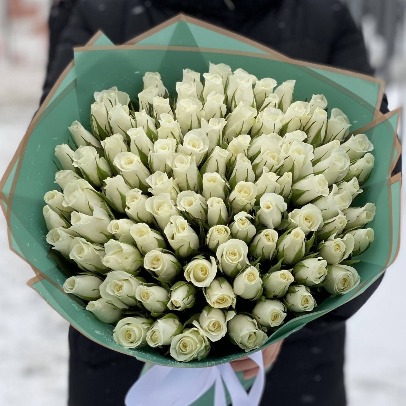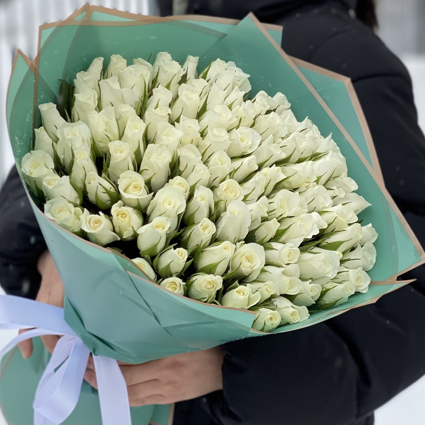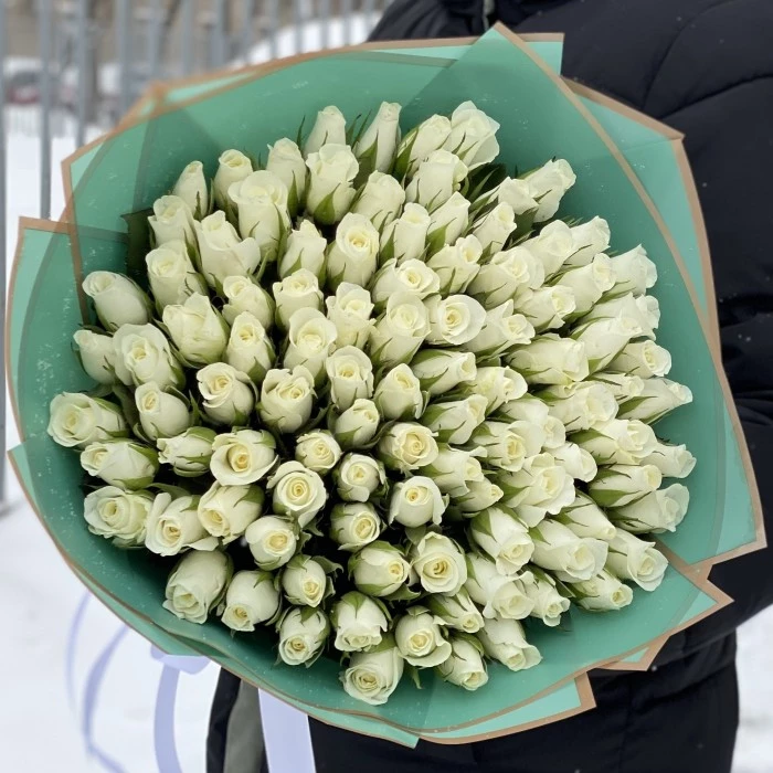 Это утончённый флористический ансамбль из 101 белой розы, в котором нет фальши. Отличный выбор для случая, когда так важно продемонстрировать серьёзность намерений, подлинность любви, искреннее уважение. Преподнося белые розы, вы не просто рассказываете о главном, но и делаете человека счастливее. Невероятная красота и тонкий аромат этих цветов вызывают массу эмоций, которые хочется чувствовать снова и снова.