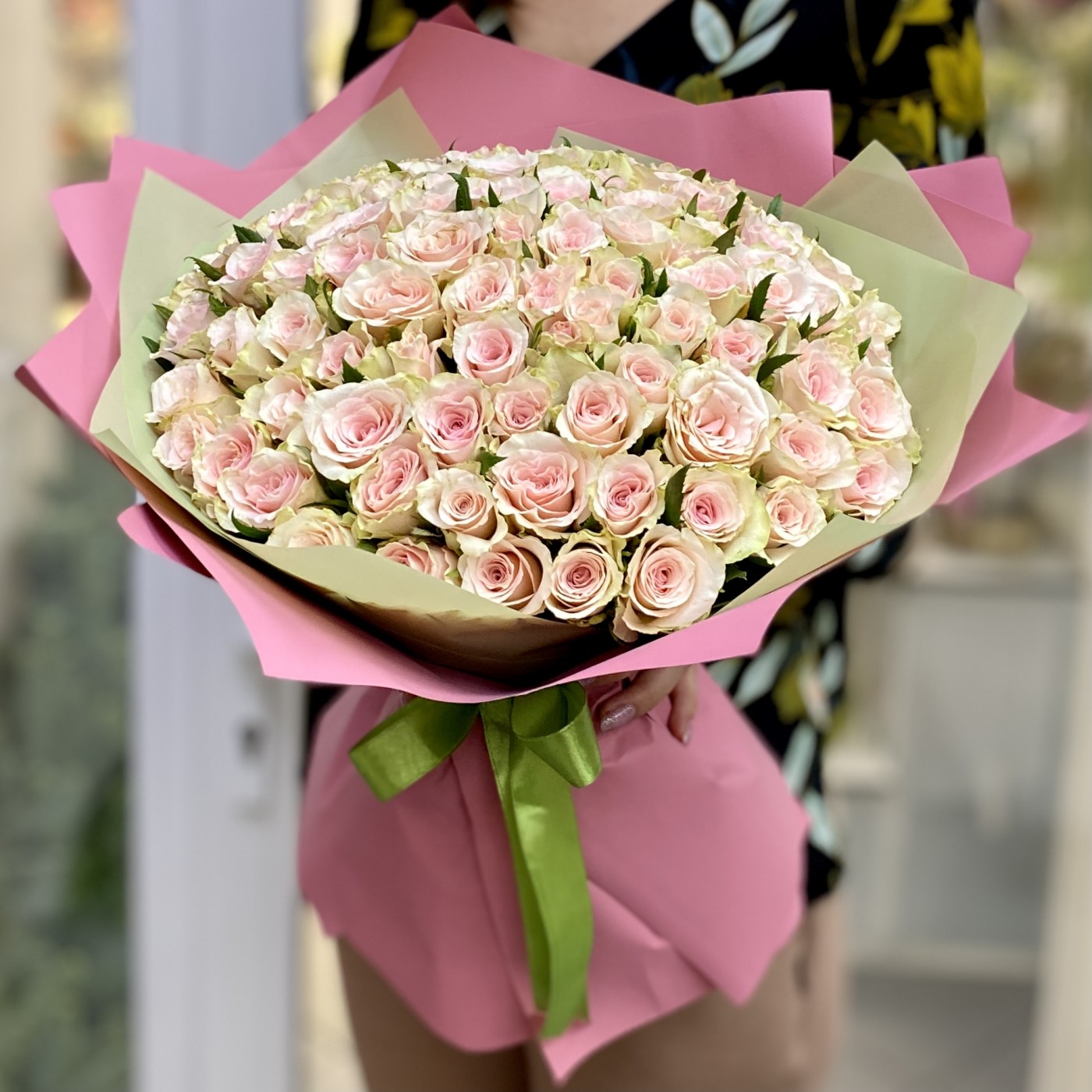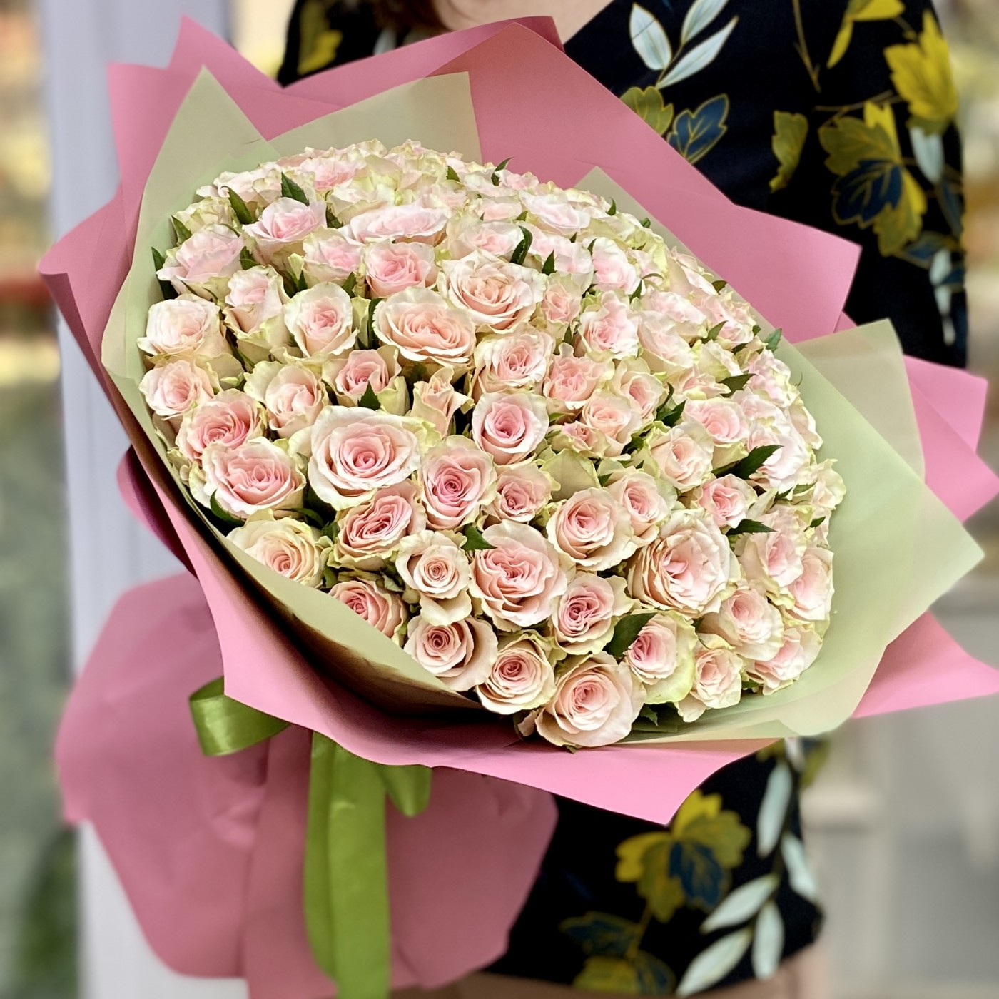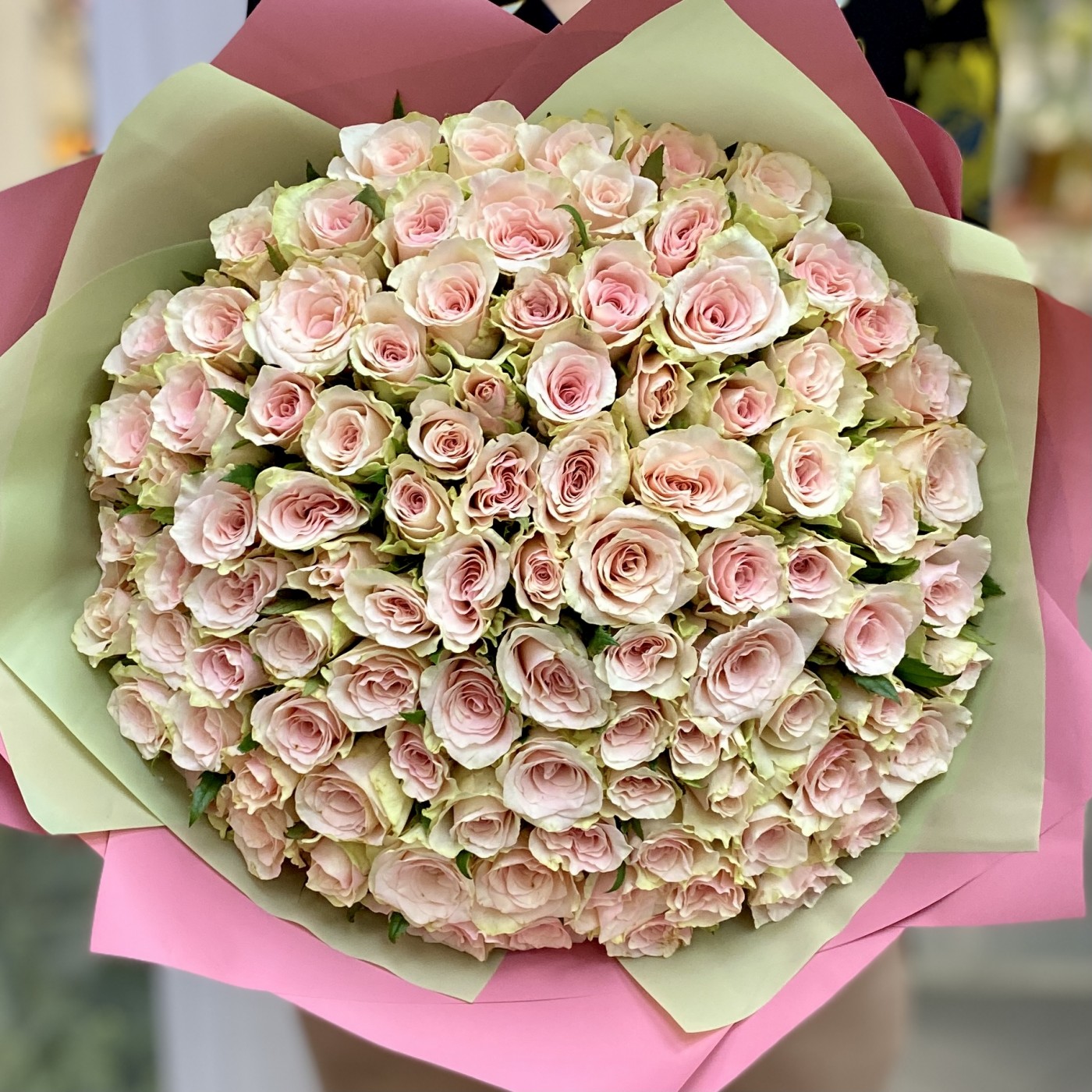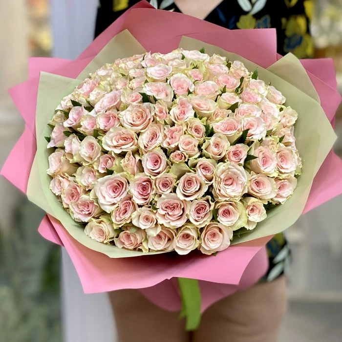 101 нежная роза Пик Атена - это настоящее воплощение очарования, элегантности и трепета. Небольшие бутоны нежного цвета олицетворяют романтику, влюбленность, волнение первых чувств и желание быть вместе. Поэтому вряд ли можно найти более символичное дополнение свидания, чем этот букет из 101 нежной розы Пик Атена, который скажет многое безо всяких слов. Это прекрасный жест, который демонстрирует особое расположение и восхищение, а благодаря тщательному отбору каждого цветка общая композиция получается невероятно объемной, свежей и эстетичной.