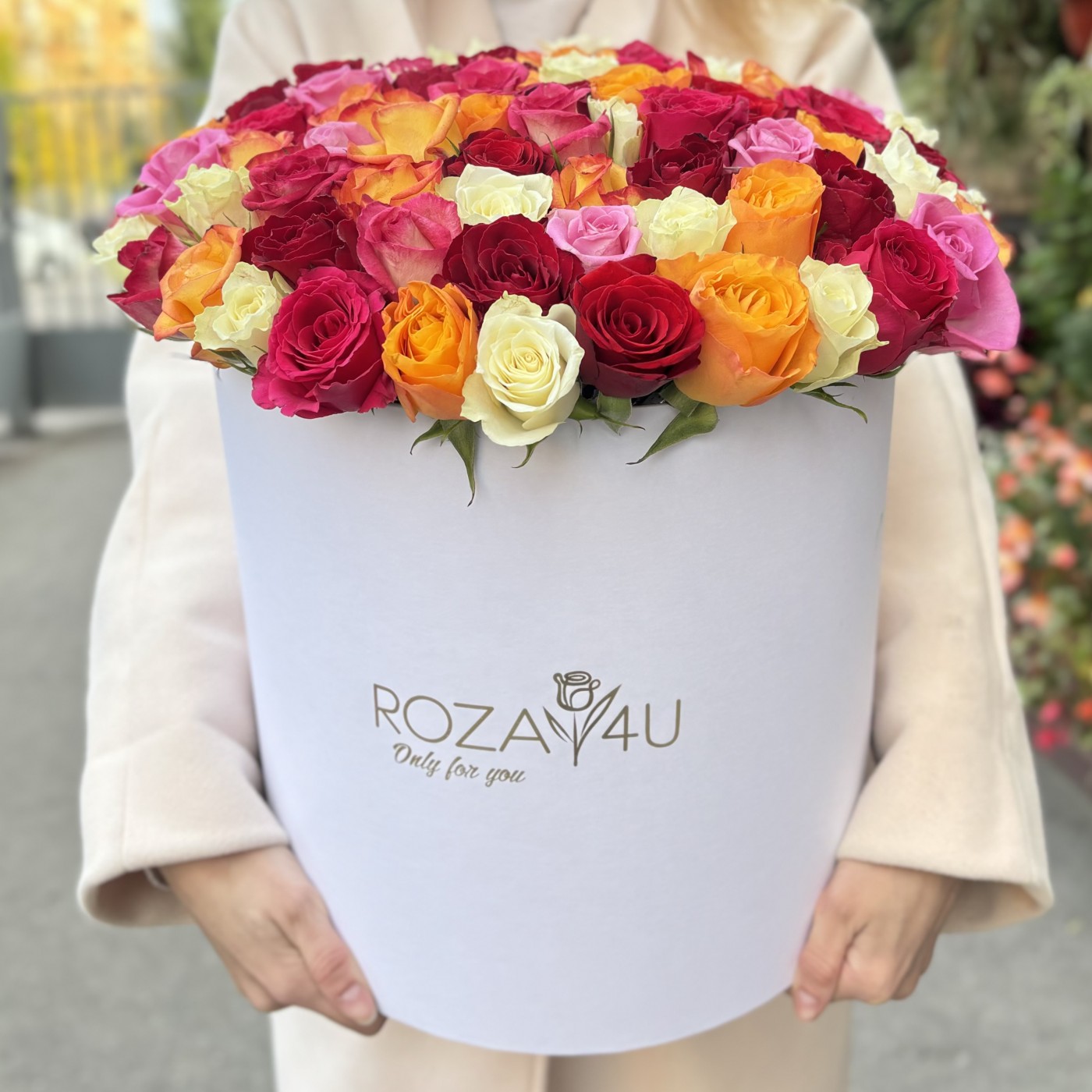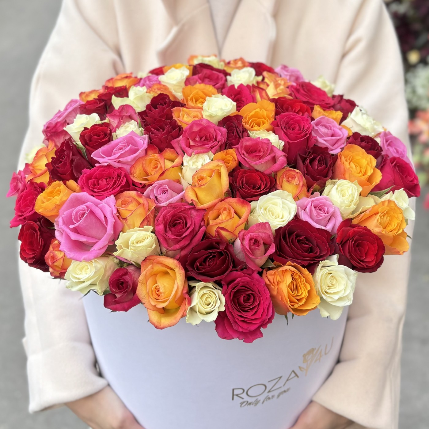 Композиция из ярких роз в коробке предназначен для создания самых приятных эмоций.