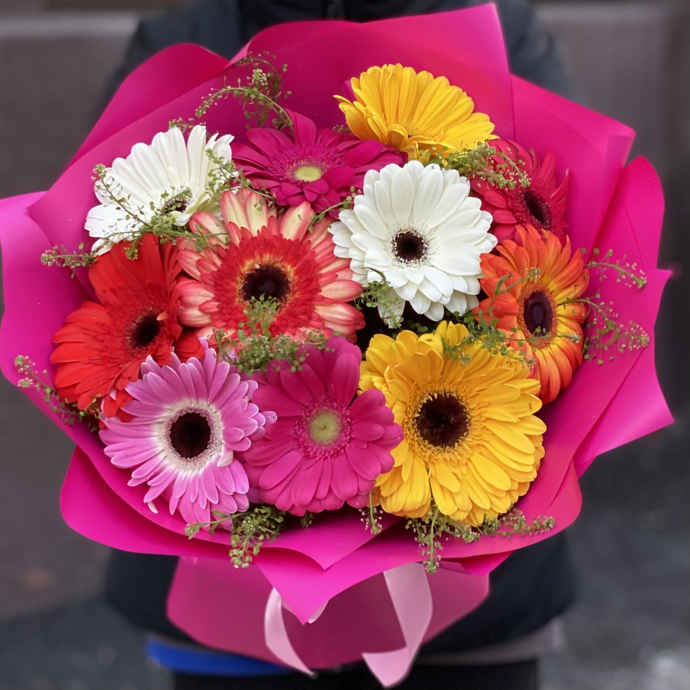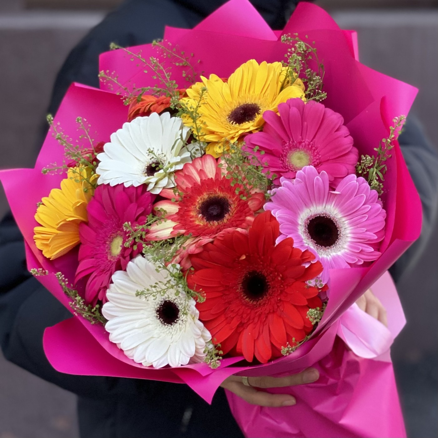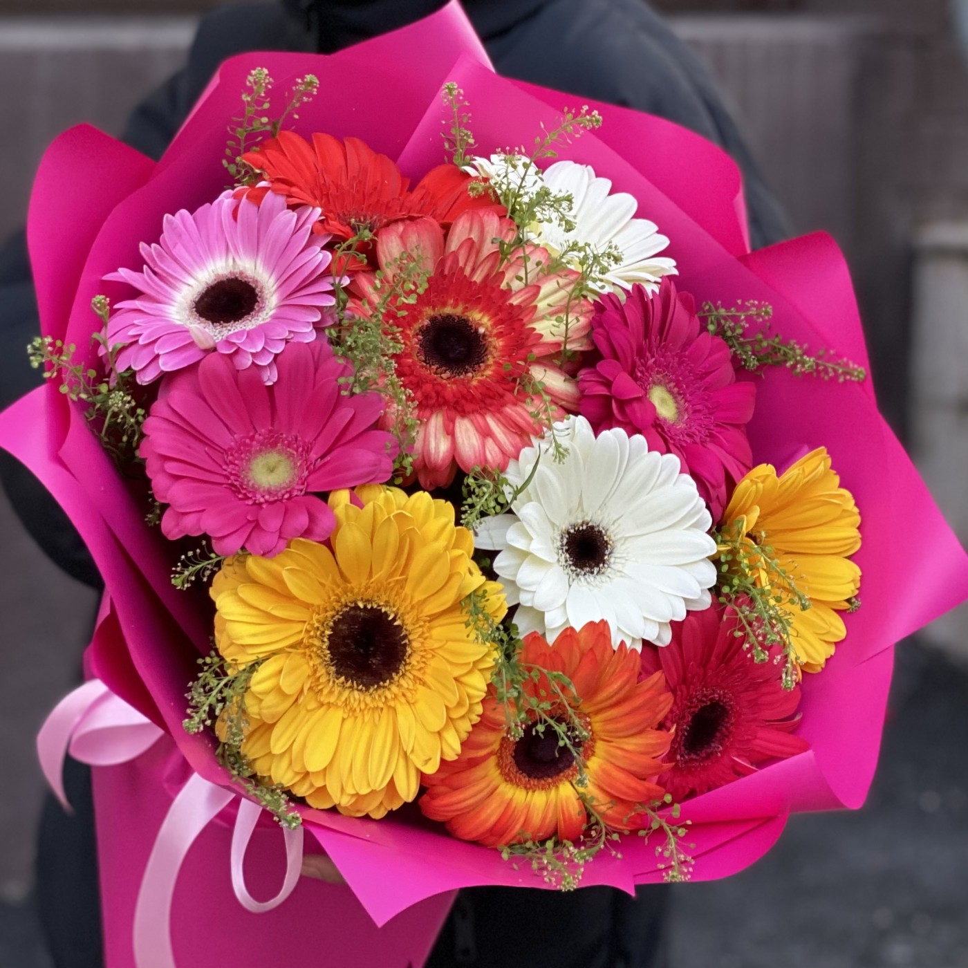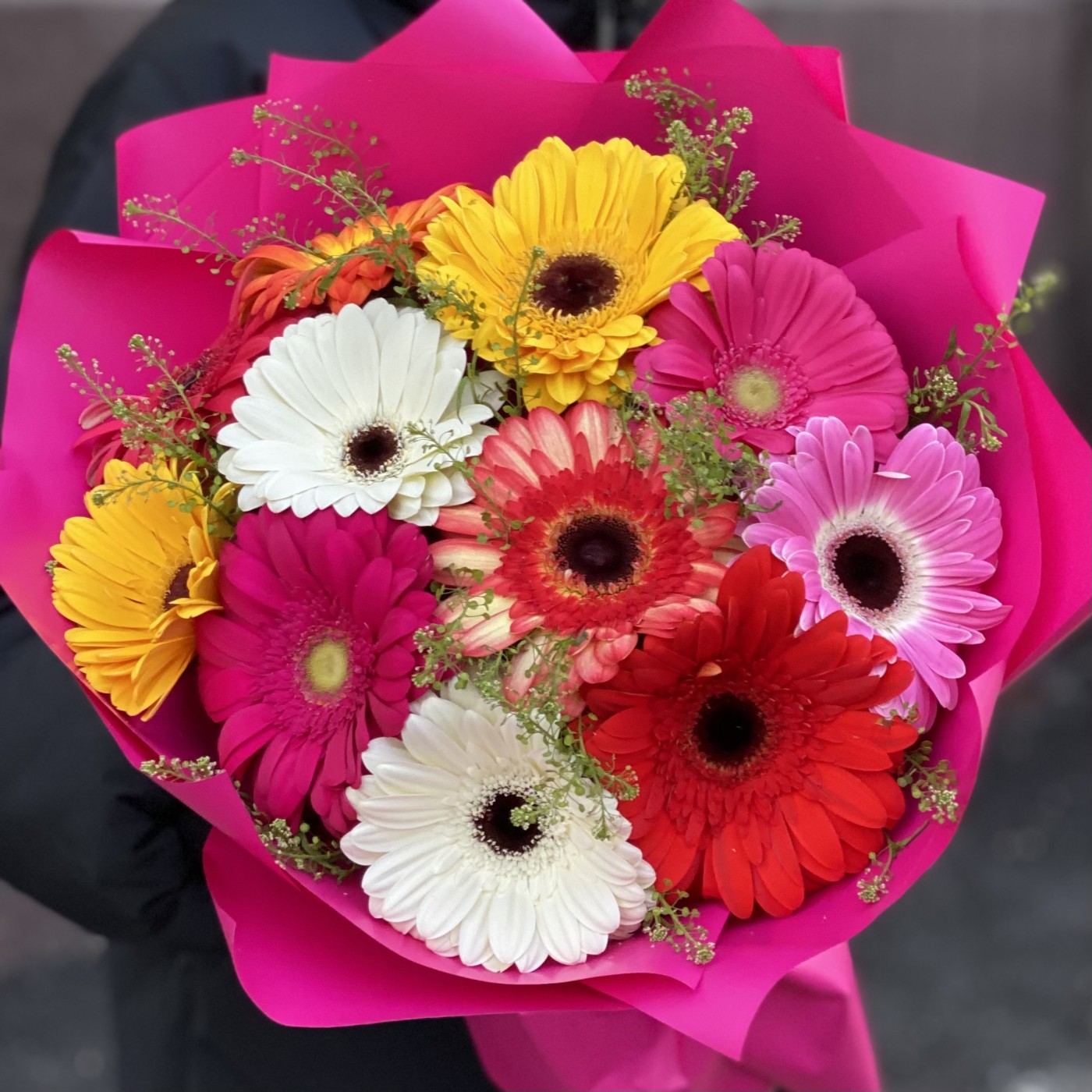 За три месяца мы доставили товар "11 гербер микс с гринбелом" по следующим локациям: