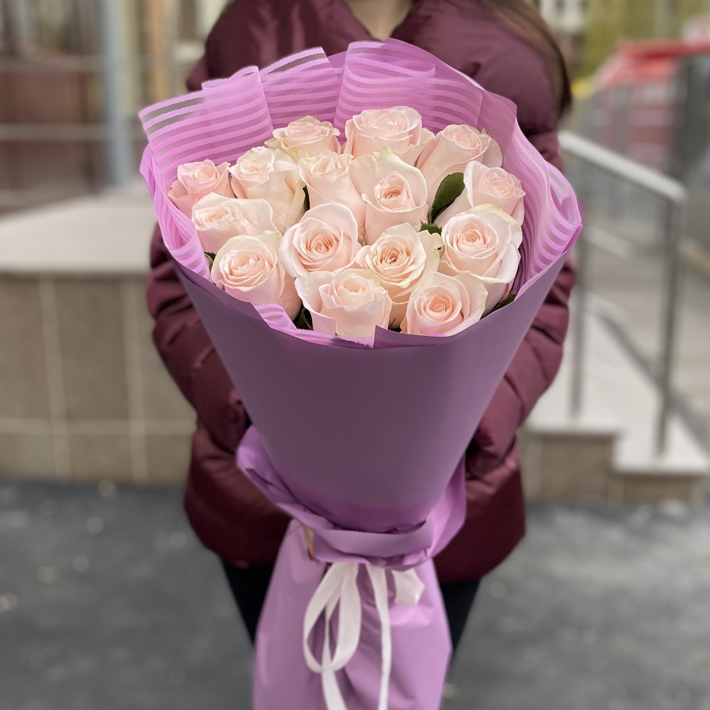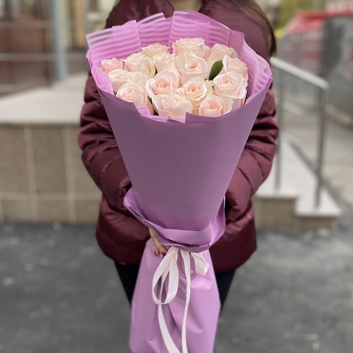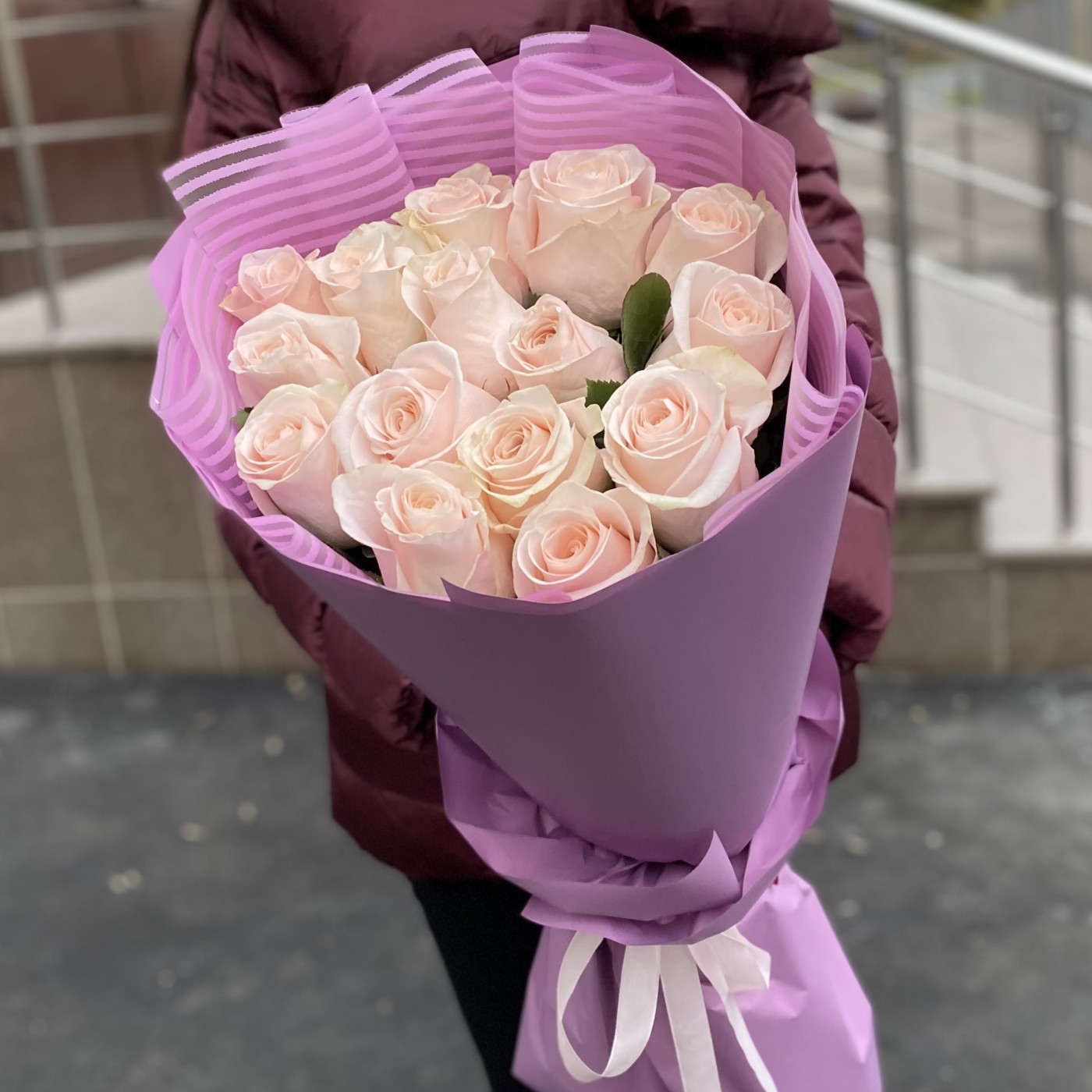 Букет из 15 высоких роз сорта Помароса отлично подойдет в качестве приятного сюрприза на первое свидание или как подарок для вашей подруги или коллеги в день рождения.
