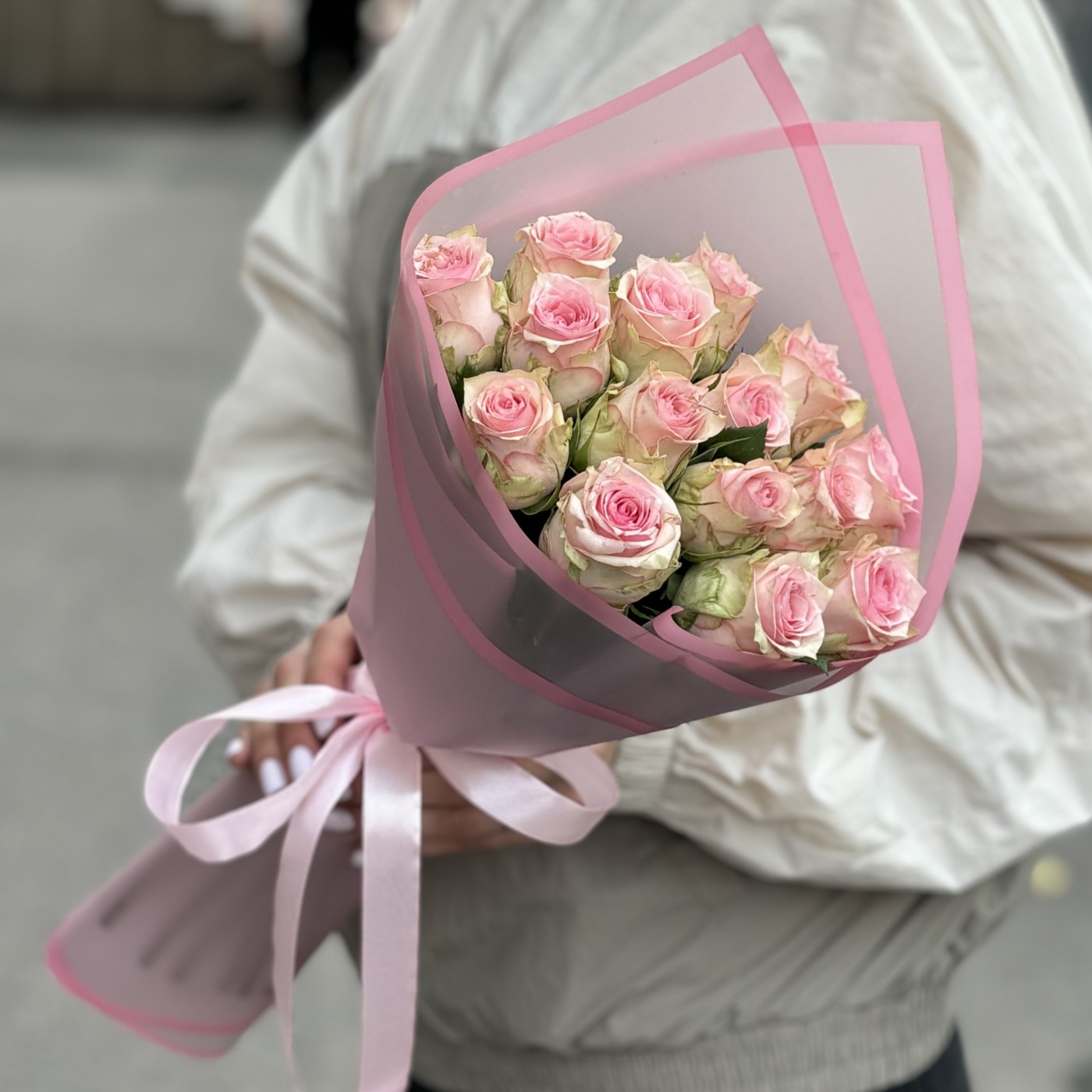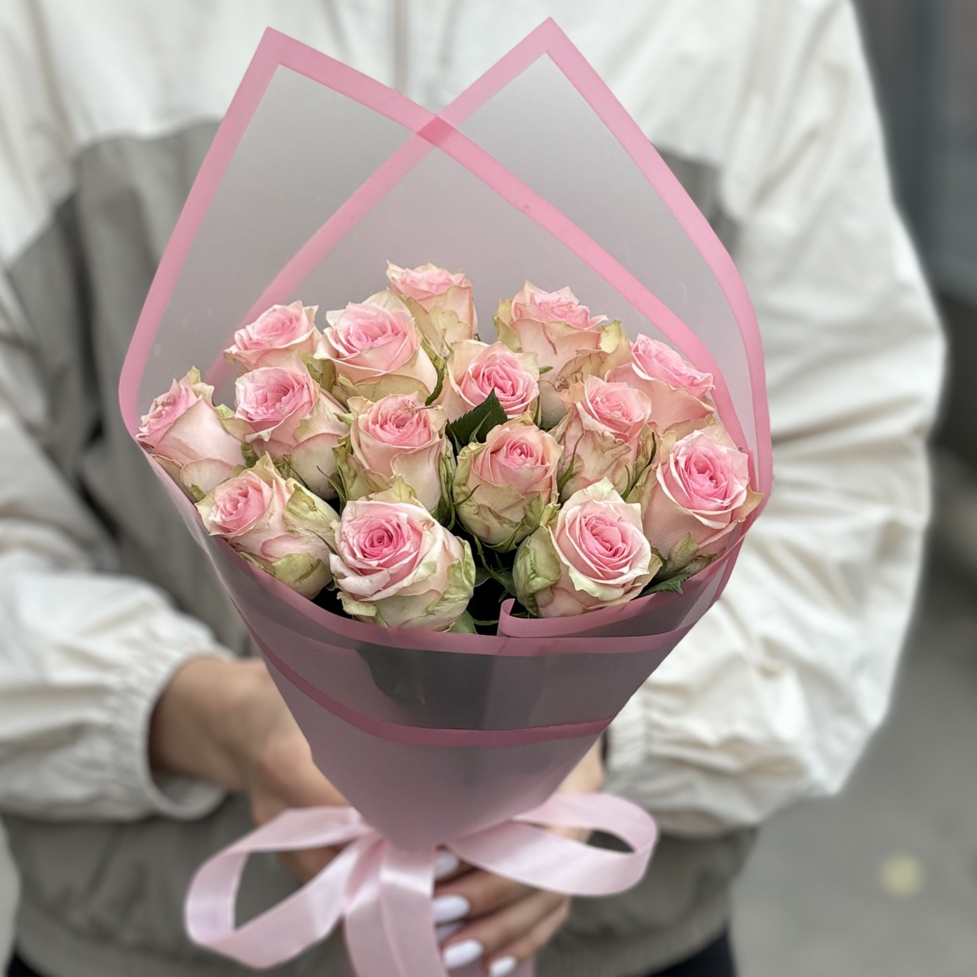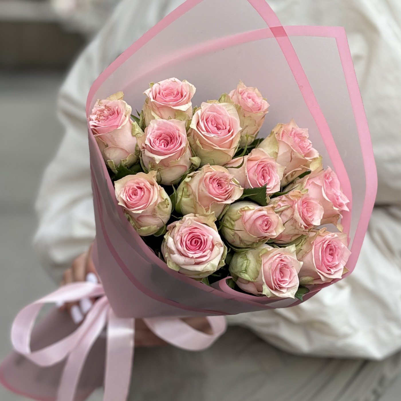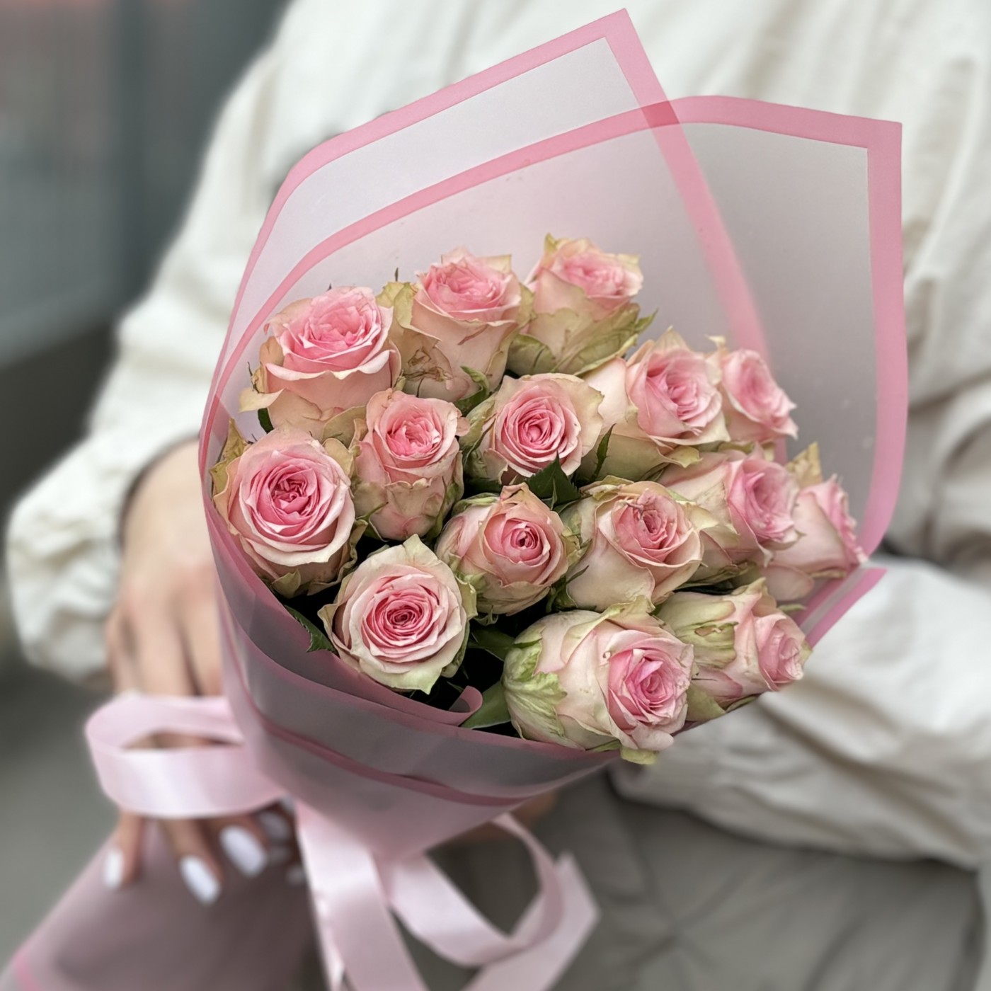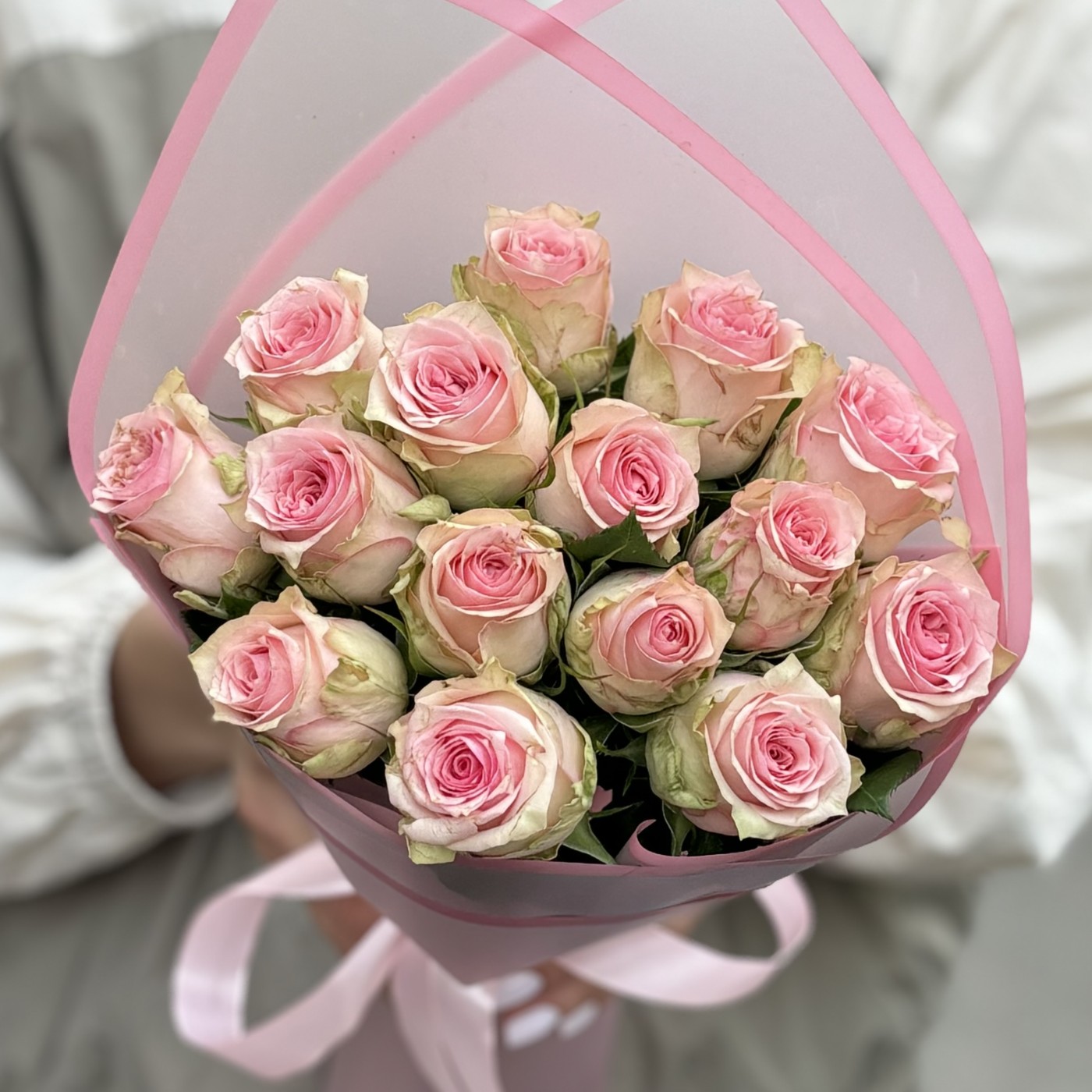 Букет из 15 нежно-розовых роз сорта Судоку – это изысканный и утонченный подарок, который будет уместен на любом торжестве и по любому другому случаю. Каждая роза в этом букете представляет собой произведение искусства природы, с нежными, бархатистыми лепестками, окрашенными в деликатный розовый оттенок. Цветы сорта Судоку отличаются своей изящной формой и приятным, едва уловимым ароматом. Стебли роз длинные и прочные, что позволяет им долго сохранять свежесть и привлекательность. Эти розы тщательно подобраны и аккуратно оформлены в стильную упаковку, которая подчеркивает их естественную красоту и добавляет букету завершенный вид.