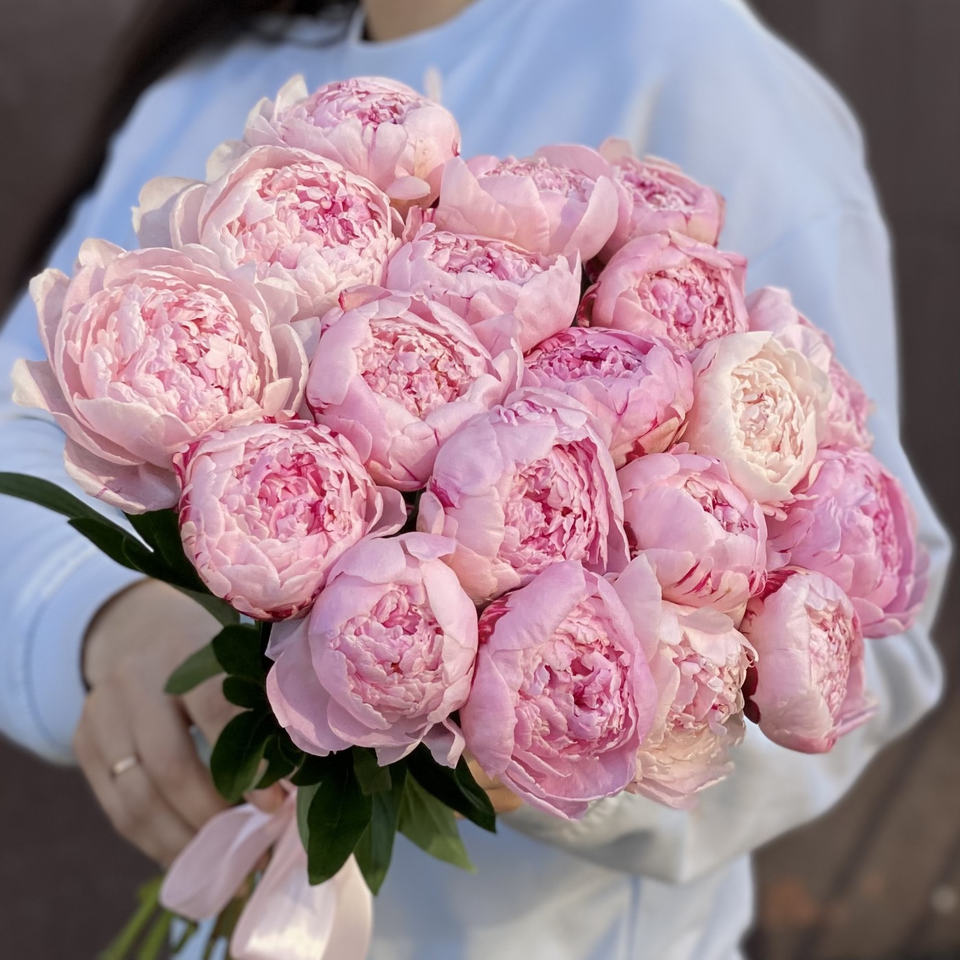 Нежный букет из 19 пионов Сара Бернар. Букет создаст прекрасное настроение каждой девушке.