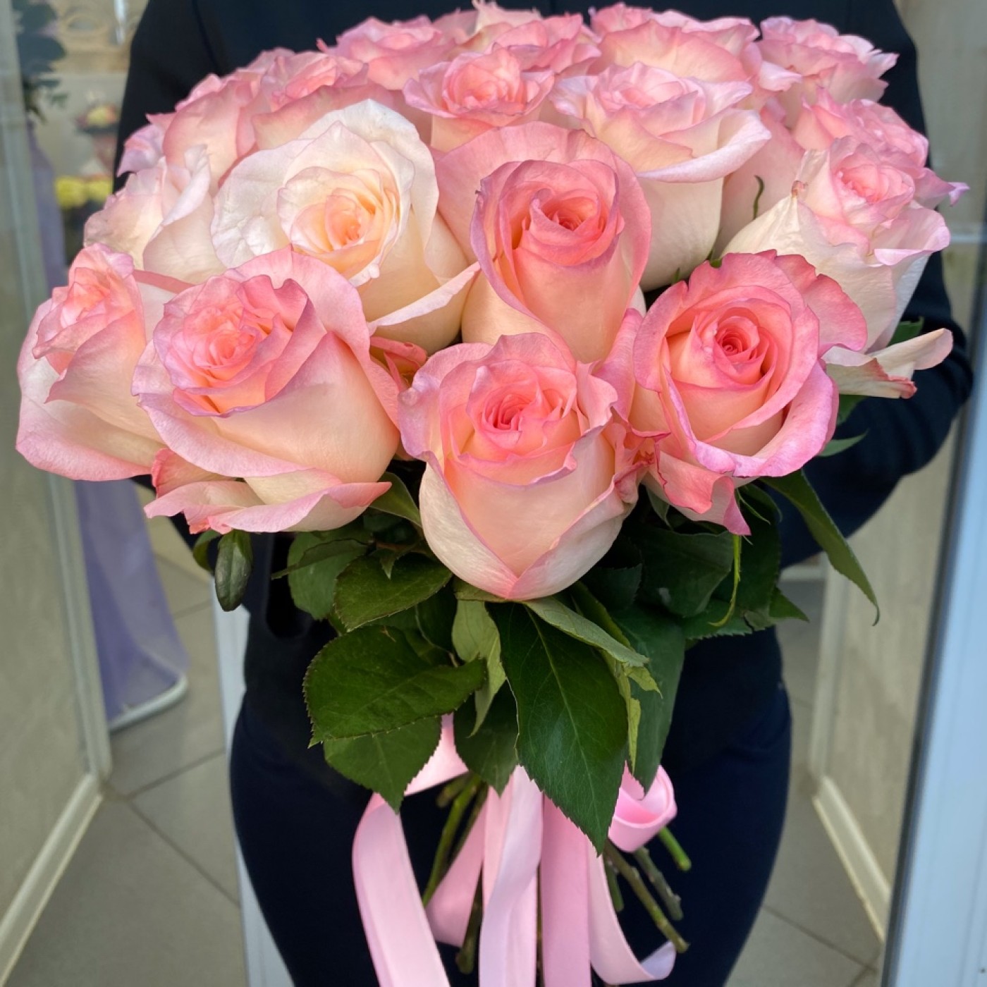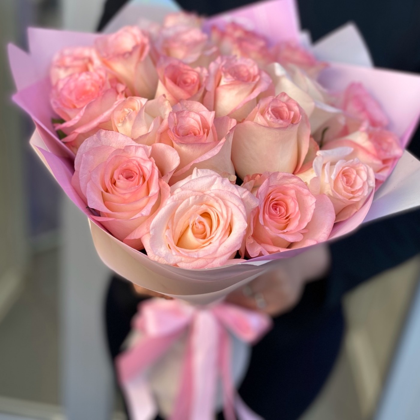 Любовь о заказе: Корпоративный букет из 7 розовых розОчень удобный сервис и простая схема заказа, которая включает итоговое утверждение по фото. Большое спасибо за положительные эмоции!