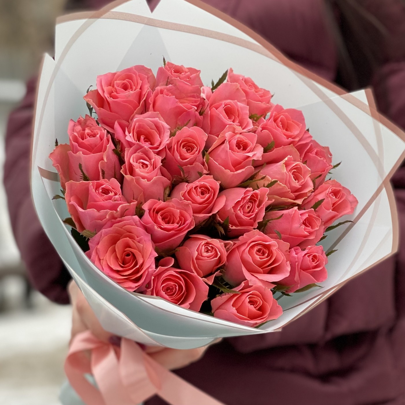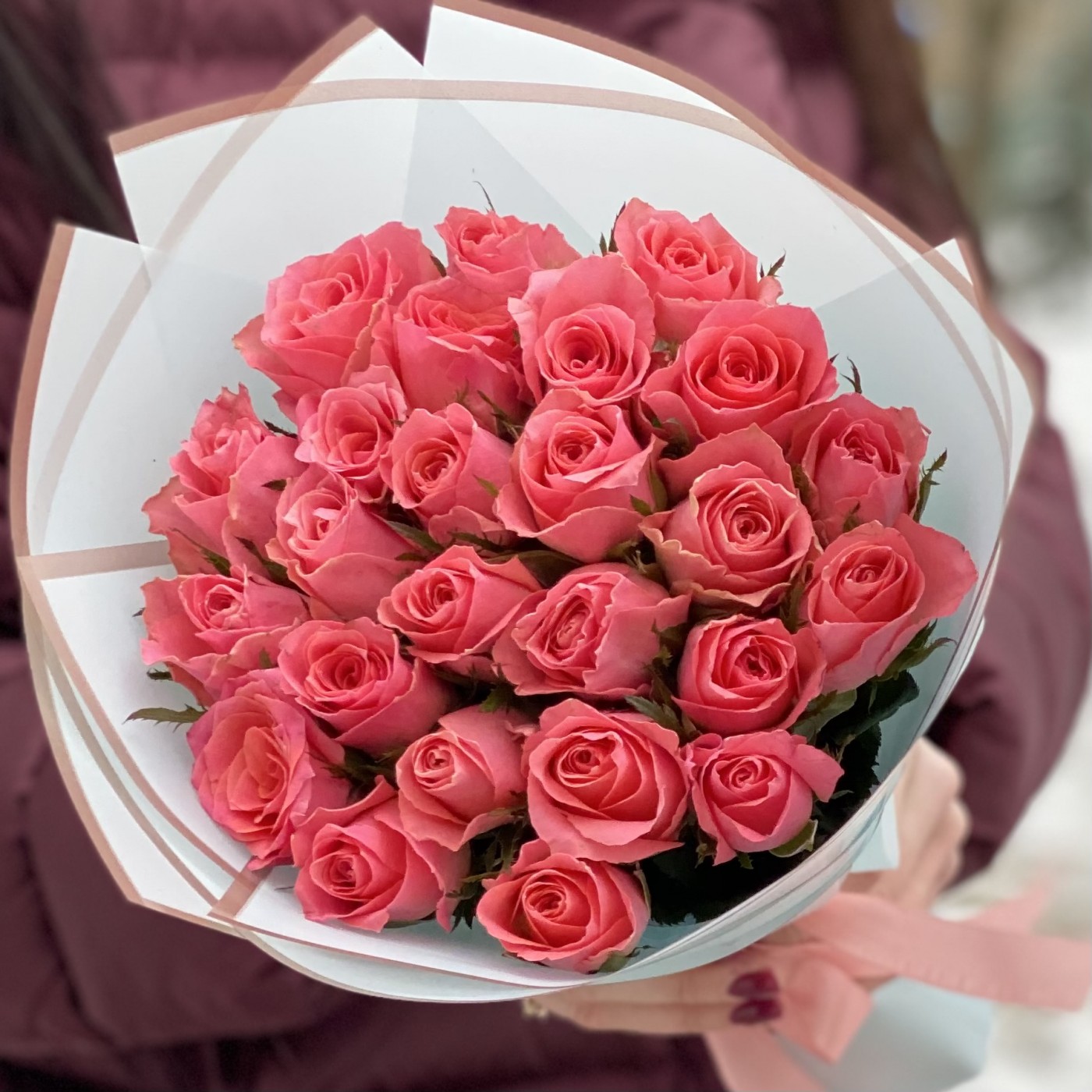 25 коралловых невероятно красивых роз сорта Эйс Пинк