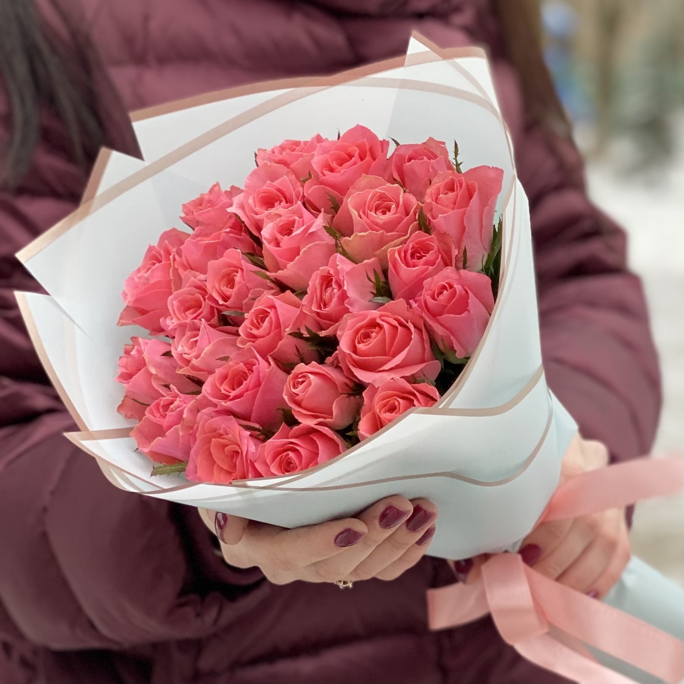 Любовь о заказе: Корпоративный букет из 7 розовых розОчень удобный сервис и простая схема заказа, которая включает итоговое утверждение по фото. Большое спасибо за положительные эмоции!