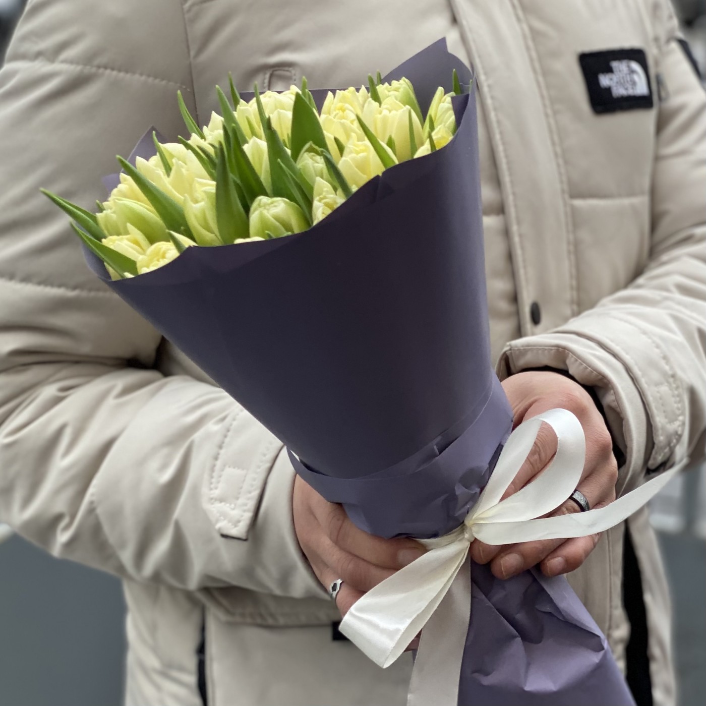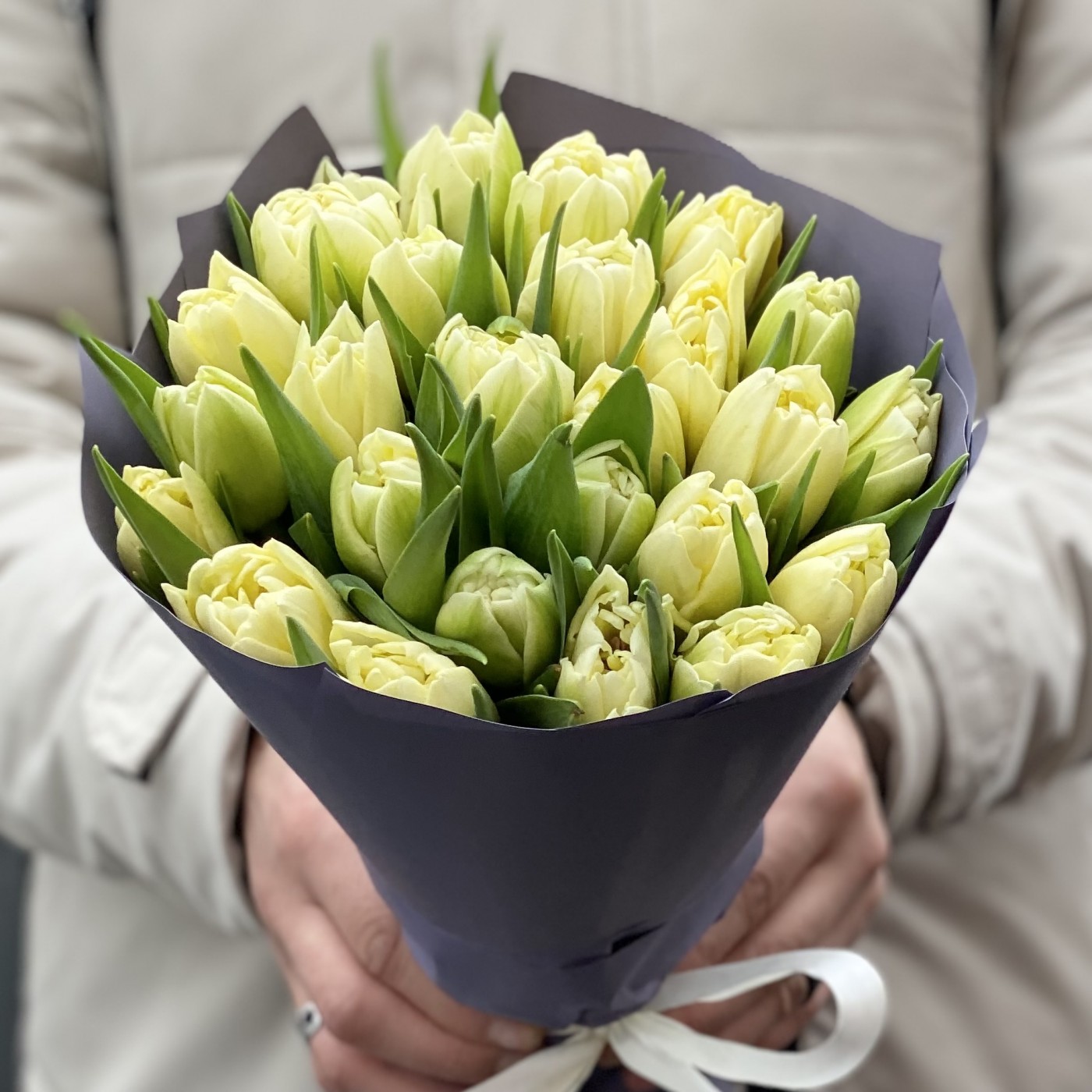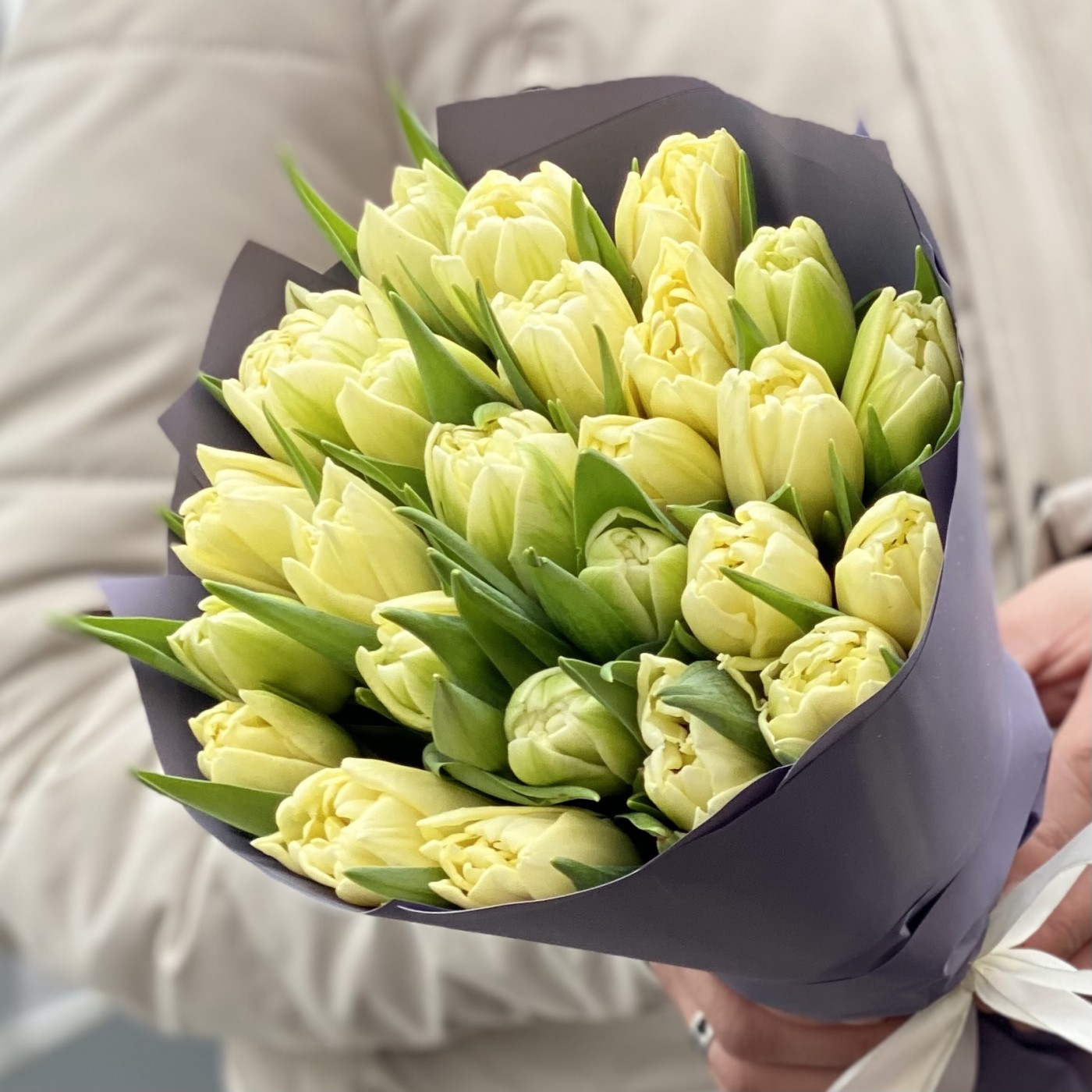 Букет из свежайших пионовидных тюльпанов Авангард кремового цвета станет приятным комплиментом девушке или женщине любого возраста. Такая цветочная композиция украсит любой праздник или торжественное событие! Плотные, многослойные бутоны нежнейших желто-кремовых тюльпанов, постепенно раскрываясь, меняют свой силуэт и цветовую насыщенность. Роскошный букет лучше тысячи слов сможет выразить самые искренние и трепетные чувства дарителя. Очаровательные весенние тюльпаны произведут впечатление и надолго запомнится девушке своим оригинальным видом.