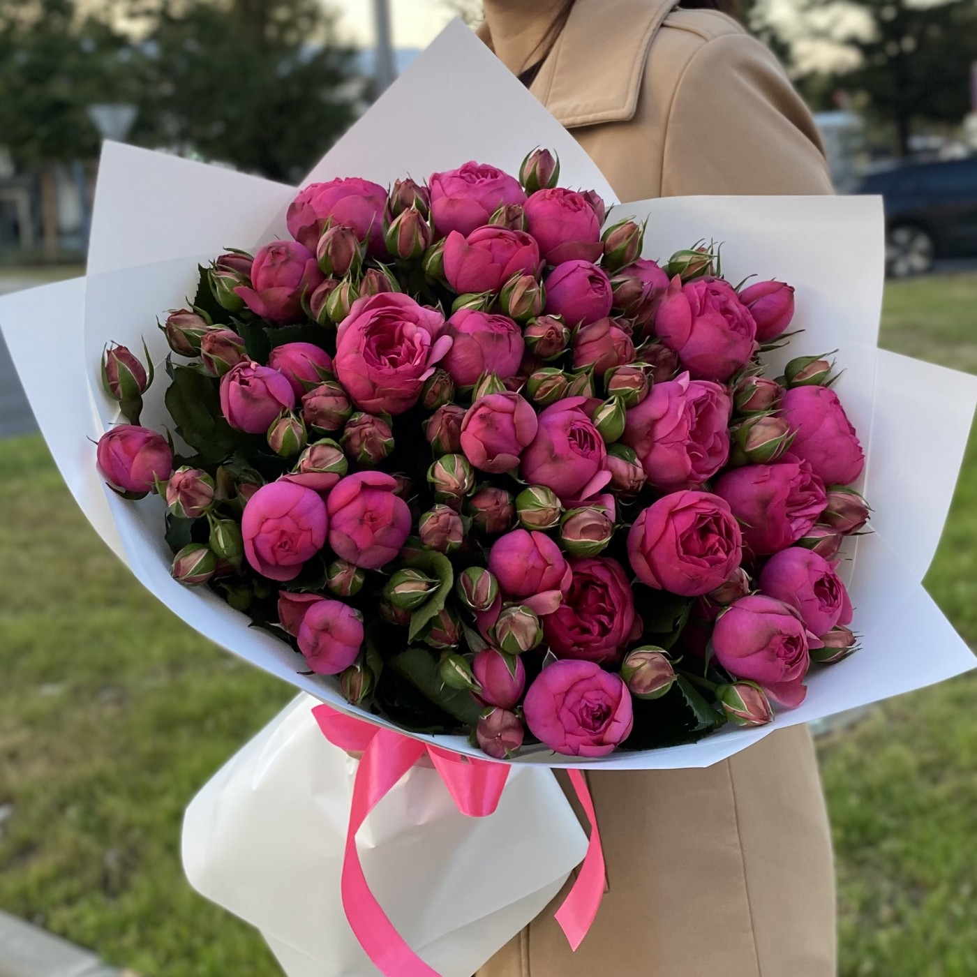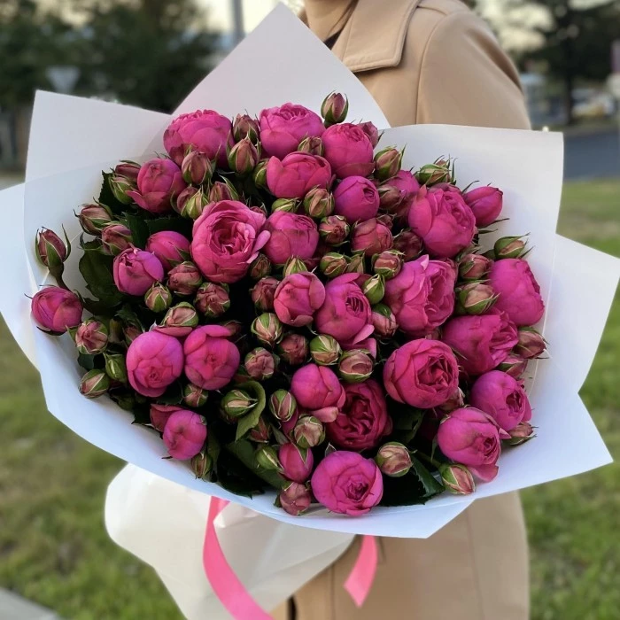 25 ярко-розовых кустовых пионовидных роз Пинк Пиано
