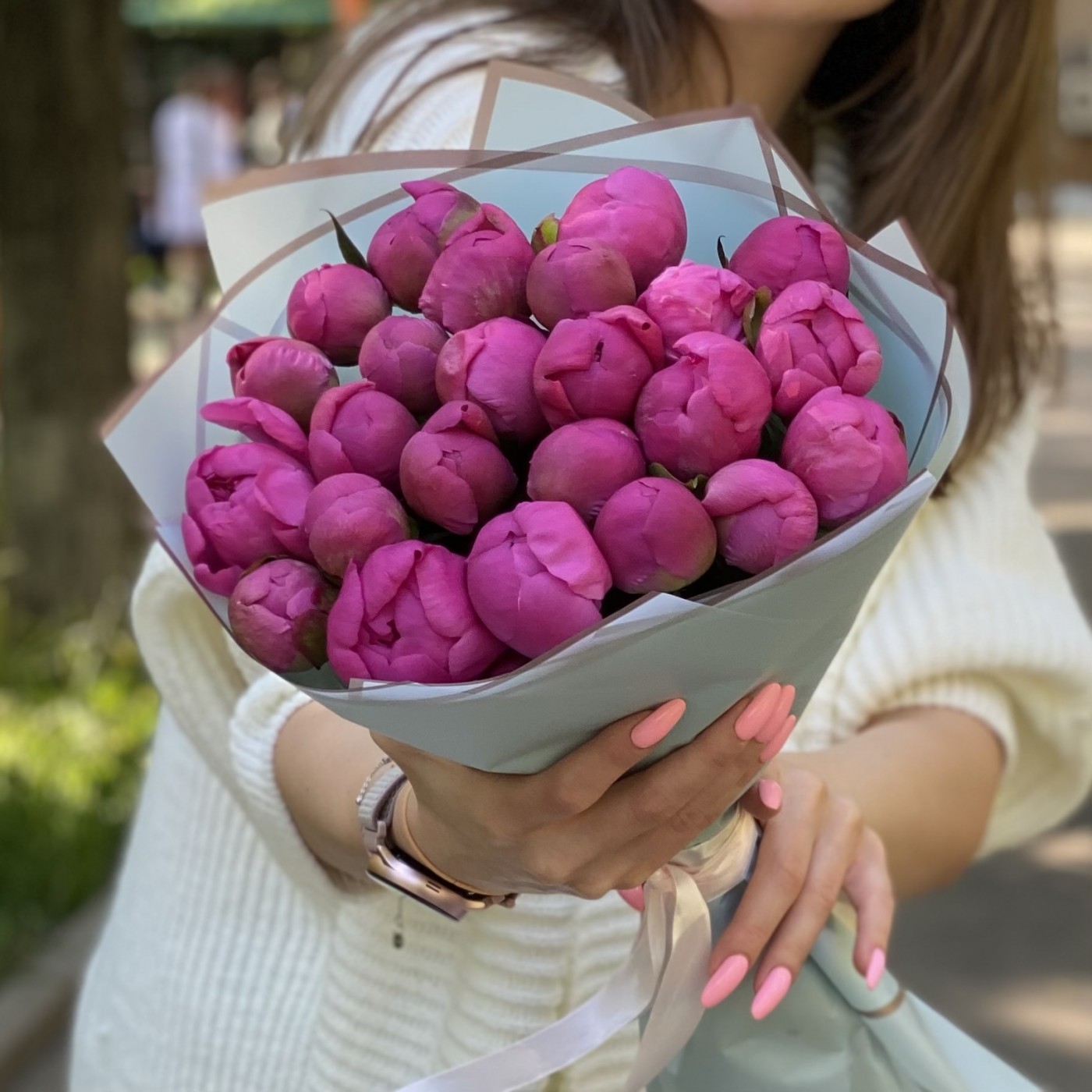 Малиновые пионы — это истинное воплощение элегантности и красоты! Сорт Флеминг отличается упругостью бутонов и непередаваемым ароматом. В представленном букете — 25 свежесрезанных пионов и ничего больше, ведь такие цветы не нуждаются в дополнении, они прекрасны и без украшений. Даже упаковка нейтральна — именно так цветы выглядят еще эффектнее.