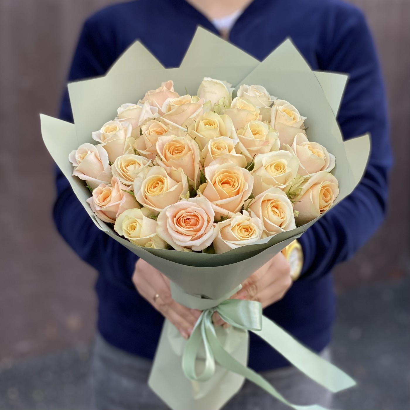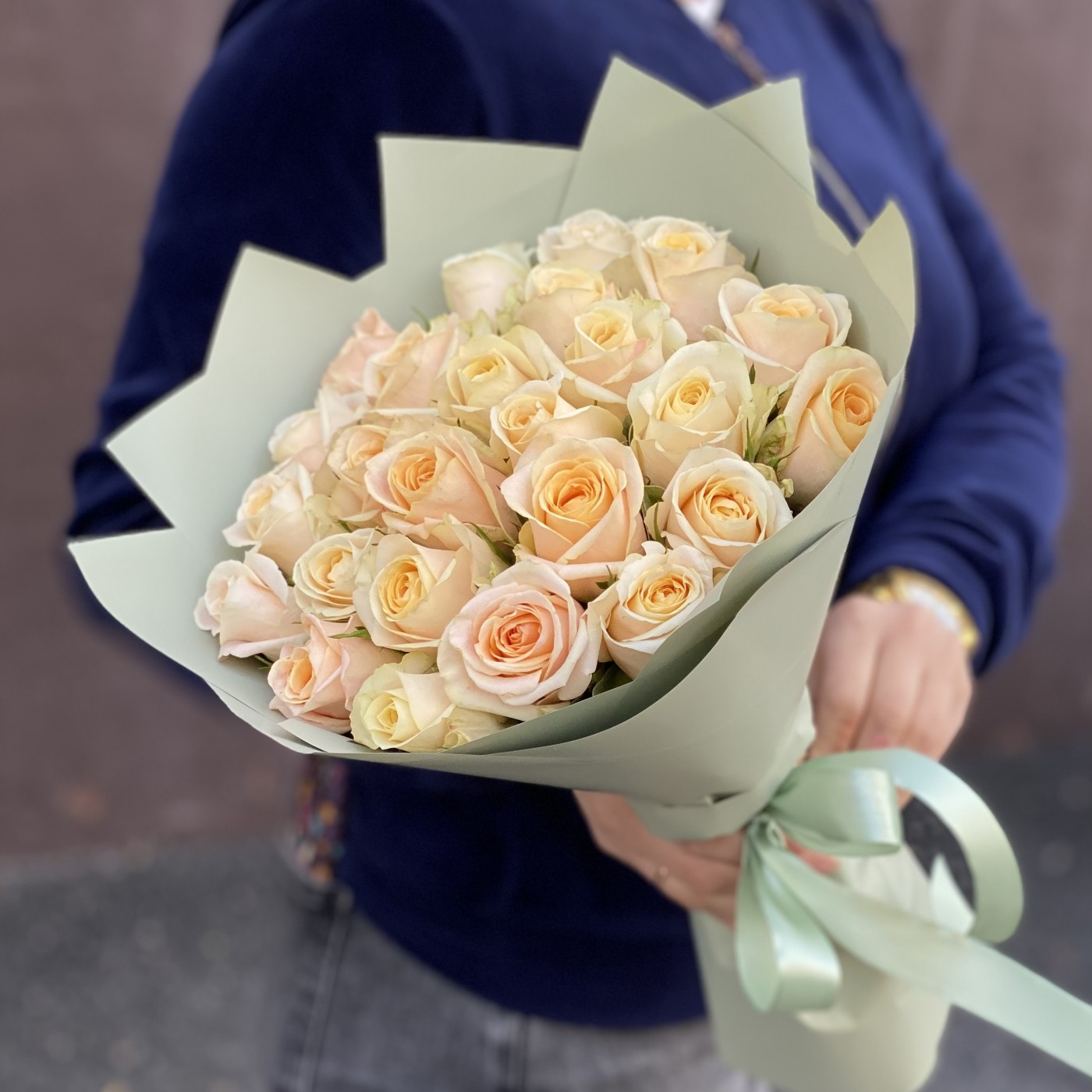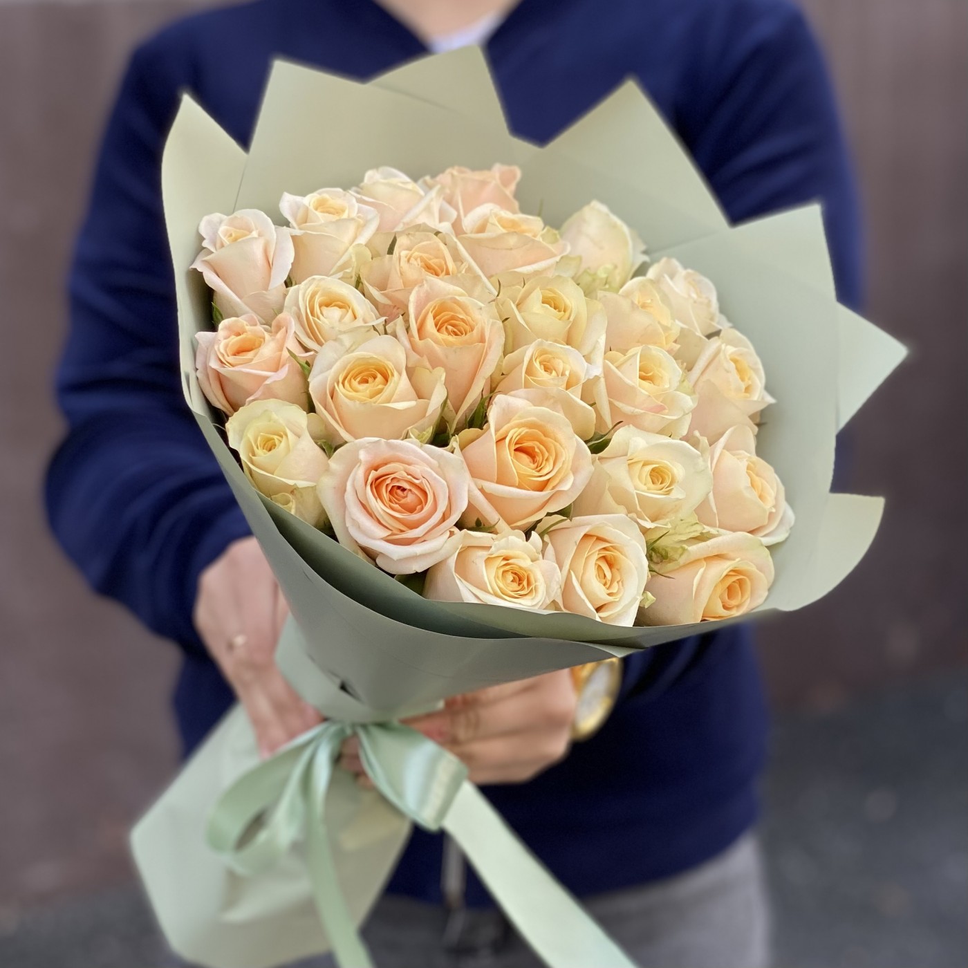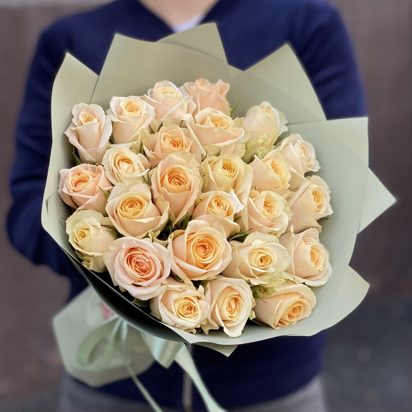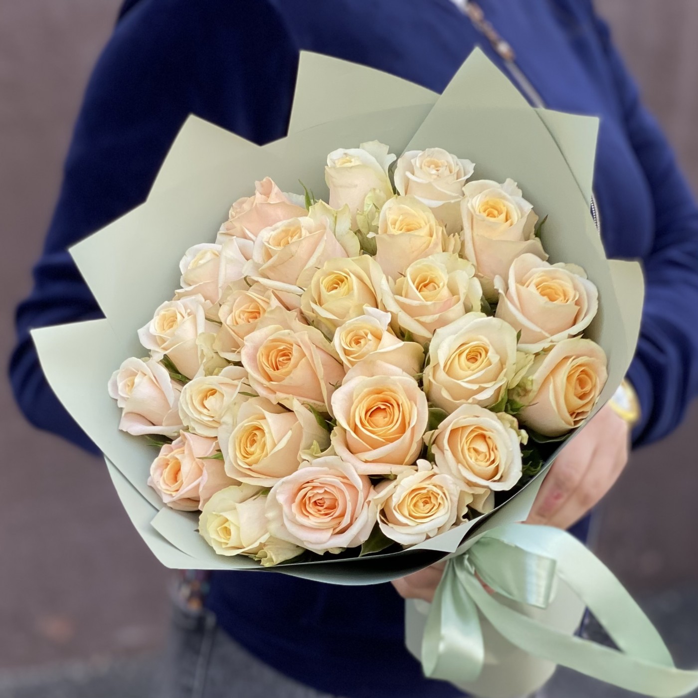 25 персиковых роз Кашмир