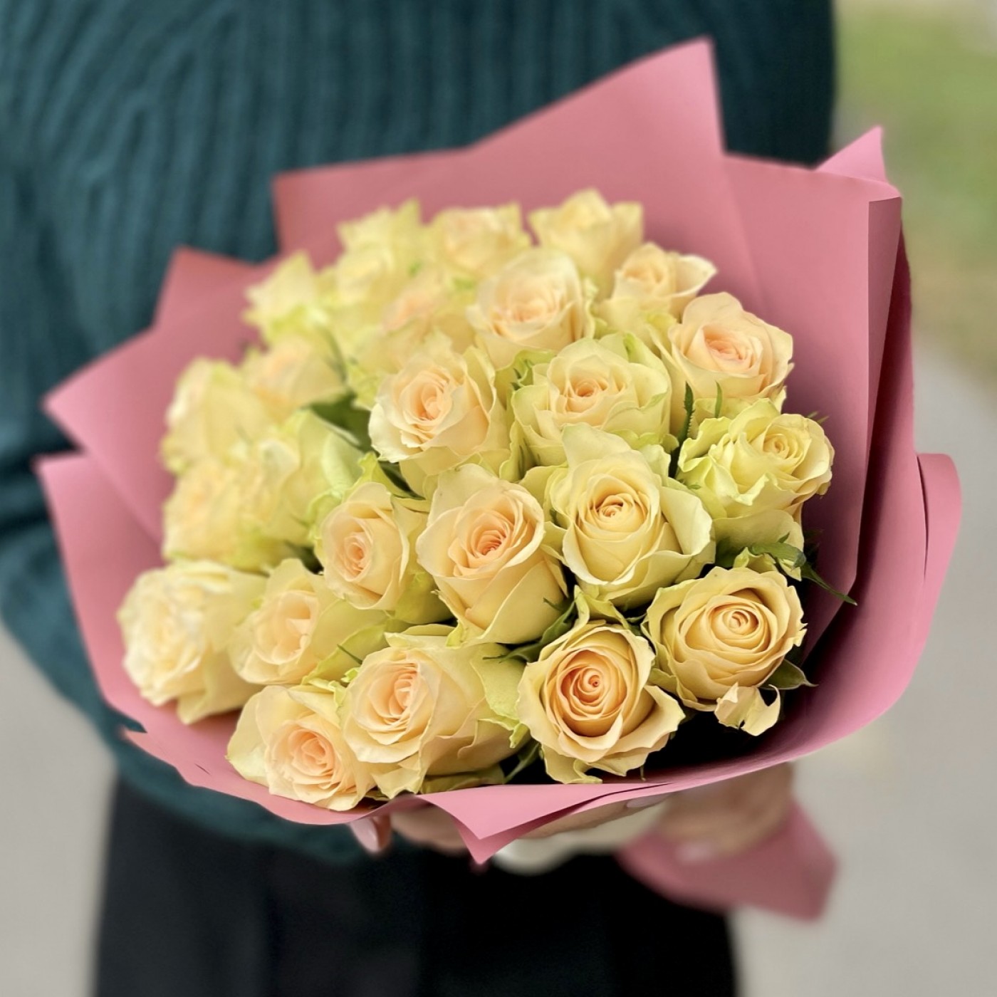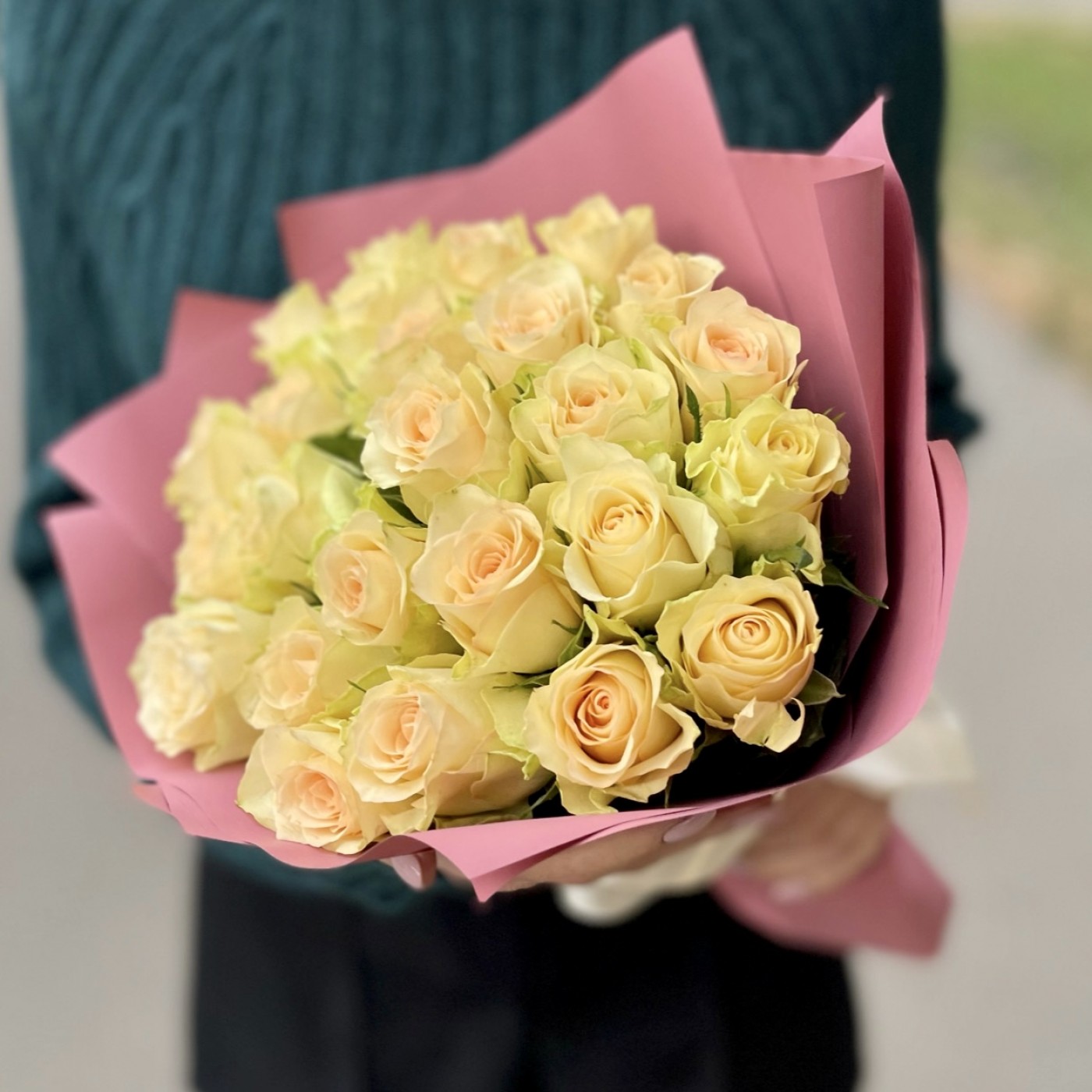 Нежнейший букет из 25 Салатовых роз Киви в стильной упаковке принесут истинную красоту в ваш дом! Свежесть розово-салатовых бутонов создает неповторимую ауру счастья и утонченности. Каждой девушке будет приятно получить в подарок этот роскошный букет роз. Преподнесите его своей возлюбленной, доставьте ей радость и расскажите о своих нежных чувствах. Такое подношение оценят на семейном торжестве и школьном празднике! 25 салатовых роз Киви - это идеальный комплимент и универсальный подарок.