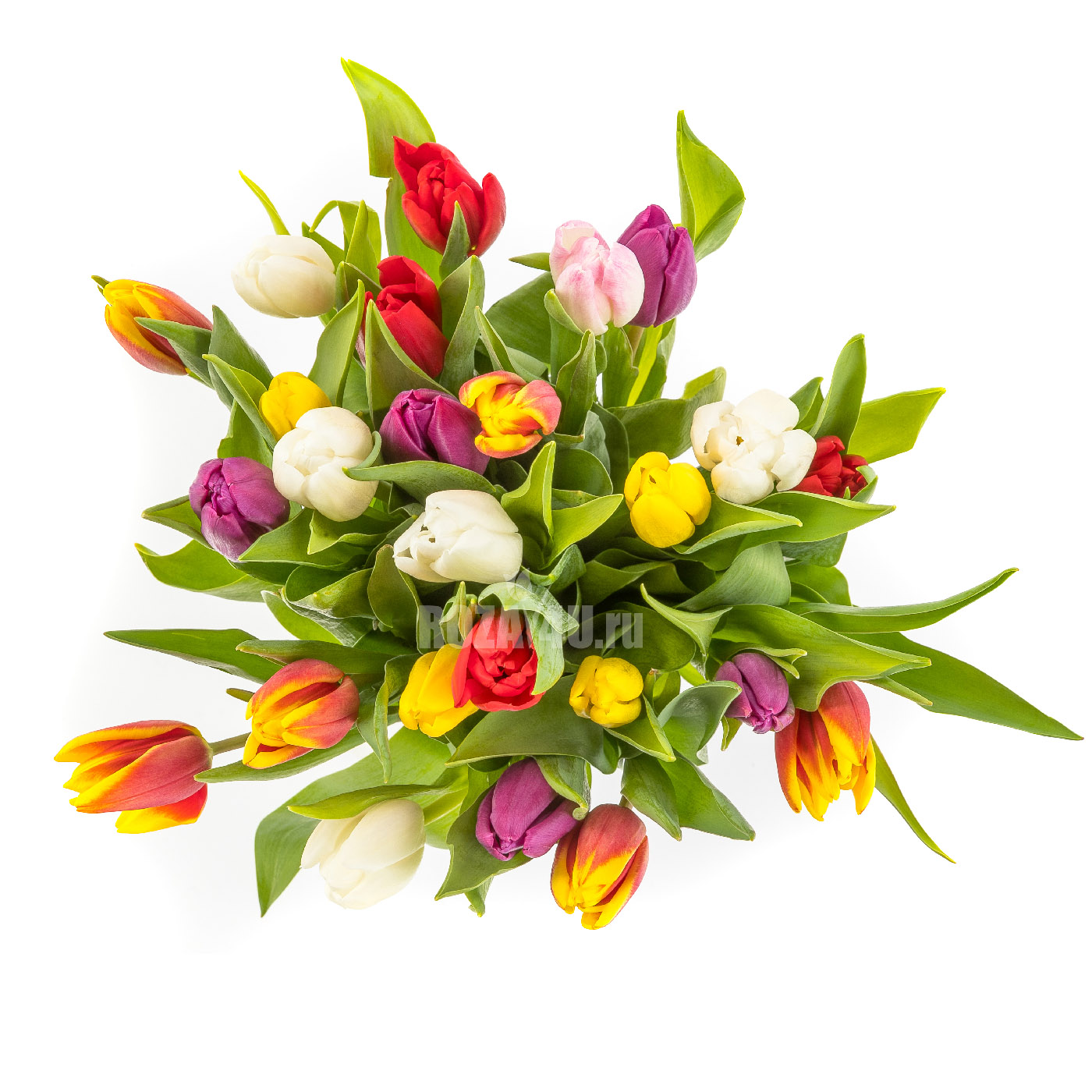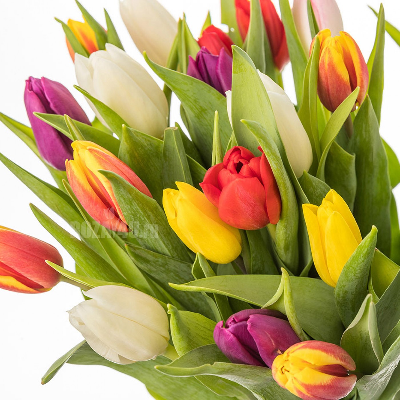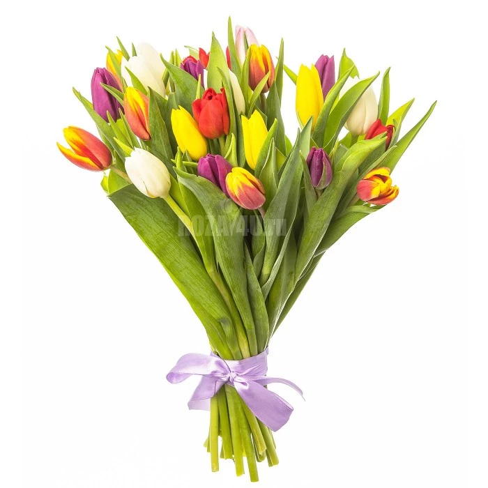 Классическая весенняя композиция из 25 тюльпанов. Букет свежих ароматных цветов-отличный подарок к 8 марта для прекрасных женщин.