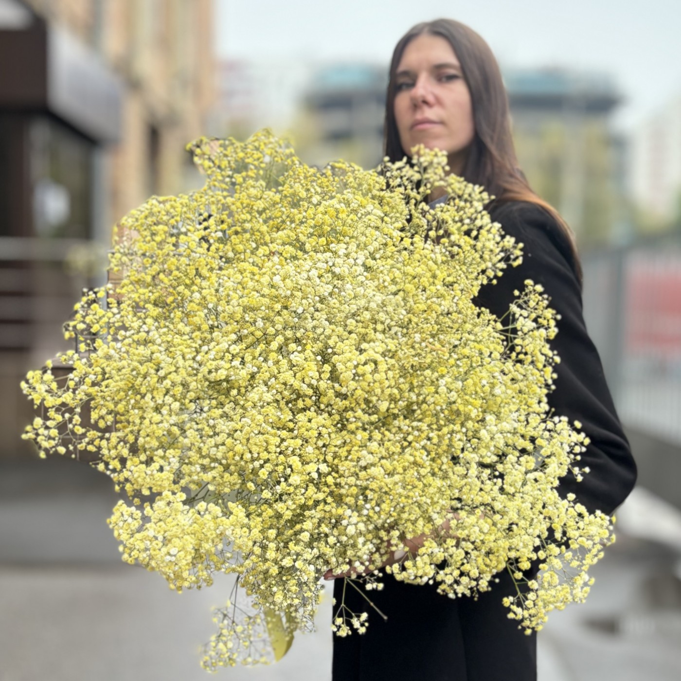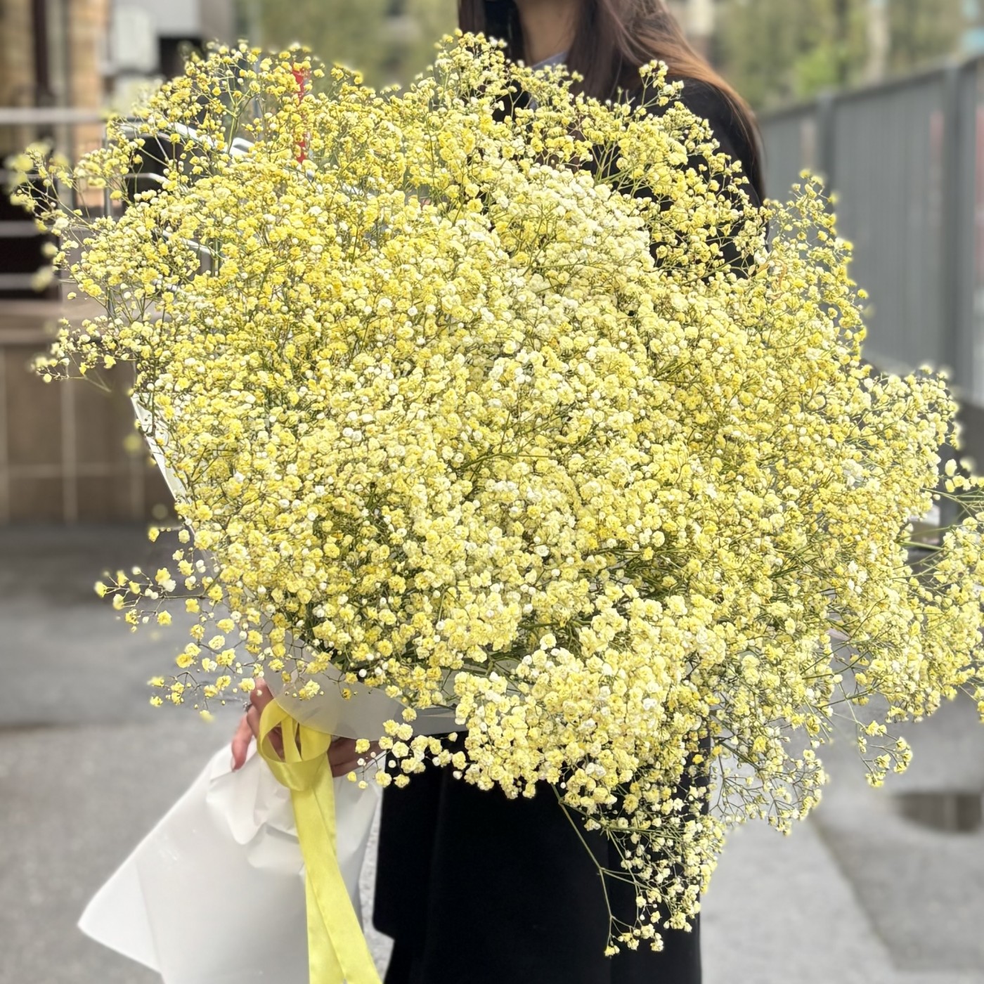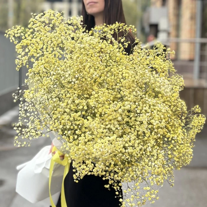 Букет из 25 желтых гипсофил выглядит очень нежно и романтично.