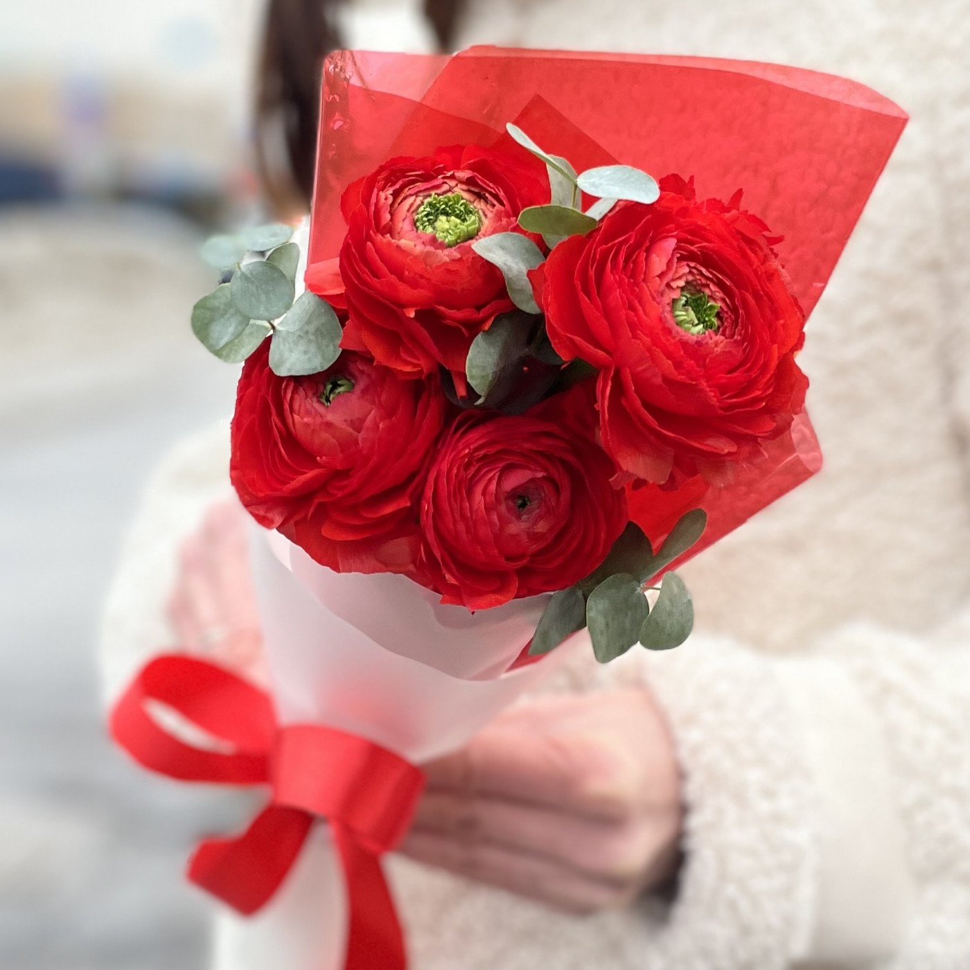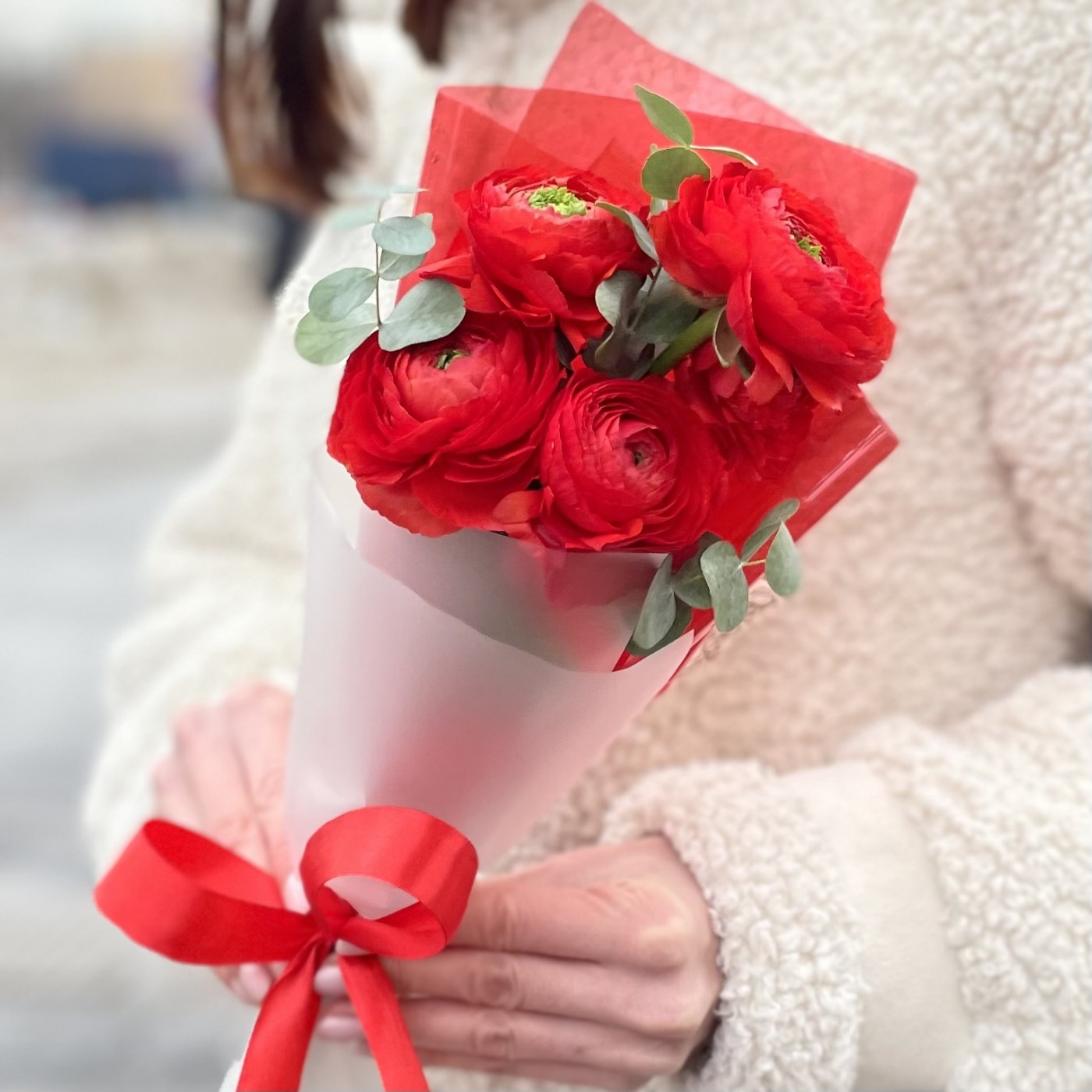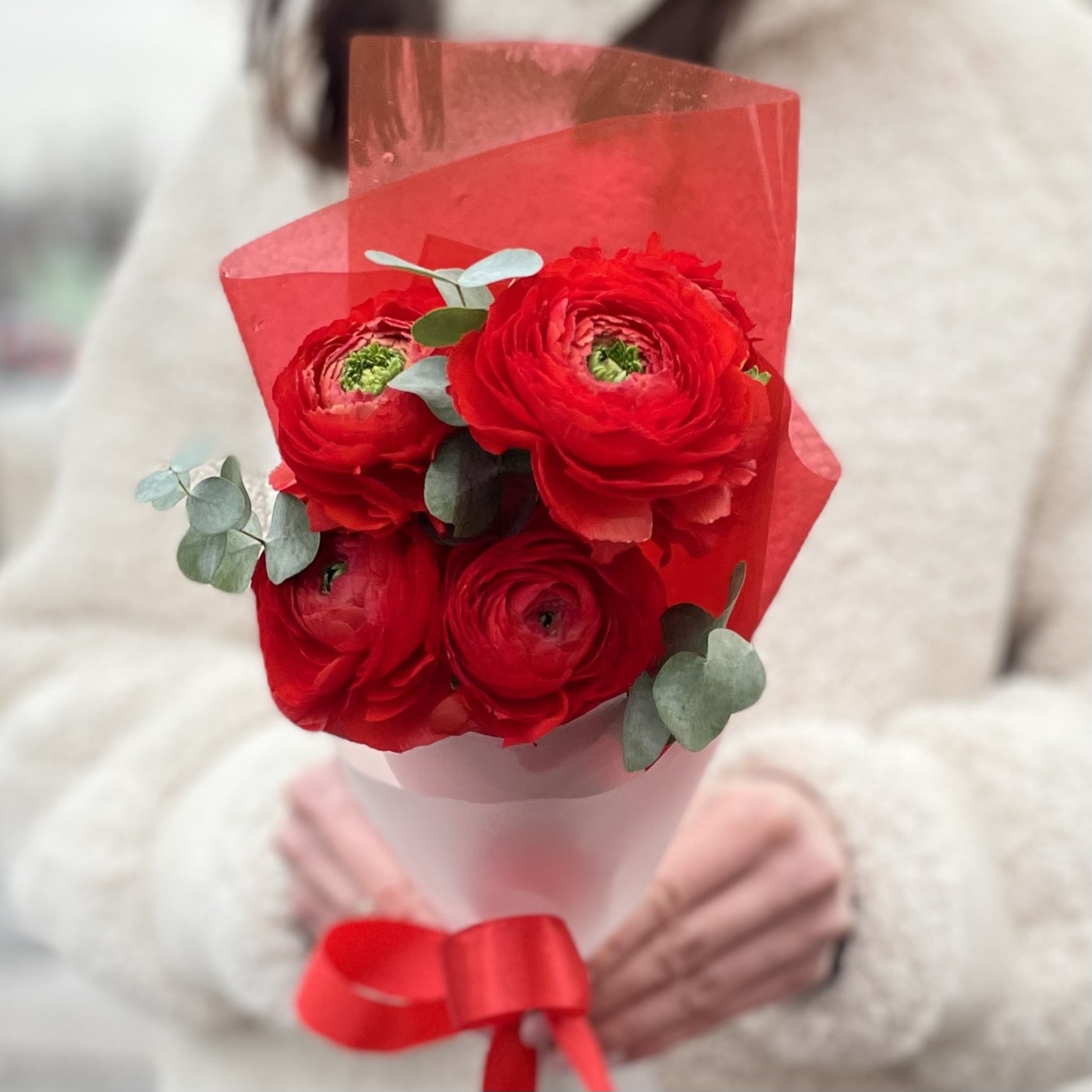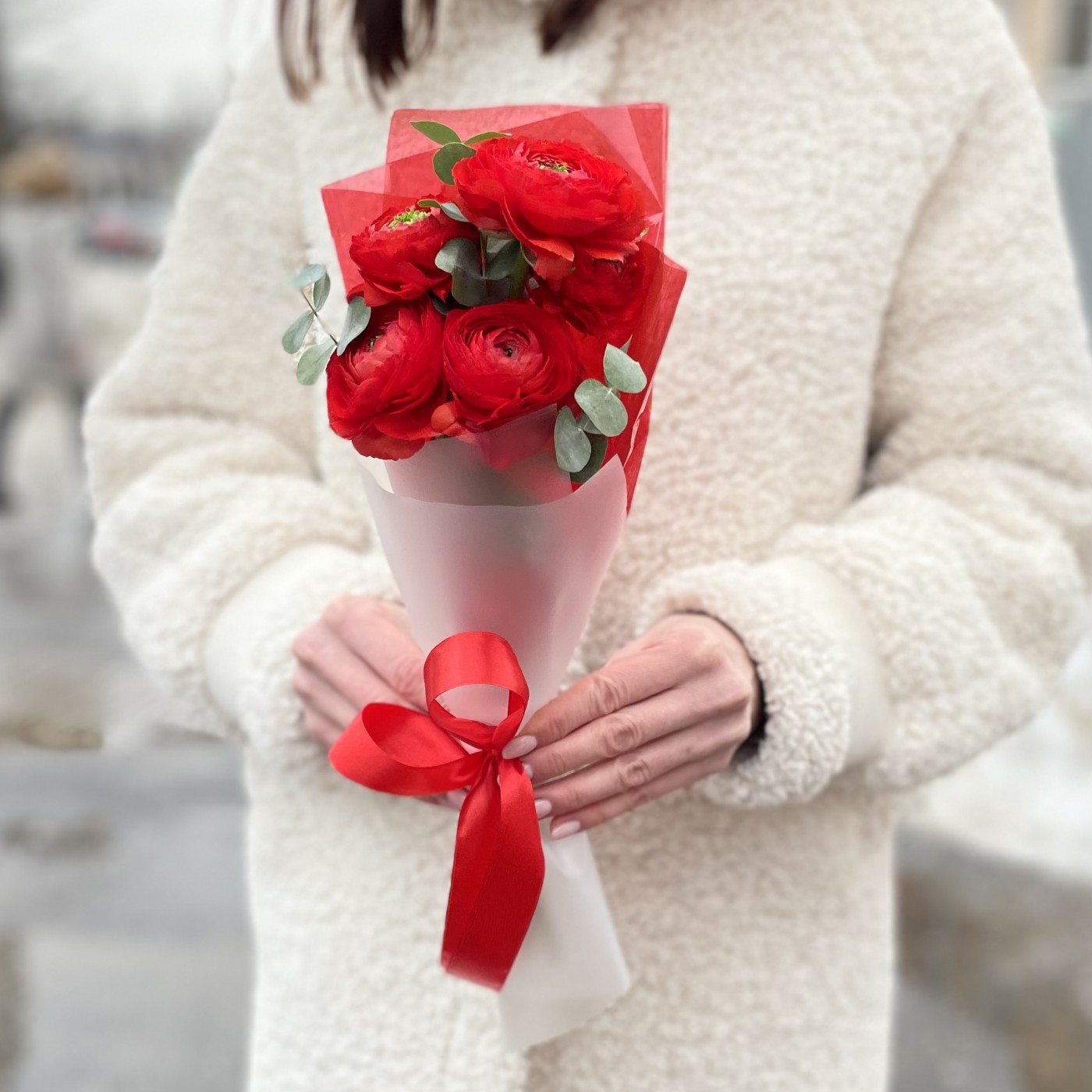 Яркий и романтичный букет с ранункулюсами, такой букет актуален для романтического свидания и как комплимент для дорогого человека.
