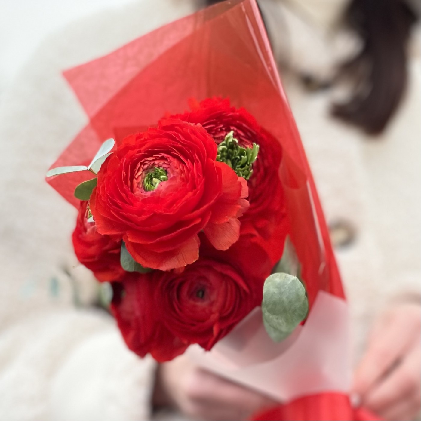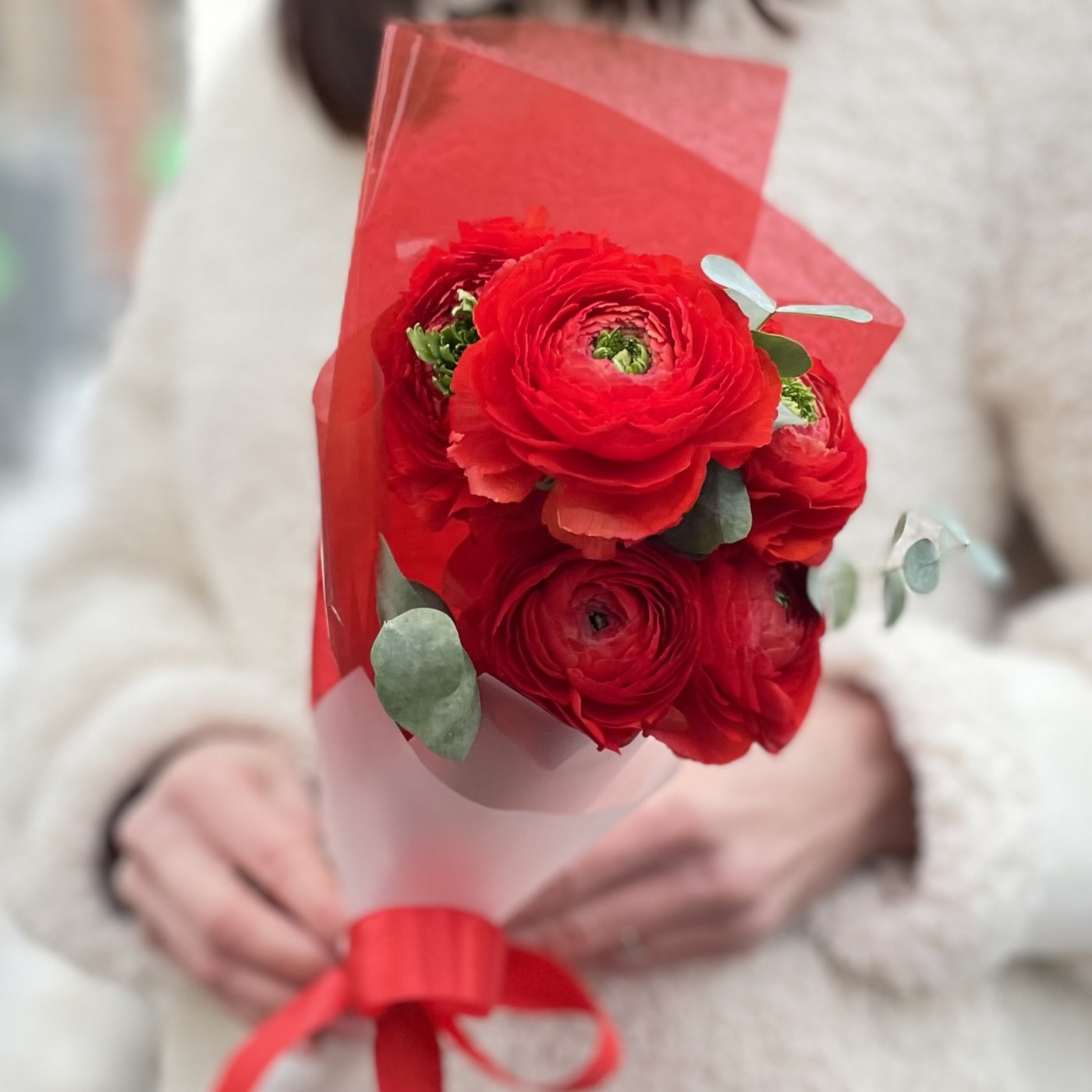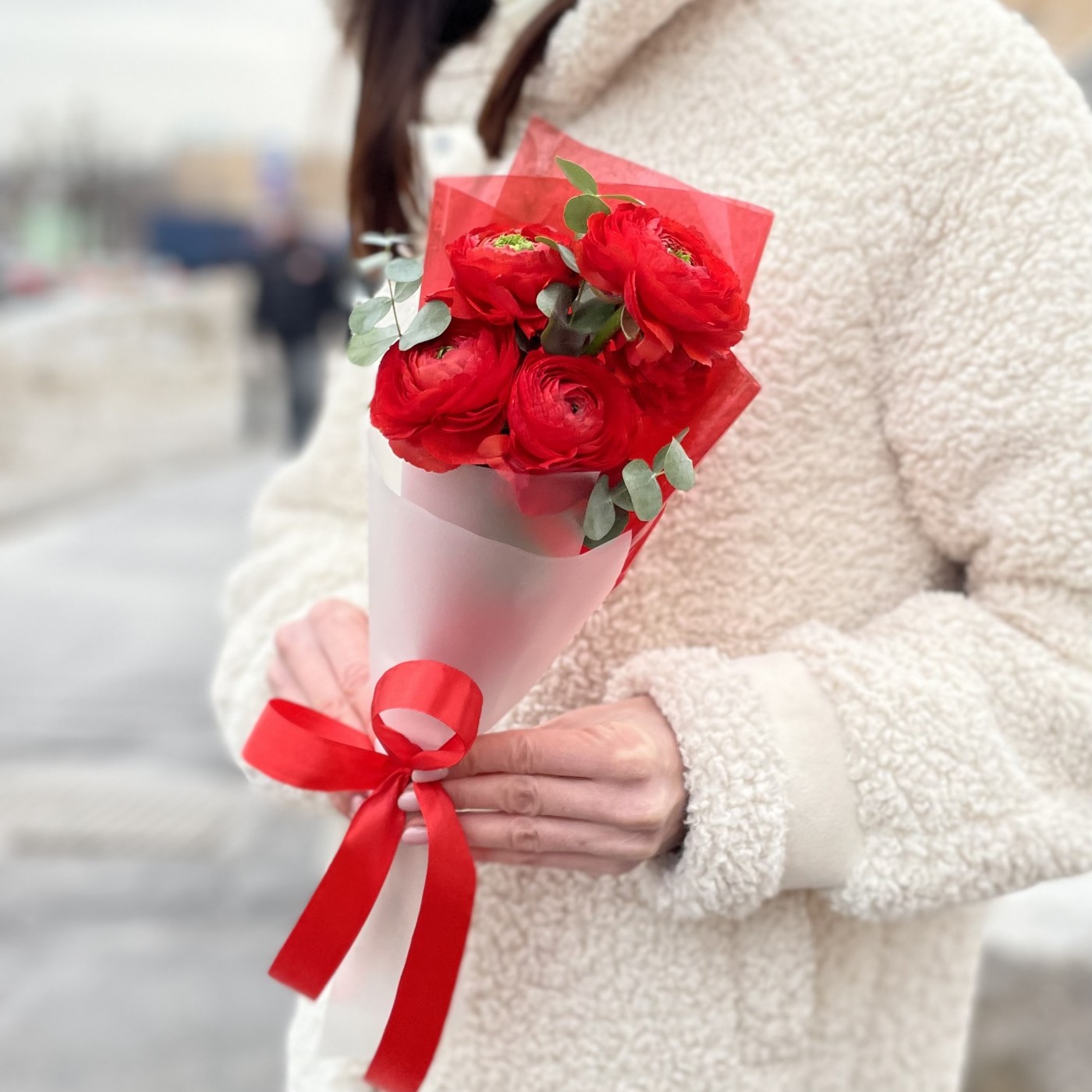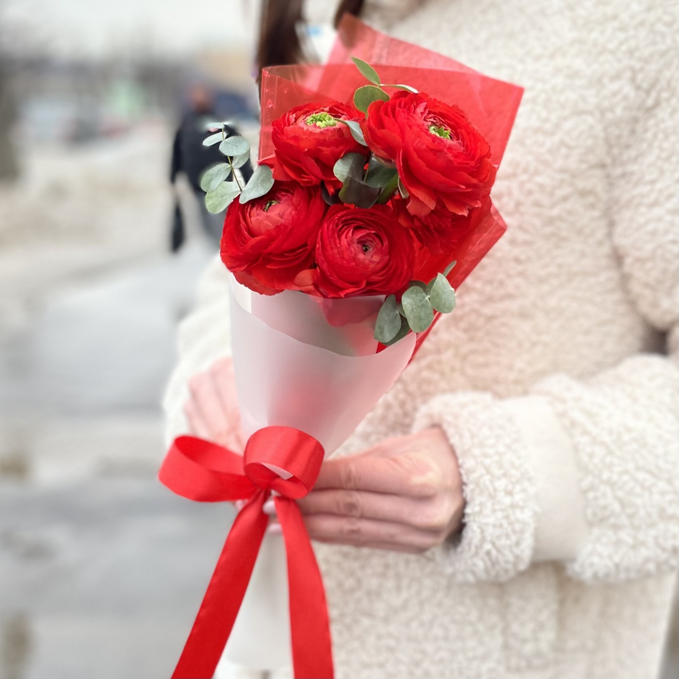 Яркий и романтичный букет с ранункулюсами, такой букет актуален для романтического свидания и как комплимент для дорогого человека.