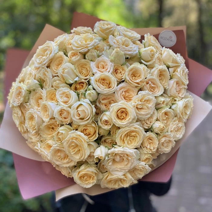 Букет из 51 кремовой кустовой розы, станет прекрасным подарком на любой повод.