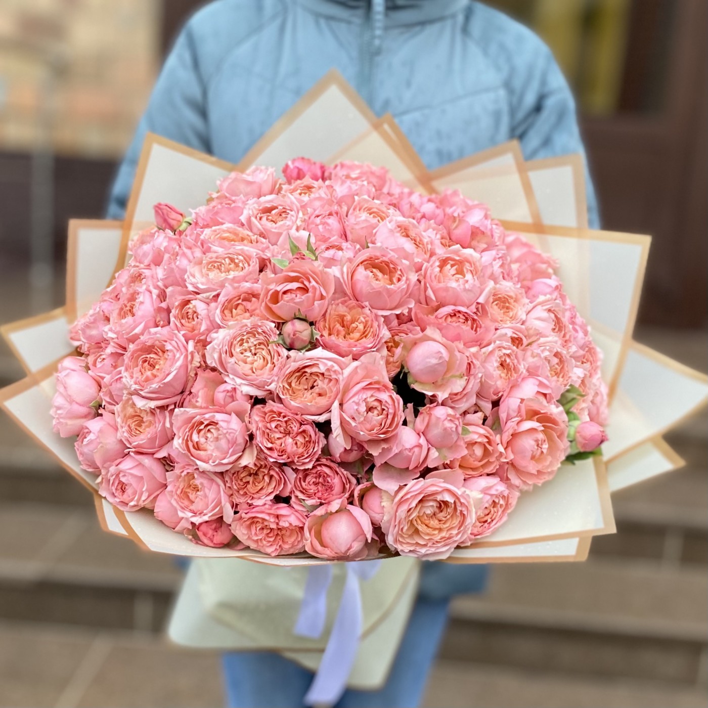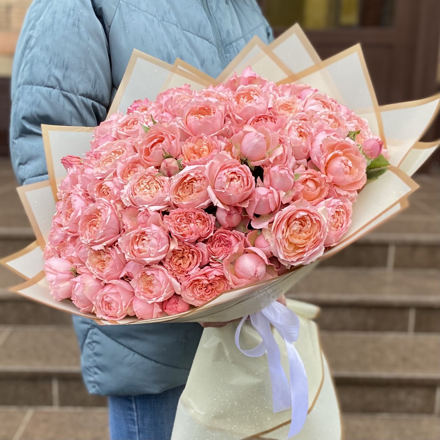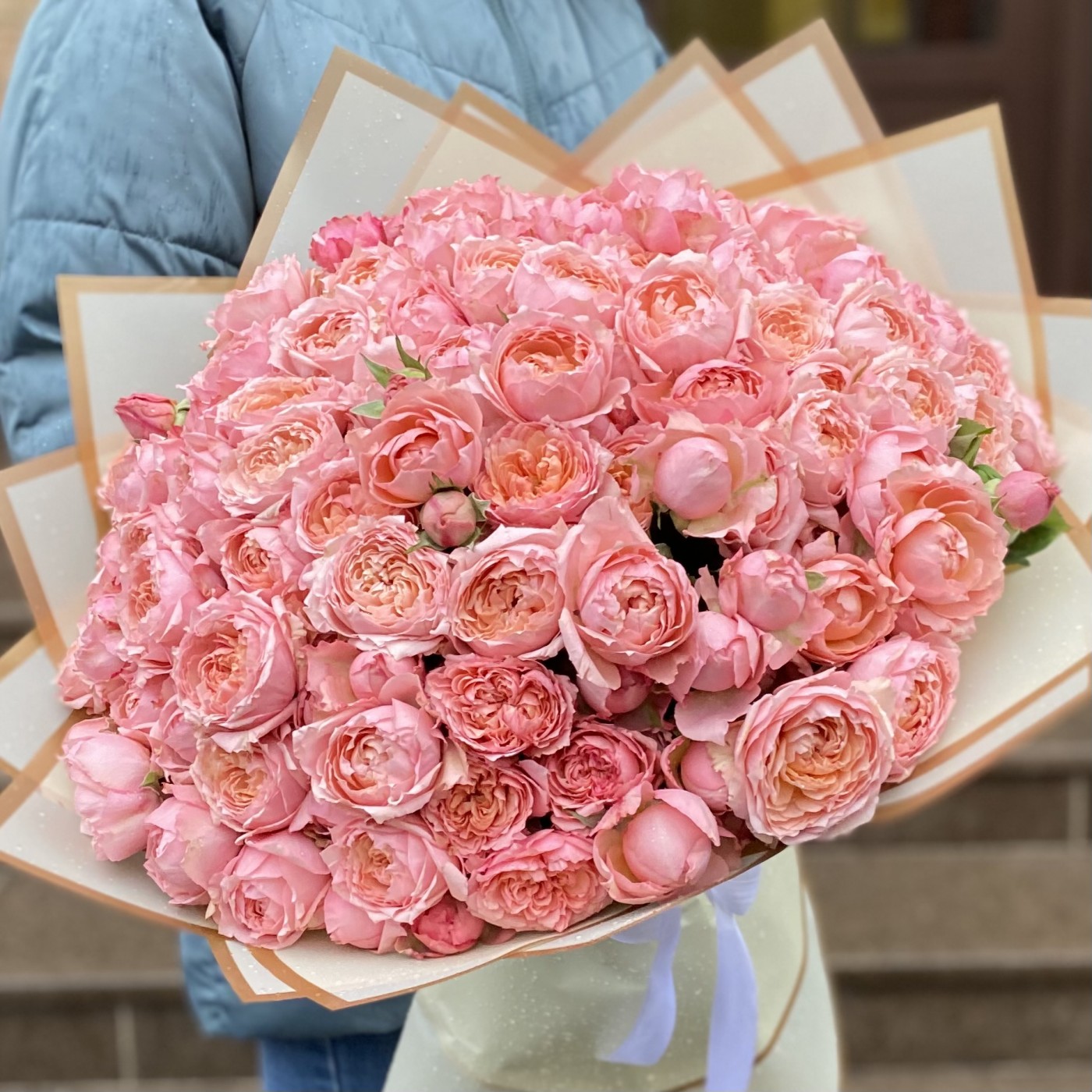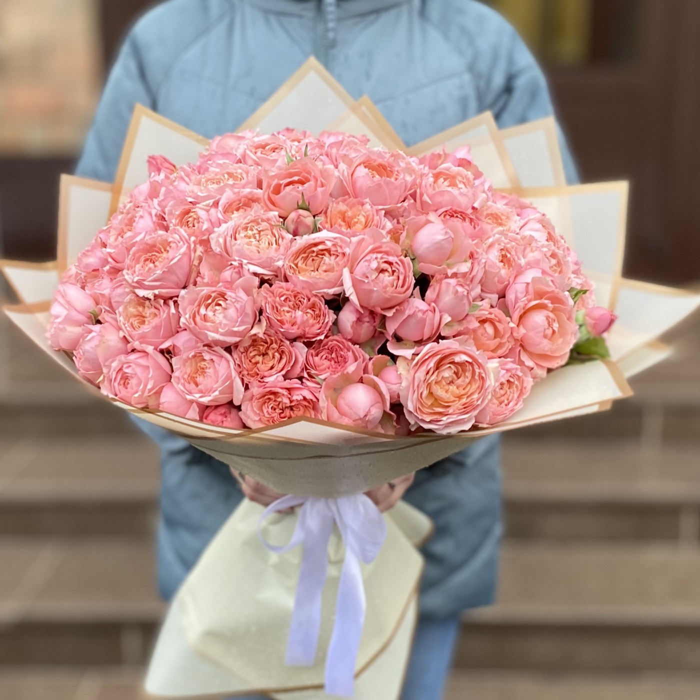 Роскошный букет из 51 пионовидной персиково-розовой кустовой розы Джульетта порадует свою получательницу и подарит незабываемые впечатления.