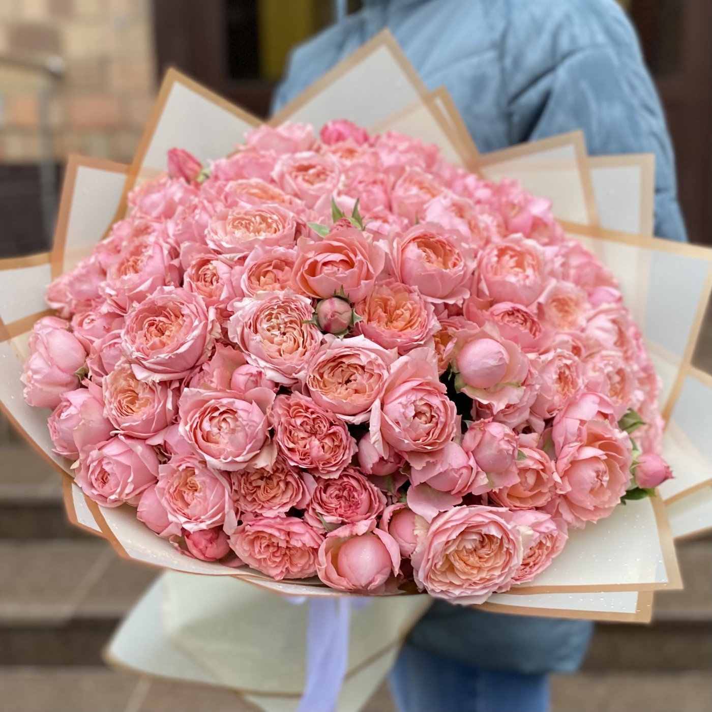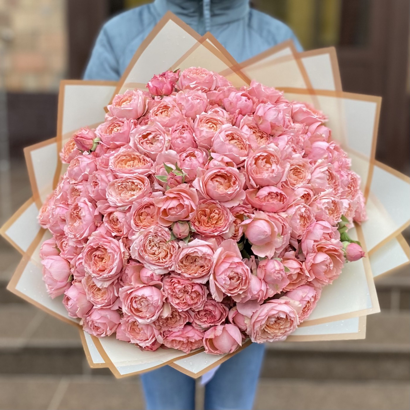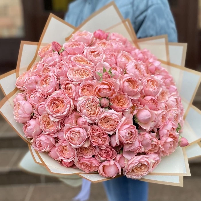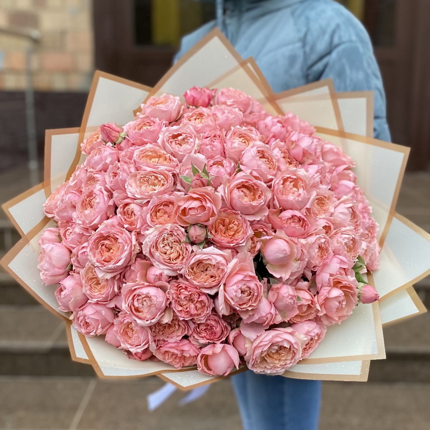 Роскошный букет из 51 пионовидной персиково-розовой кустовой розы Джульетта порадует свою получательницу и подарит незабываемые впечатления.