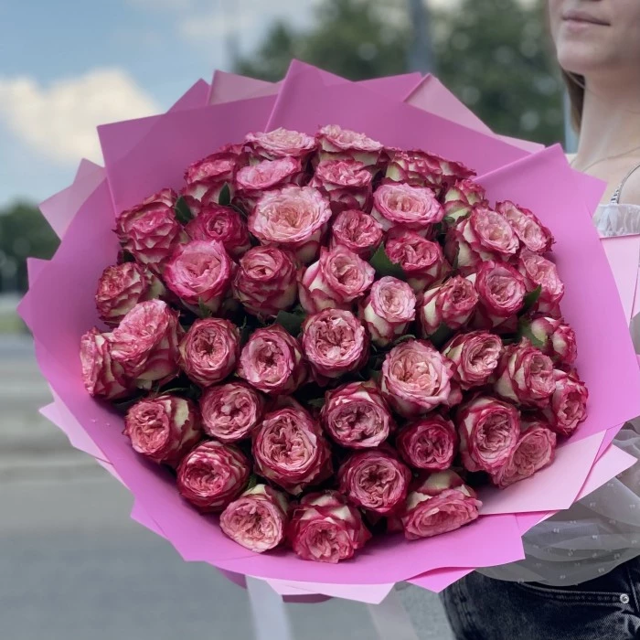 Букет из малиновых пионовидных роз Глендора полон любви и романтики. Он рассказывает о самых высоких и нежных чувствах - таких же прекрасных как яркие бутоны едва распустившихся роз. Как приятно получить такой роскошный букет в подарок! Ведь это признание в любви и обещание счастья, он сделает счастливой вашу возлюбленную, вне зависимости от того 17 ей лет или 71. Цветы превращают чувства в зримые образы, воплотите свои лучшие эмоции в великолепном букете из 51 пионовидной розы Глендора.