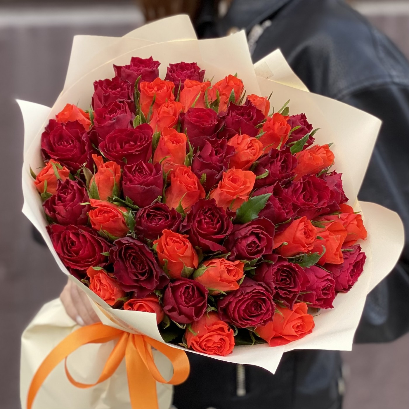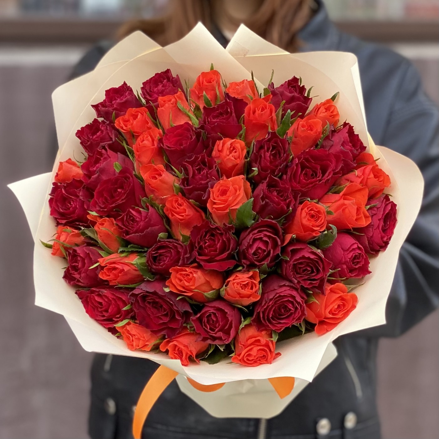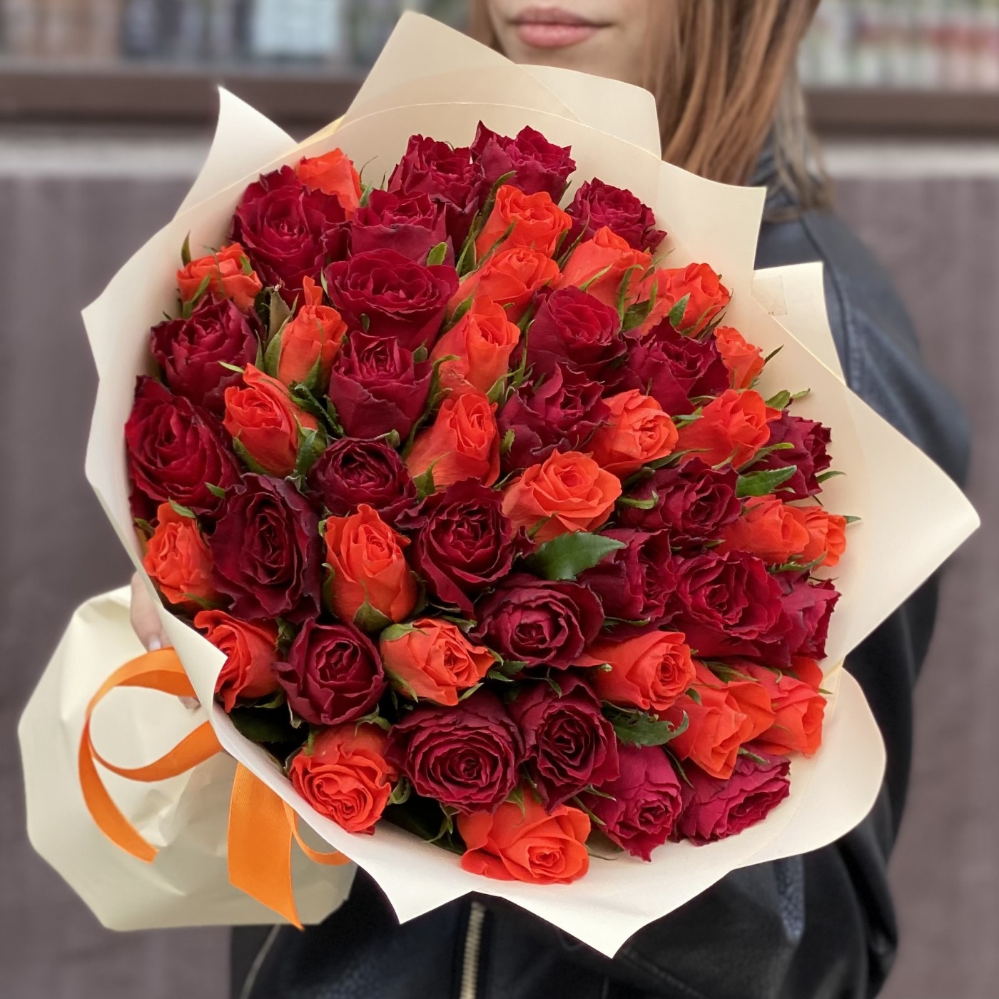 Яркое сочетание оранжевых и красных роз - это Ваша абсолютная уверенность, что Вы не прогадали с выбором букета. Свежие ароматные розы выглядят очень презентабельно, подходят для подарка дамам любого возраста и статуса. Это будет прекрасный подарок для любимой, для мамы и для других членов семьи. Букет из оранжевых и красных роз отлично впишется в офисную атмосферу и станет приятным сюрпризом для коллеги или руководителя.
