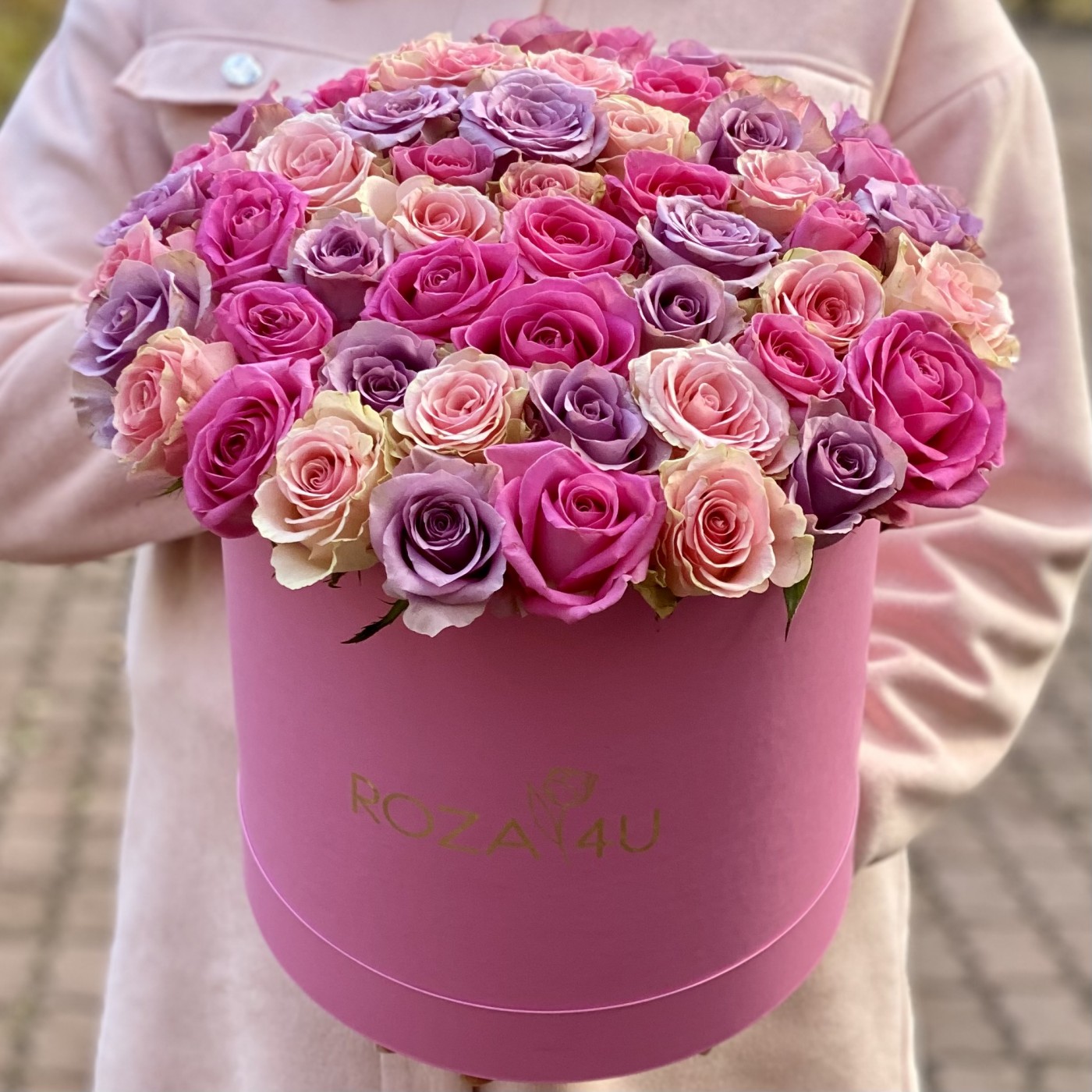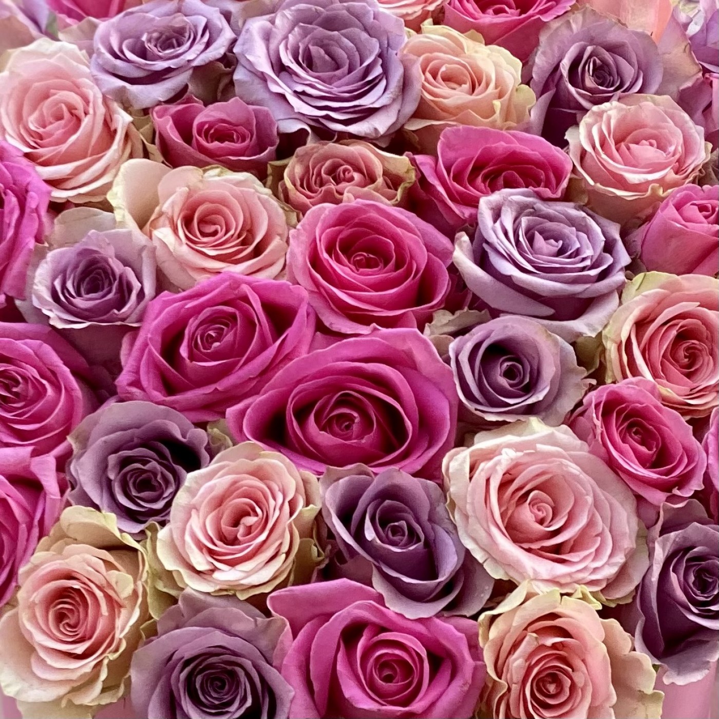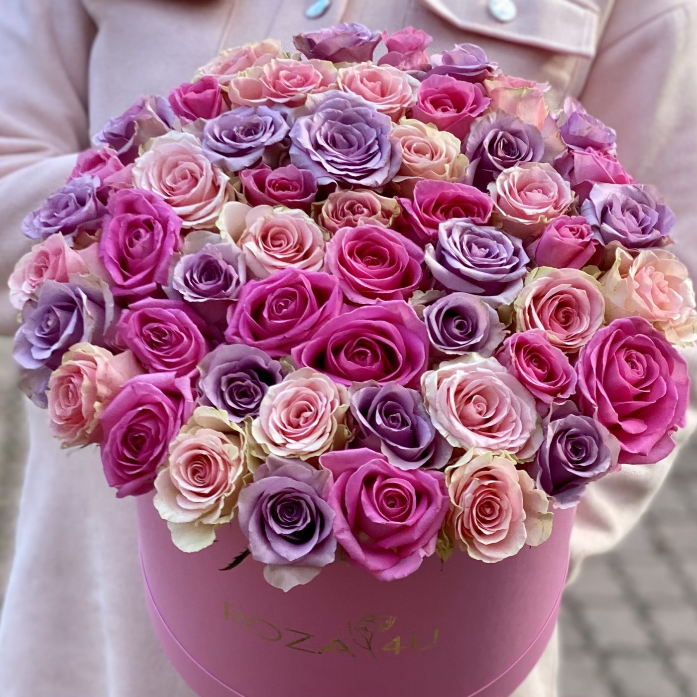 Прекрасные и нежные розы от нежно-розового до сиреневого оттенка выглядят эффектно и чувственно, они идеальны для подарка любой девушке.