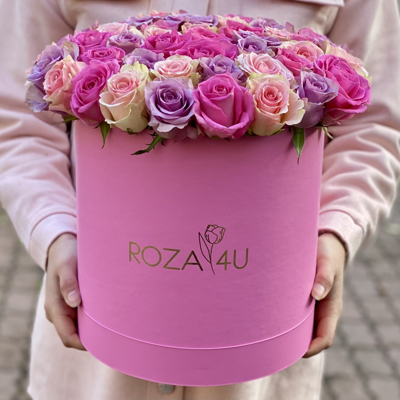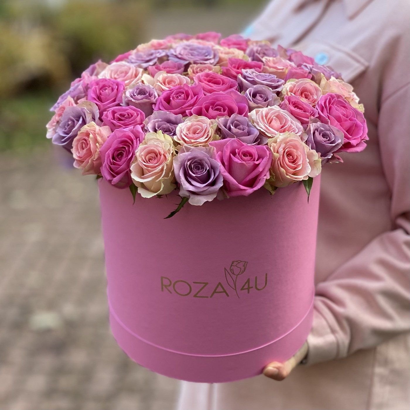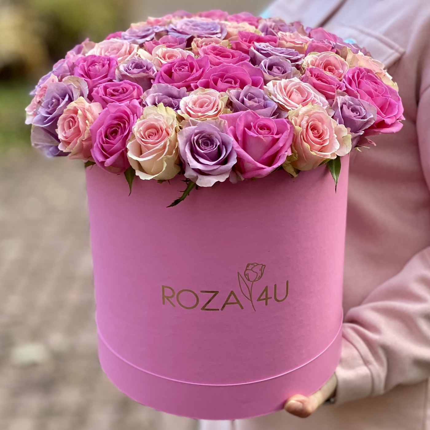 Прекрасные и нежные розы от нежно-розового до сиреневого оттенка выглядят эффектно и чувственно, они идеальны для подарка любой девушке.
