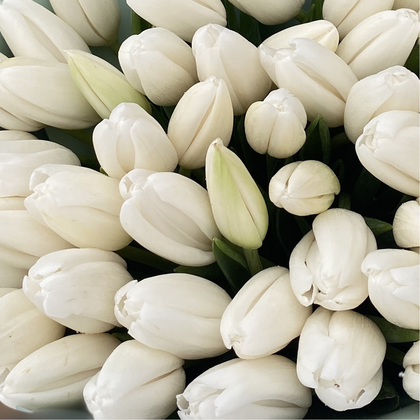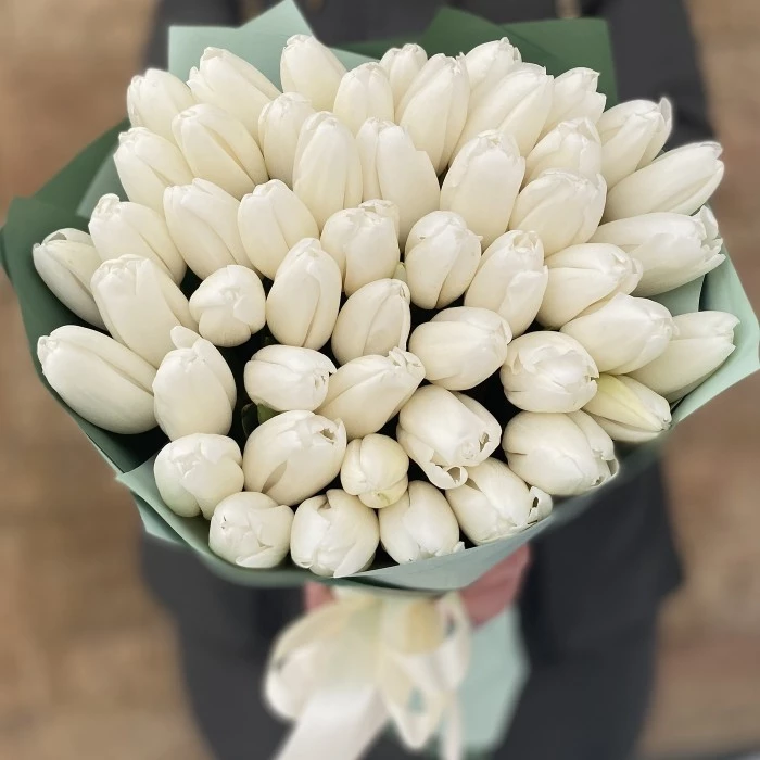 Роскошный весенний букет из 51 белого тюльпана. Охапка свежих ароматных цветов, идеальный подарок к 8 марта, дню рождения или просто приятный знак внимания.