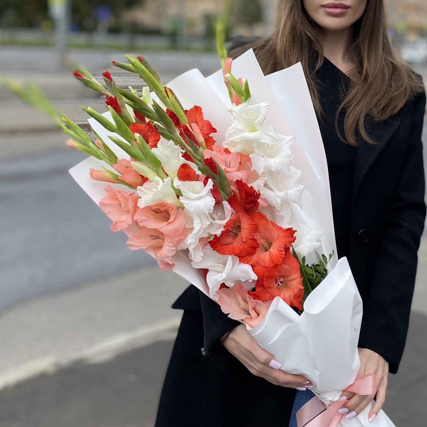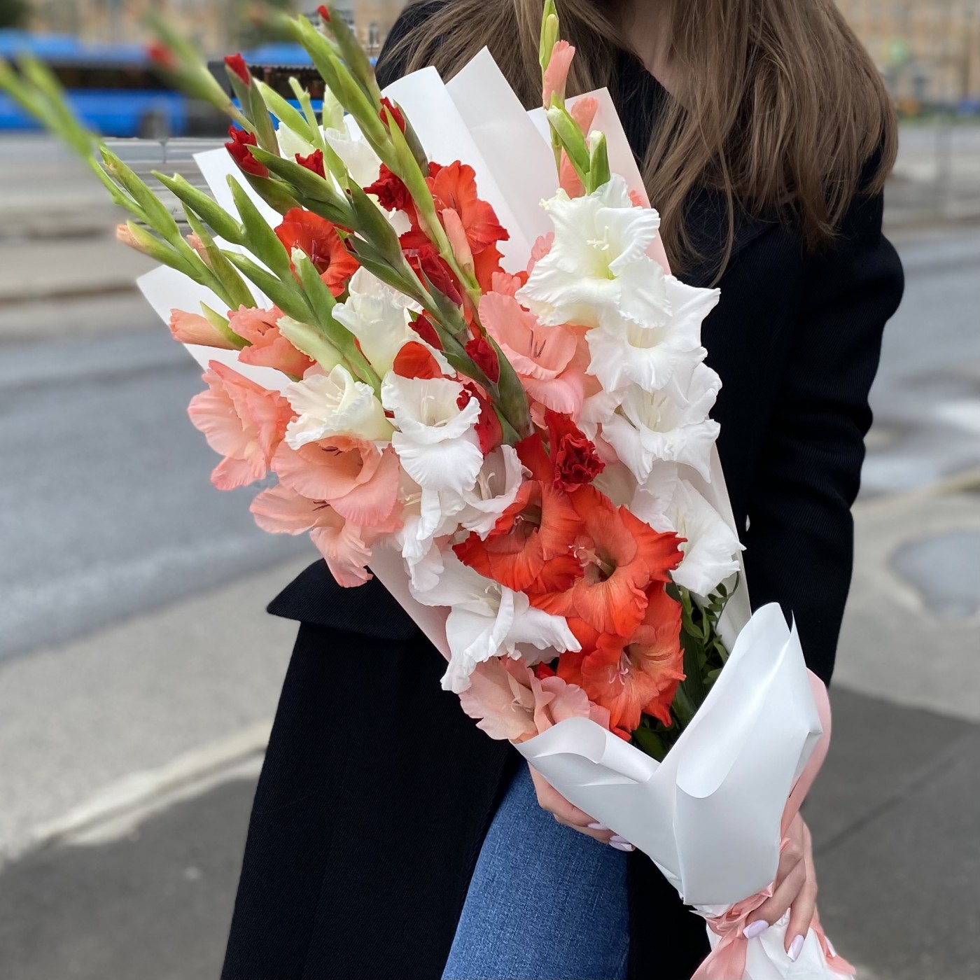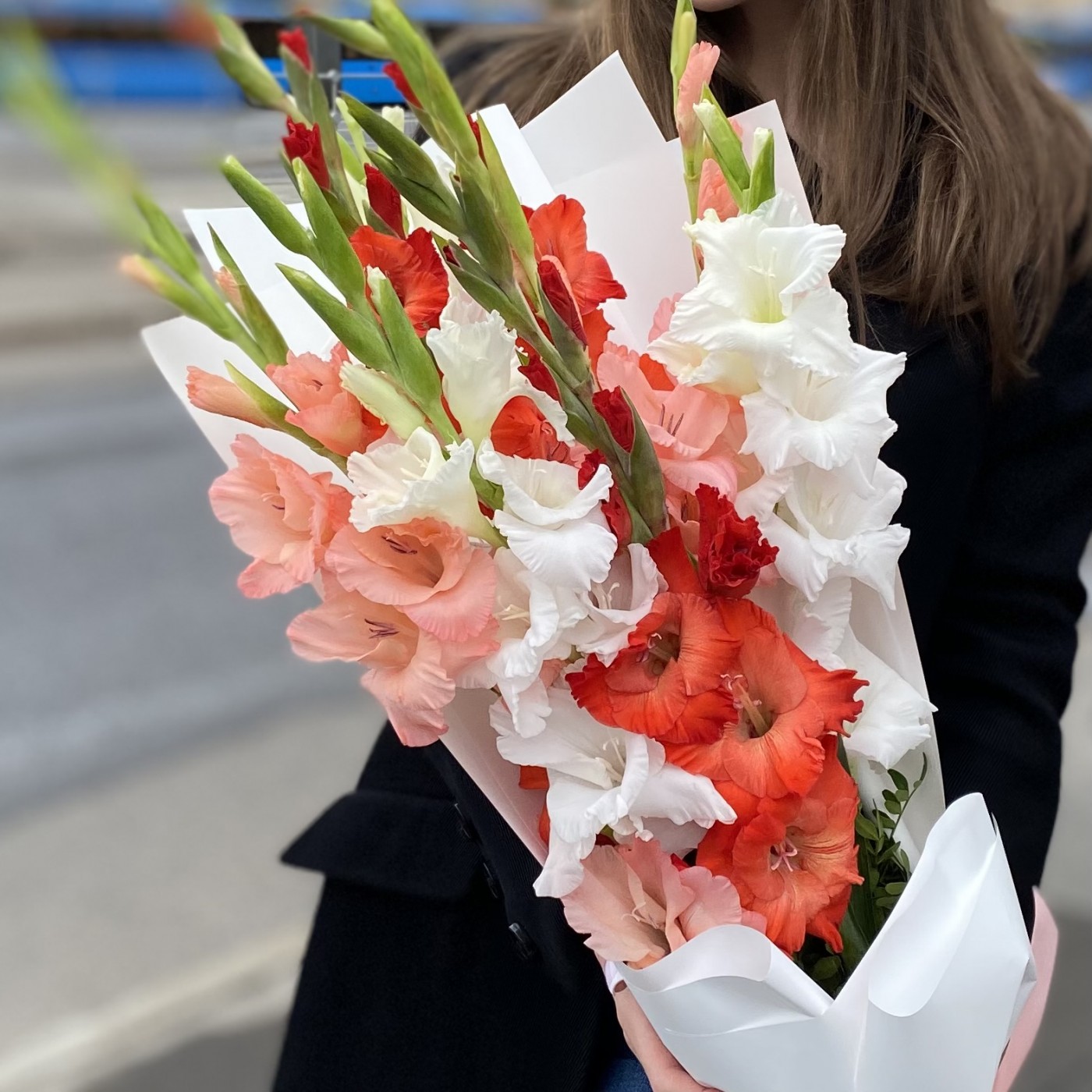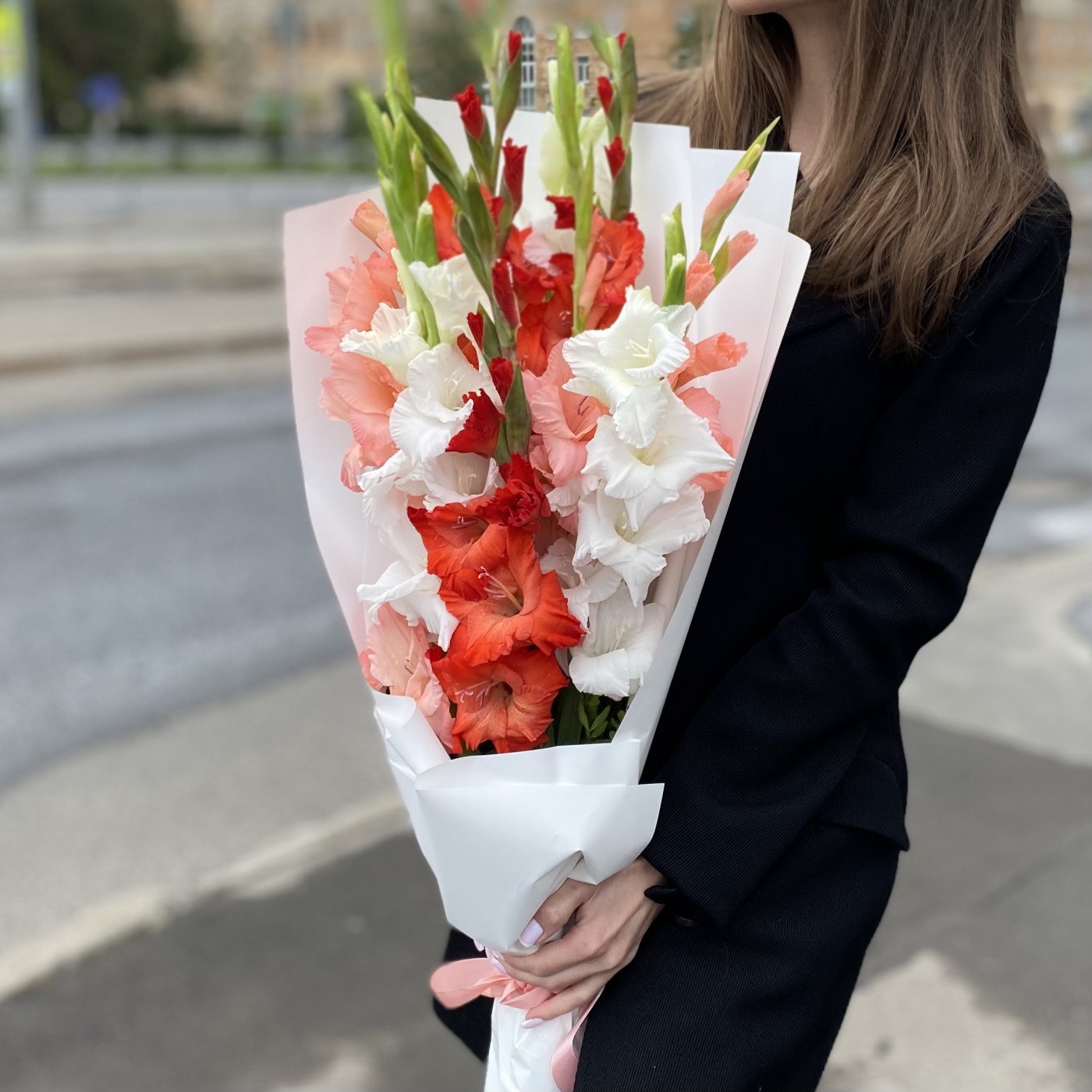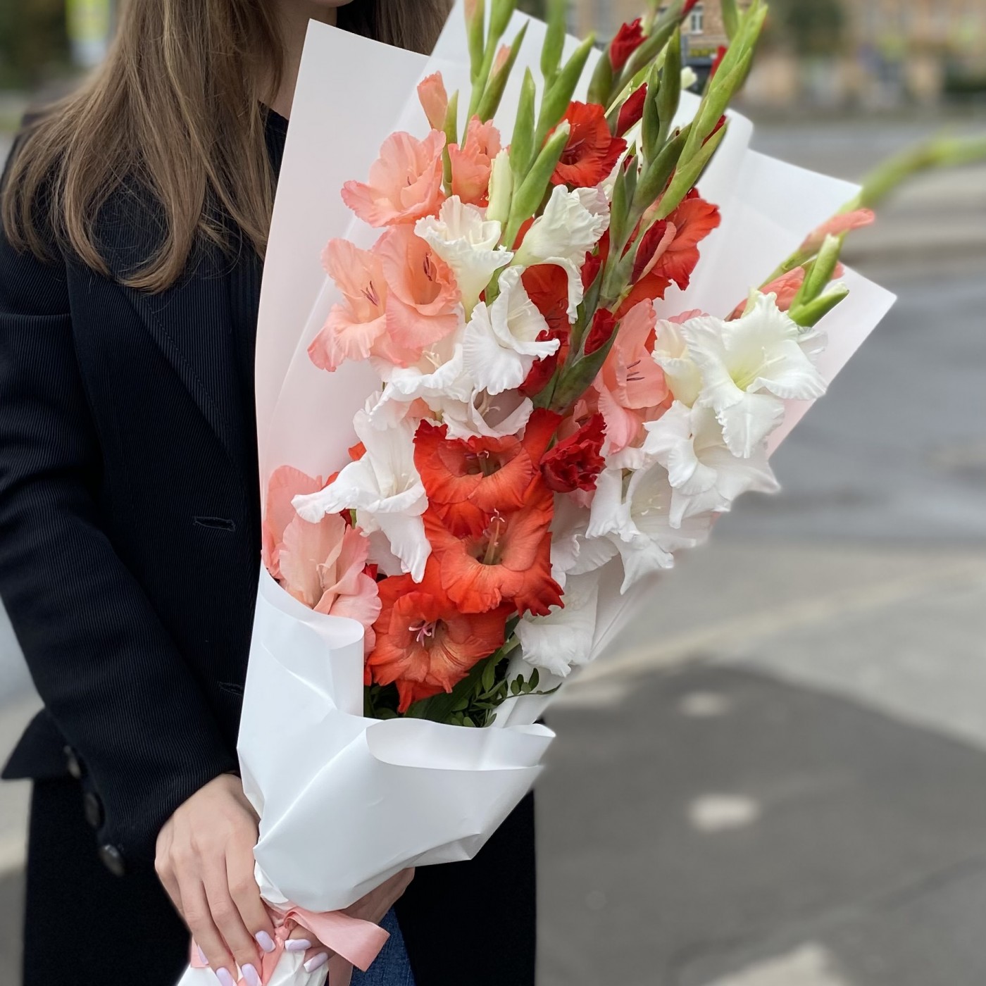 Букет из 9 ярких гладиолусов микс. Гладиолусы – самые роскошные осенние цветы, которые не оставят равнодушным никого и смогут порадовать Вашего получателя. Гладиолусы уместно преподнести в качестве подарка уважаемому коллеге, партнеру по бизнесу, а также любимому педагогу на 1 Сентября!