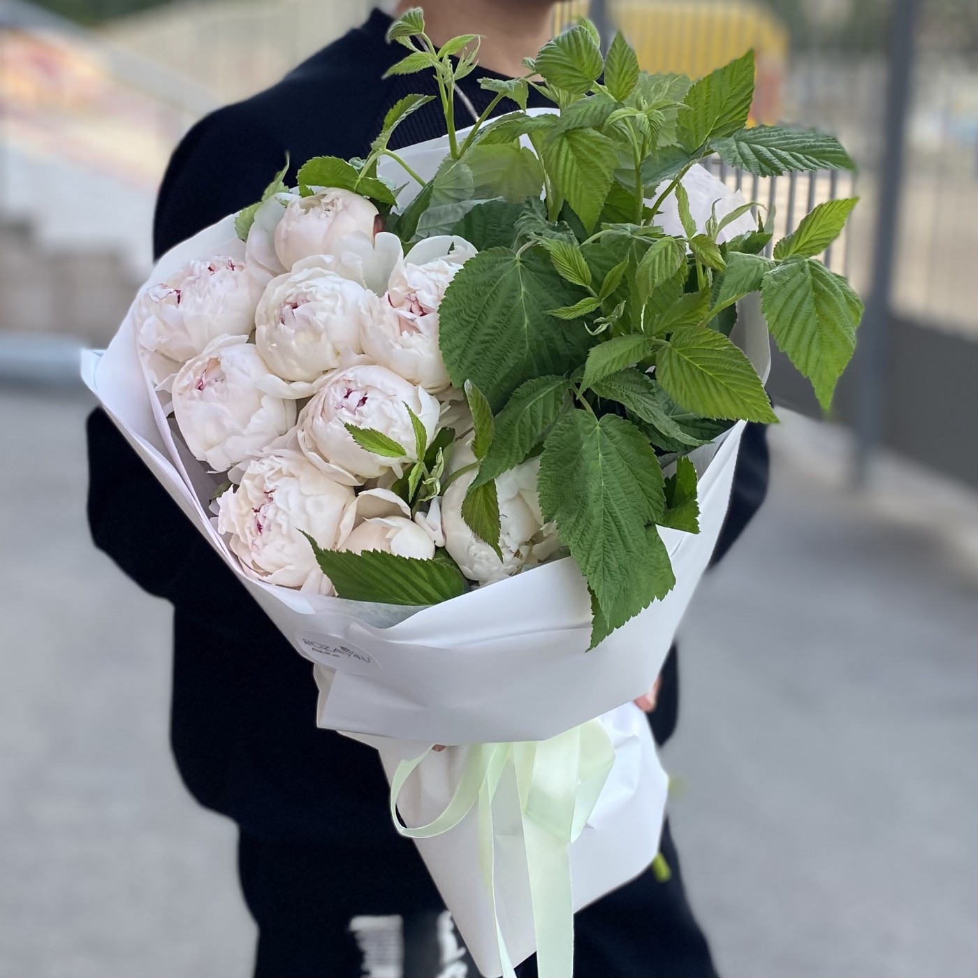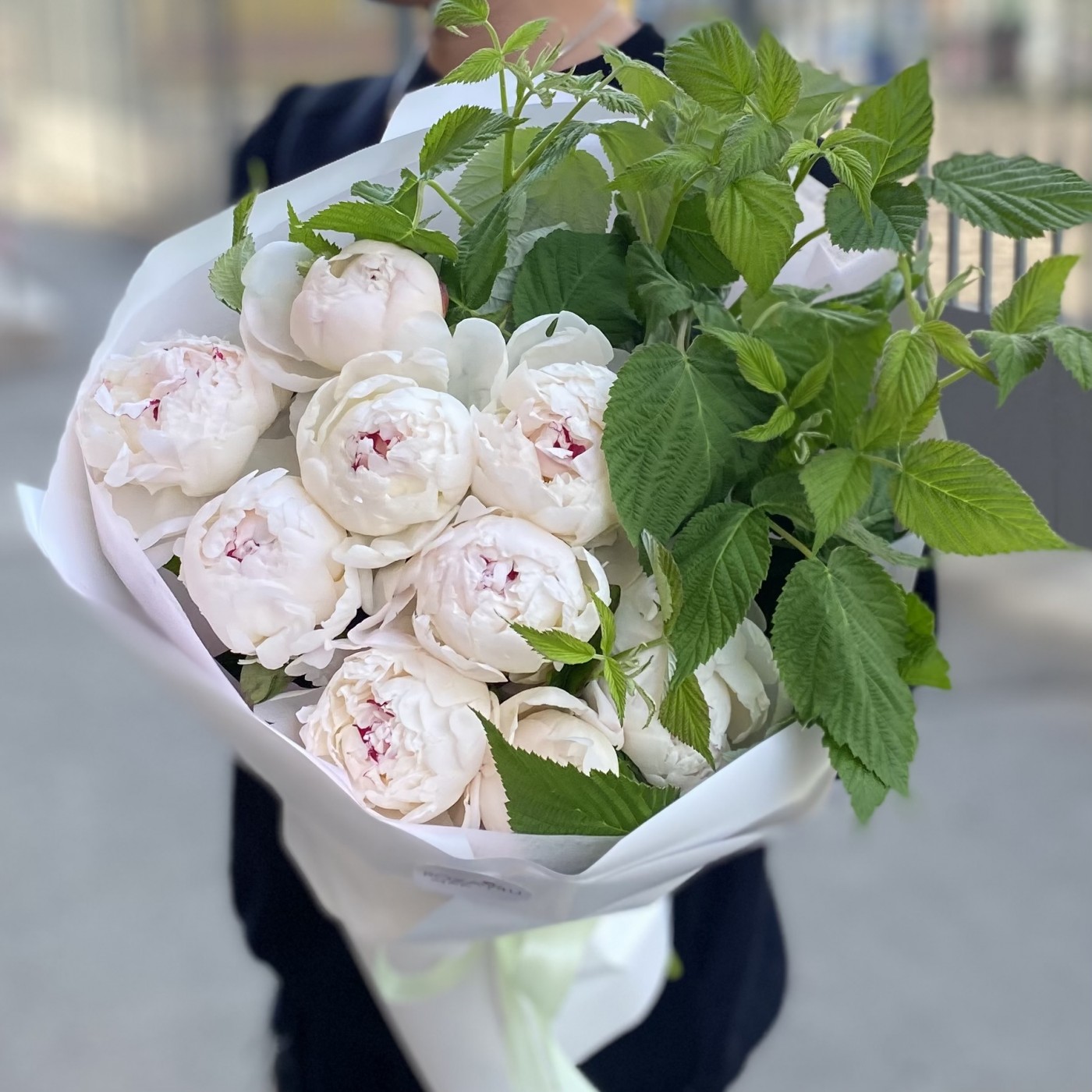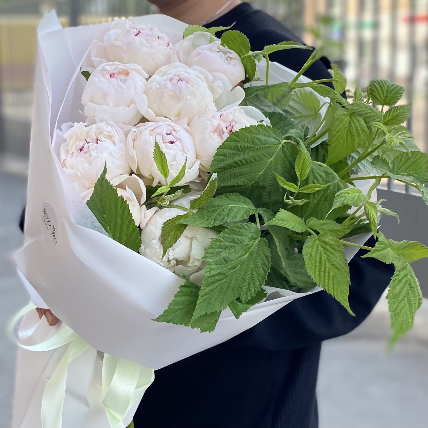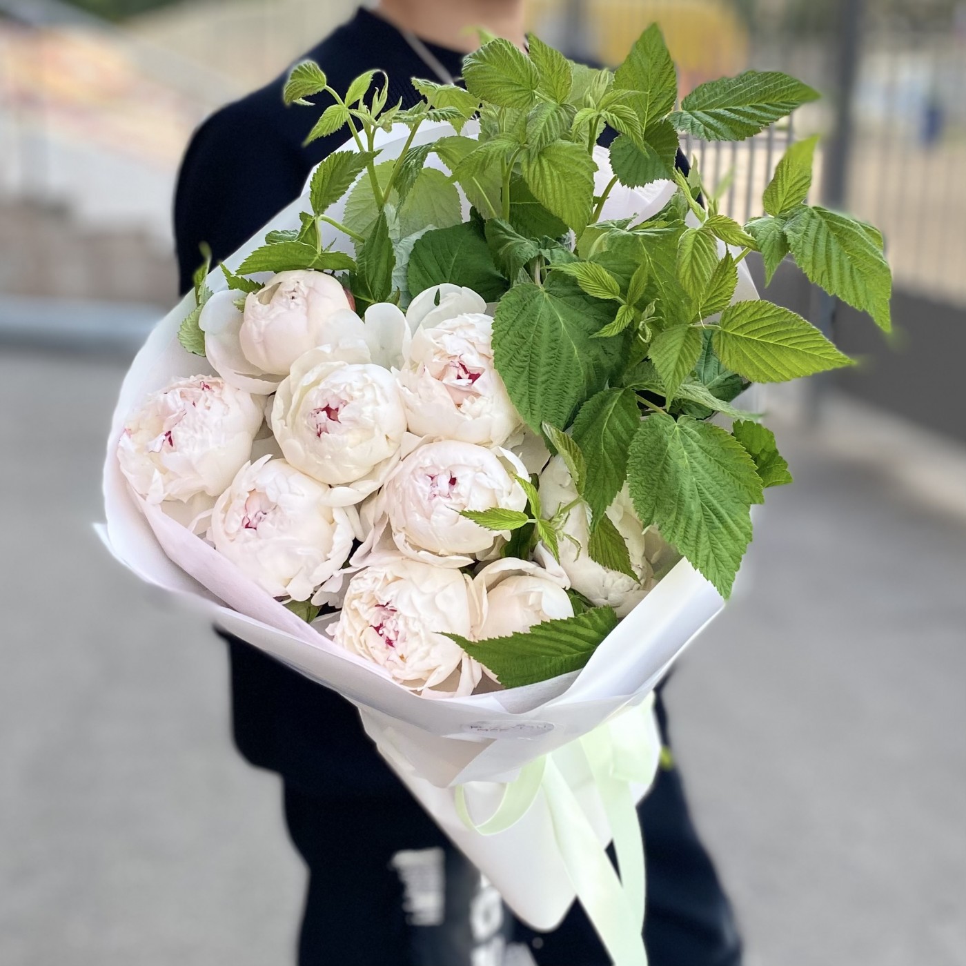 9 кремовых пионов Фестива с малиной