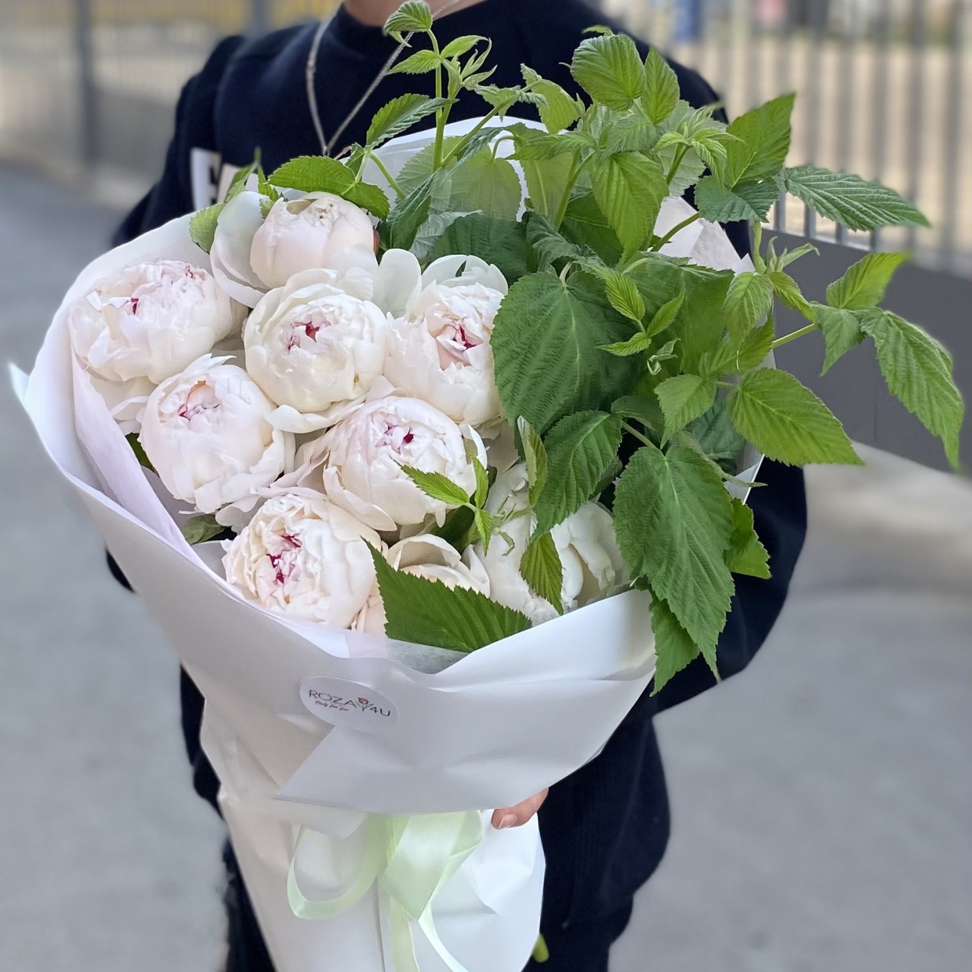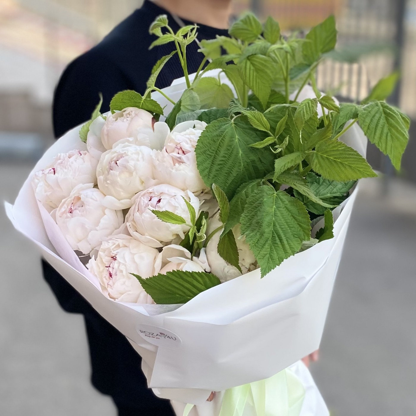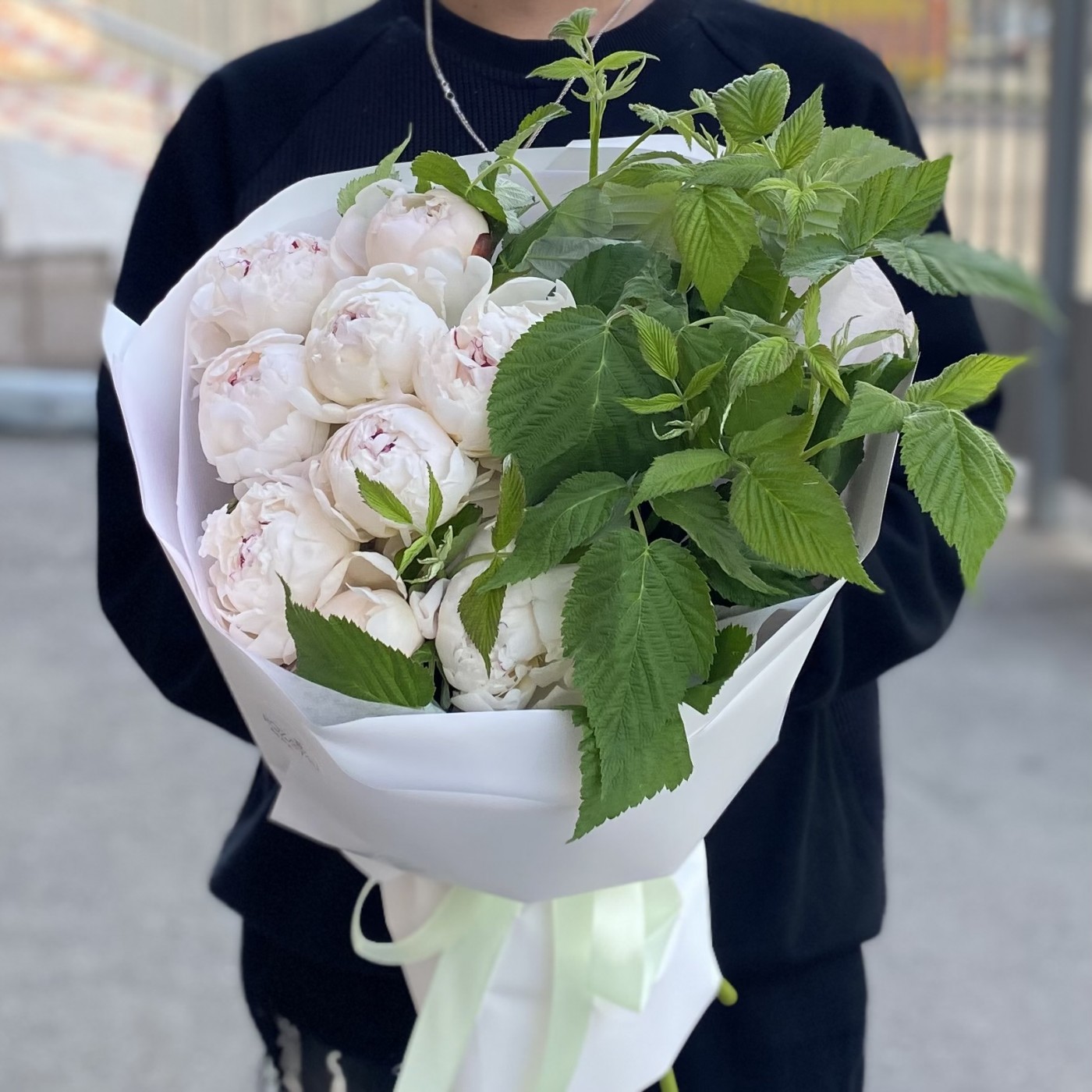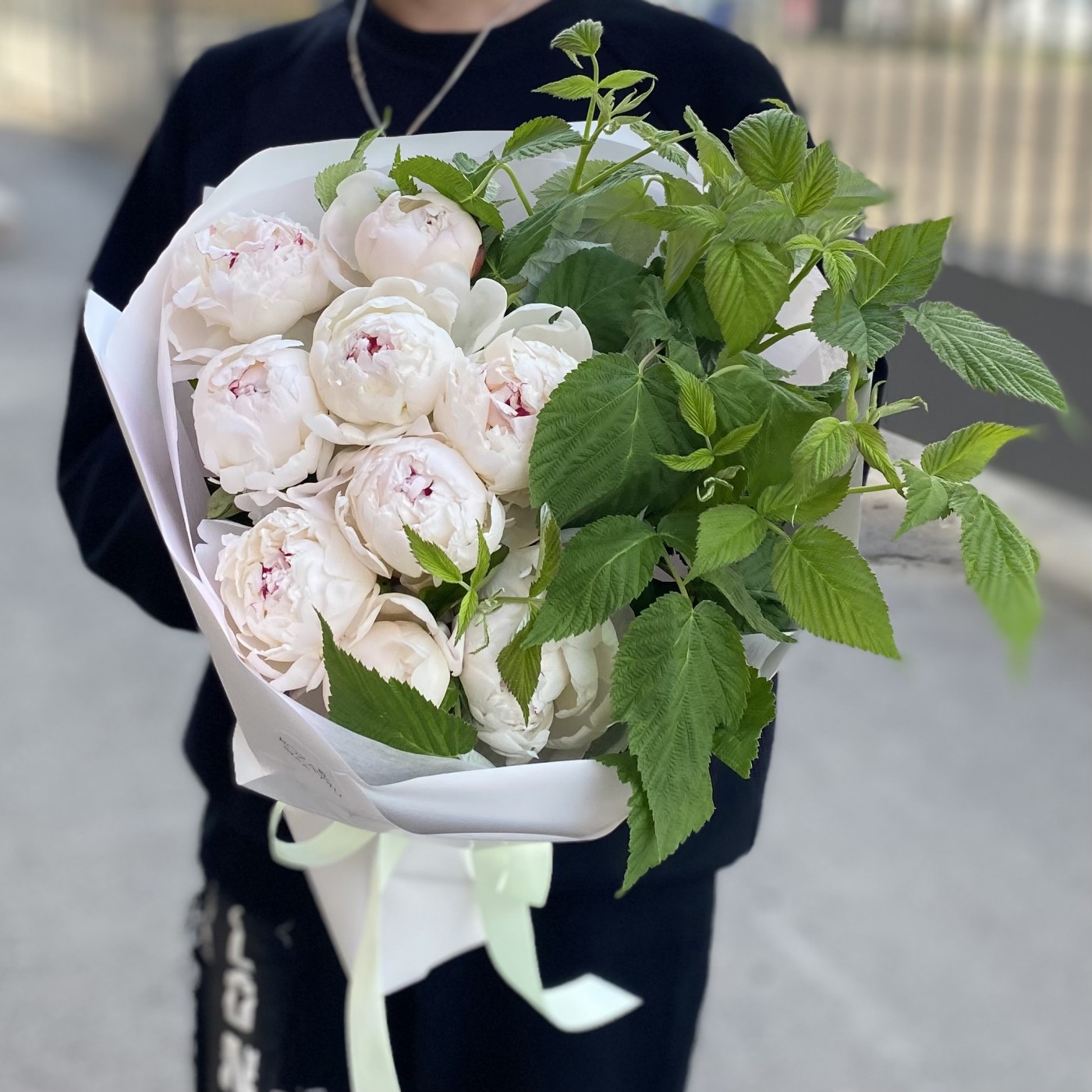 9 кремовых пионов Фестива с малиной