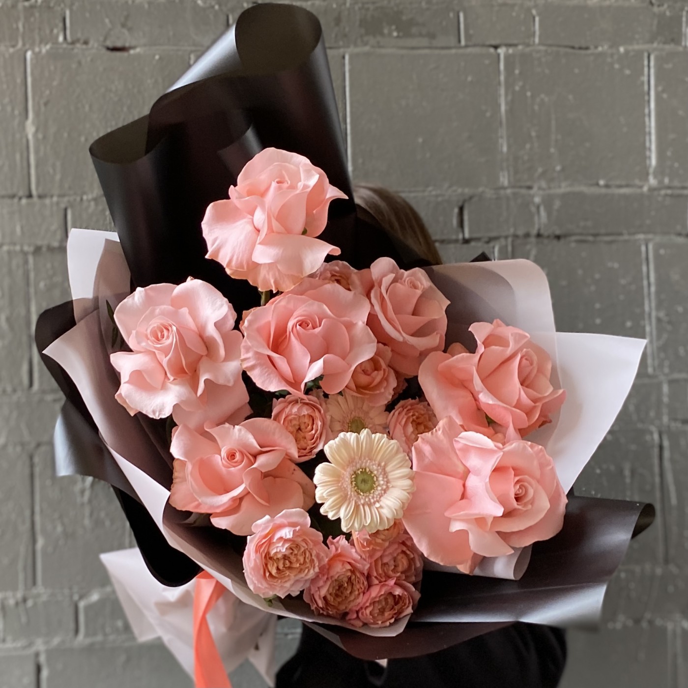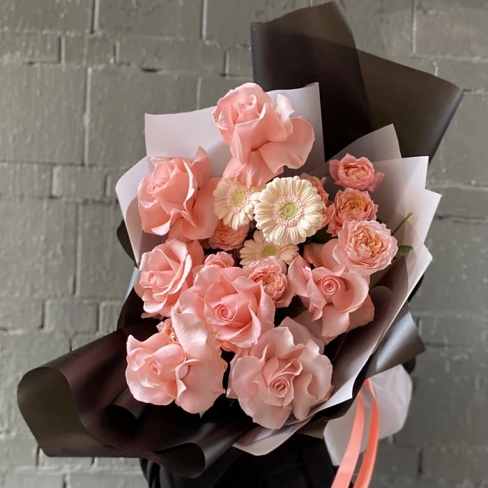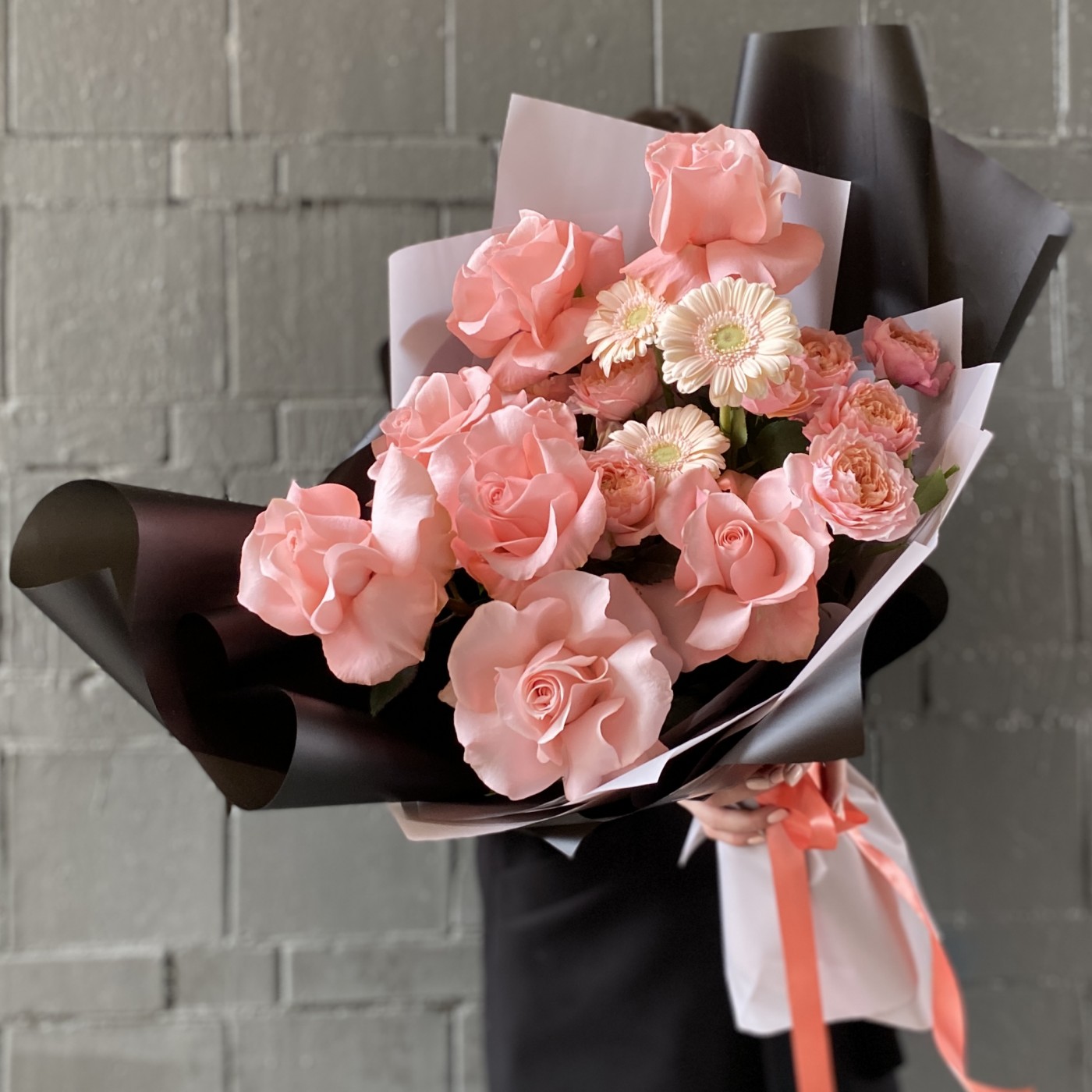 Большой букет с крупными розами и герберами. Произведите незабываемое впечатление и порадуйте получателя шикарным и стильным букетом.