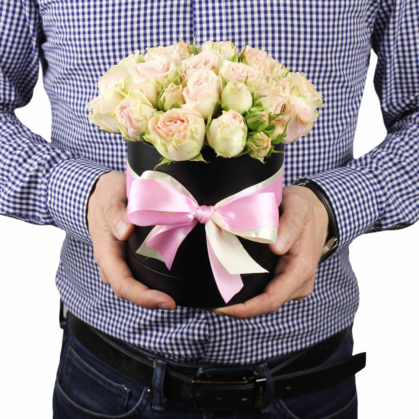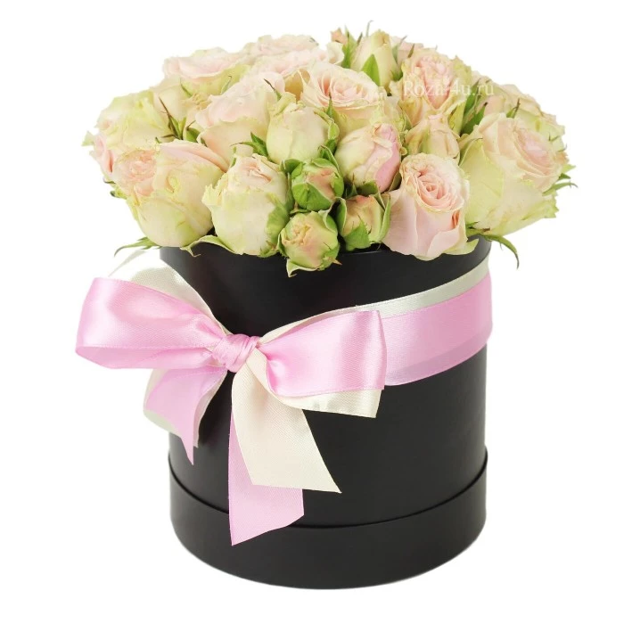 Теги: Кустовые розы Кустовые розы Розы в круглой коробке Розы в круглой коробке Букеты роз Букеты роз Цветы и букеты в коробке Цветы и букеты в коробке Пионовидные розы Пионовидные розы