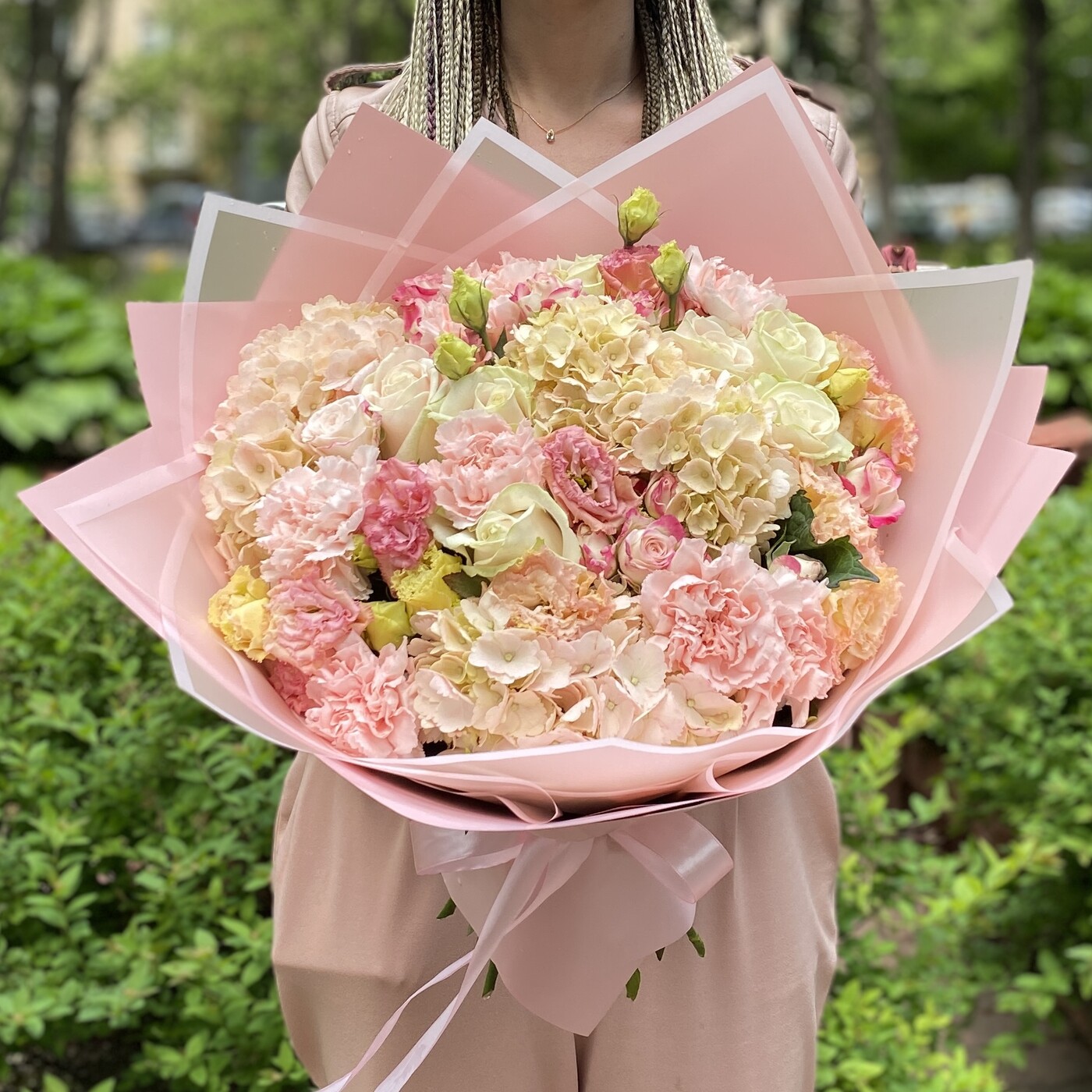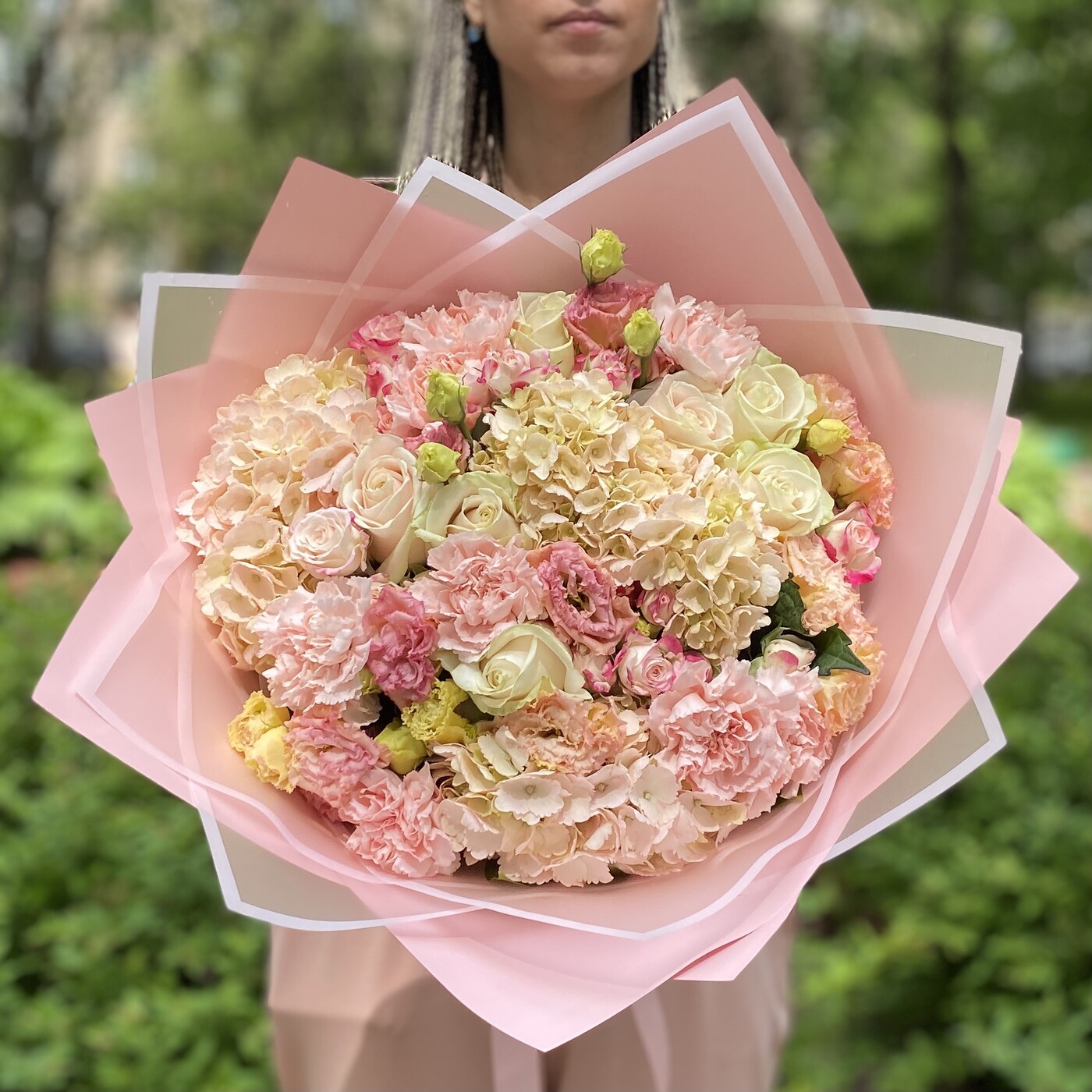 Большой нежно розовый букет