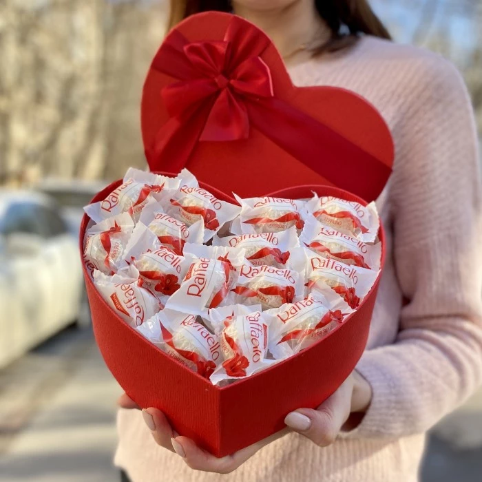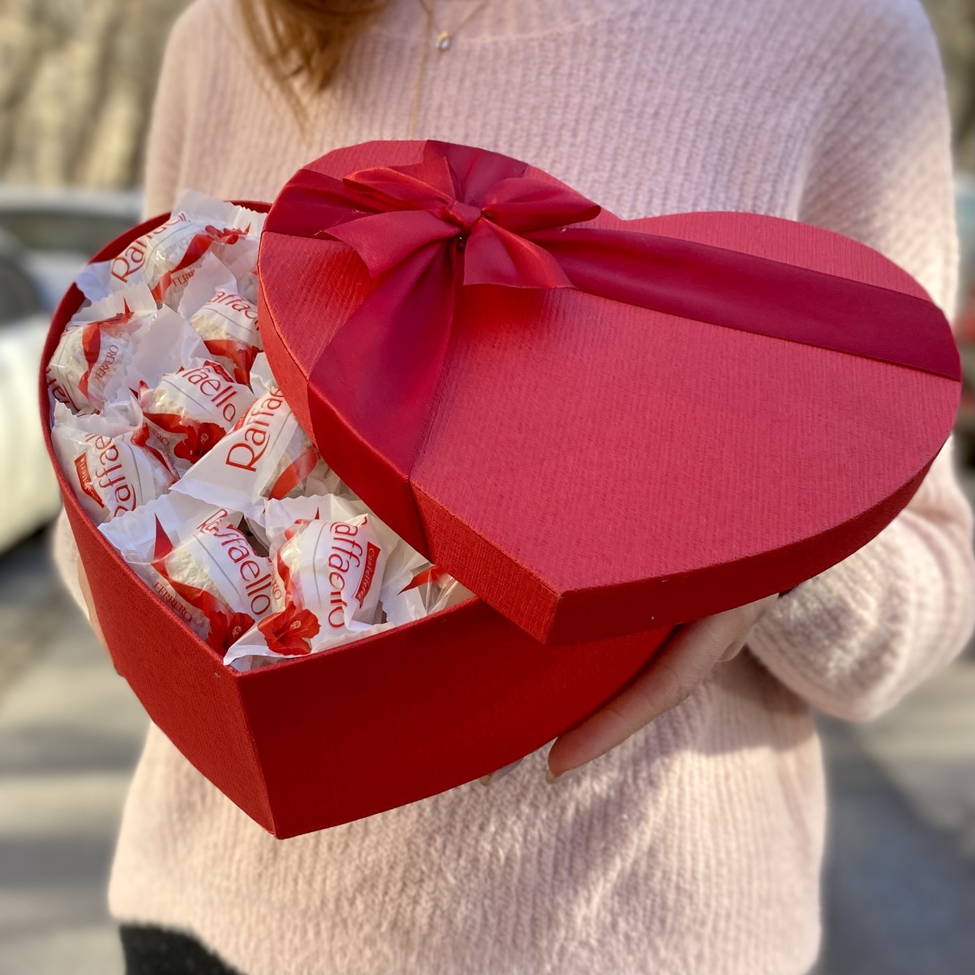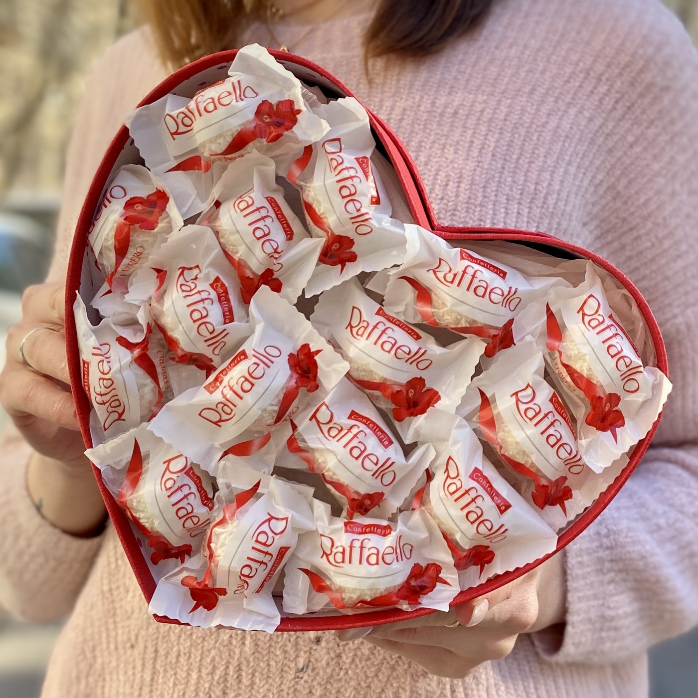 Коробка в виде сердца с Рафаэлло. Удиви и сделай приятный сюрприз своим любимым и близким. Прекрасное дополнение к букету или композиции из цветов.