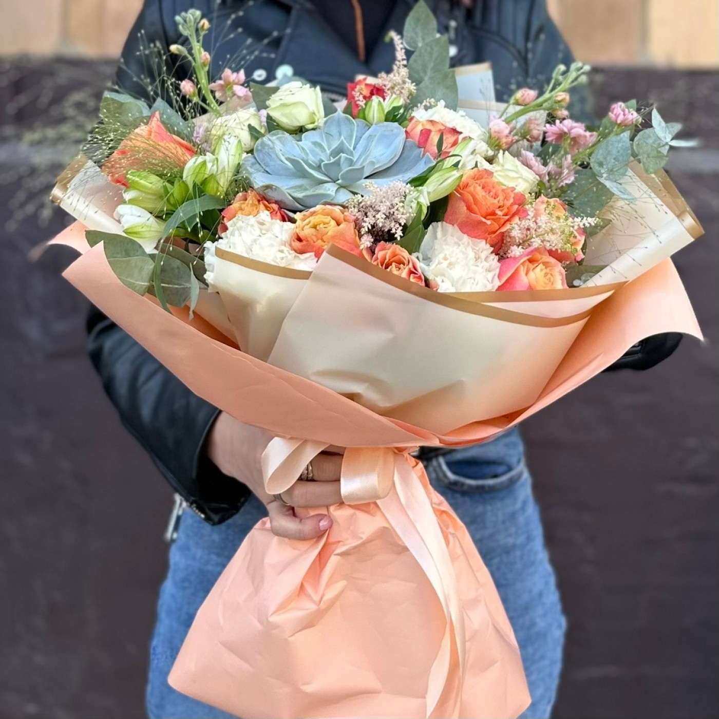 Большое спасибо за старания и пунктуальность, букет шикарный, а как пахнет! Ммм! Все замечательно! :)