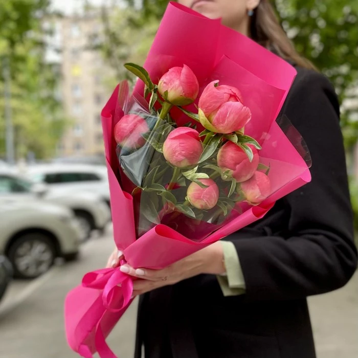 Букет из 7 коралловых пионов