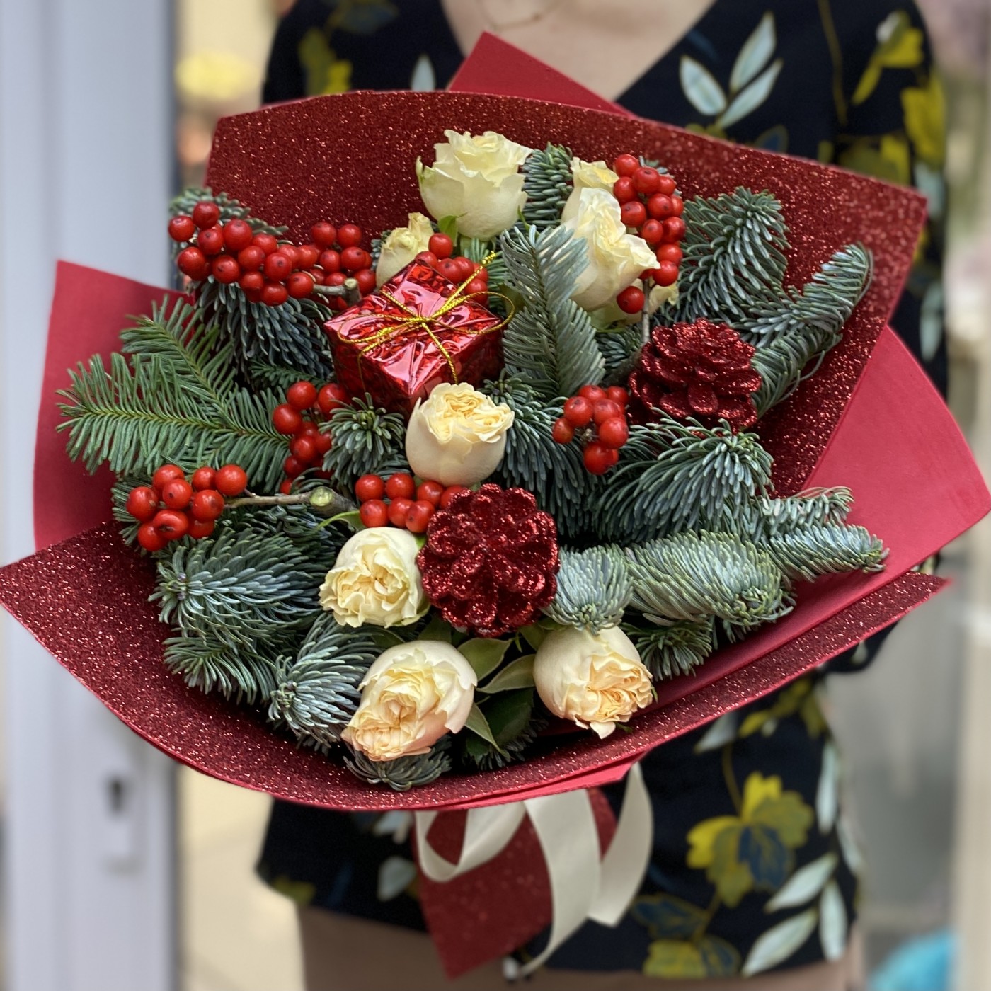 Букет красное конфетти прекрасный подарок в зимний период. Он яркий с игрушками, упакован в стильный красный фоамиран с блестками. Такой букет можно подарить не только взрослым но и детям.