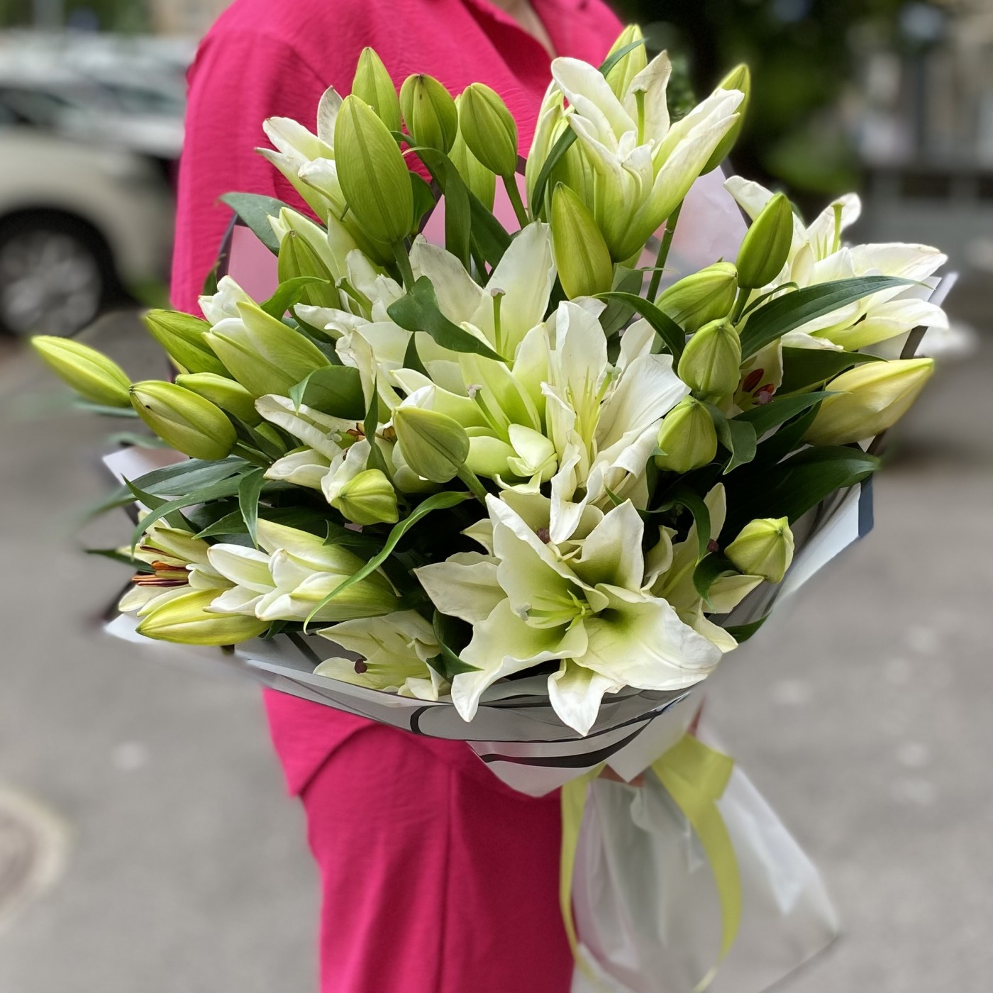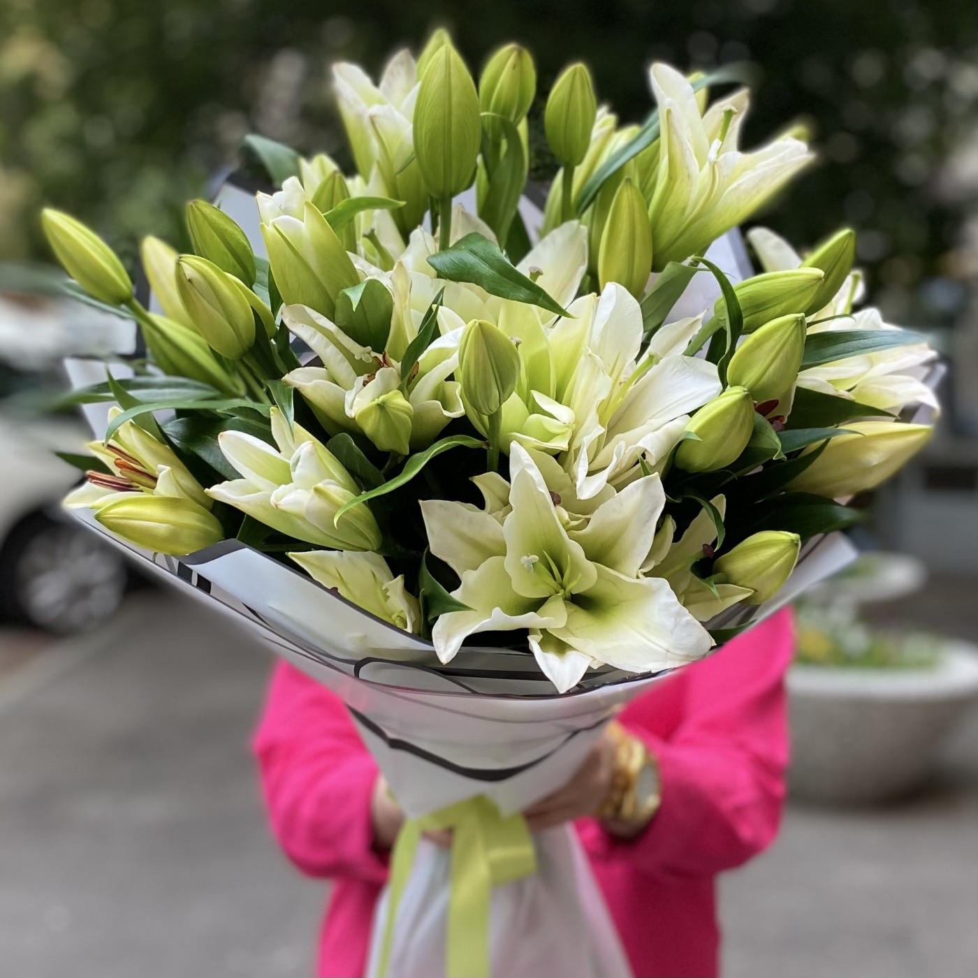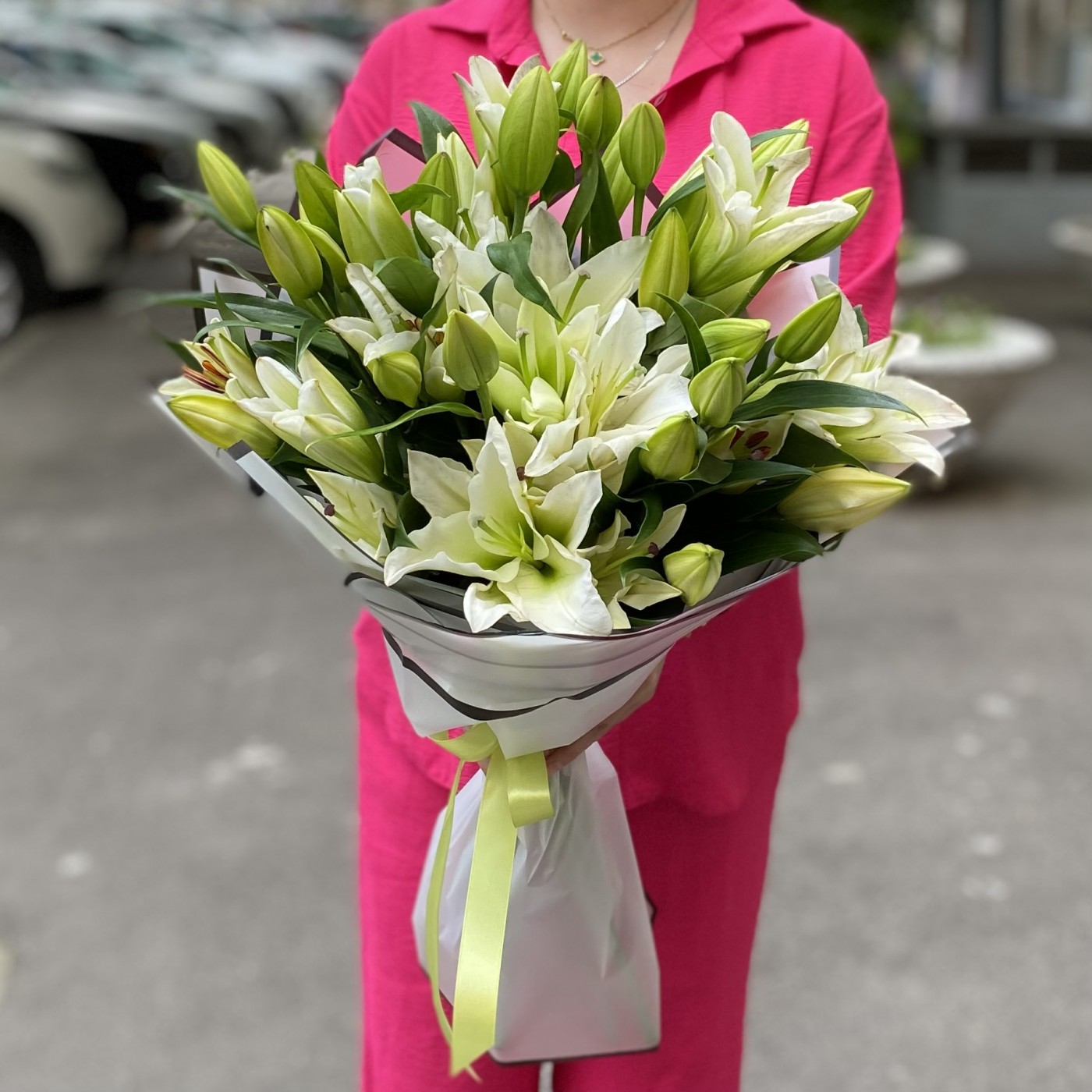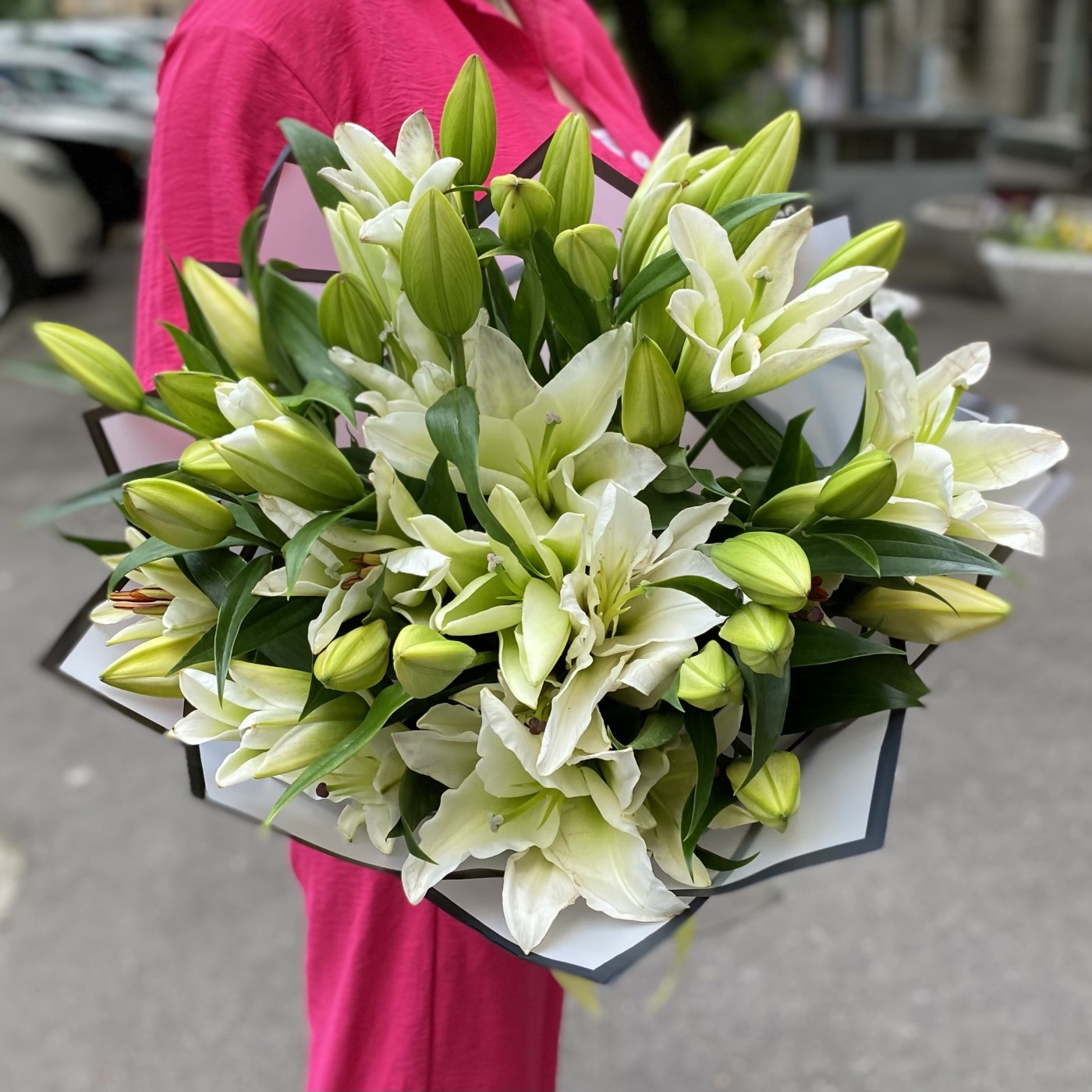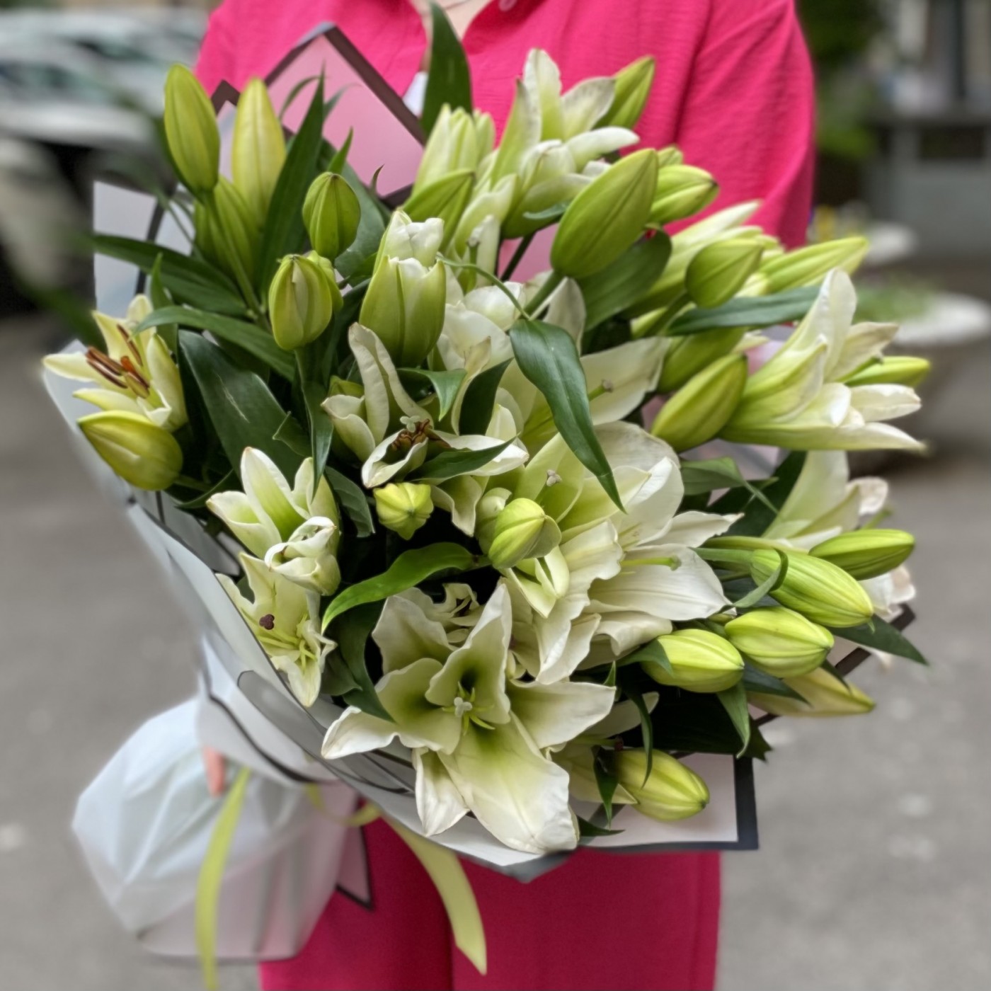 Заказала 2 букета, маме на юбилей. Букеты шикарные. Лилии крупные. Аромат потрясающий!!!