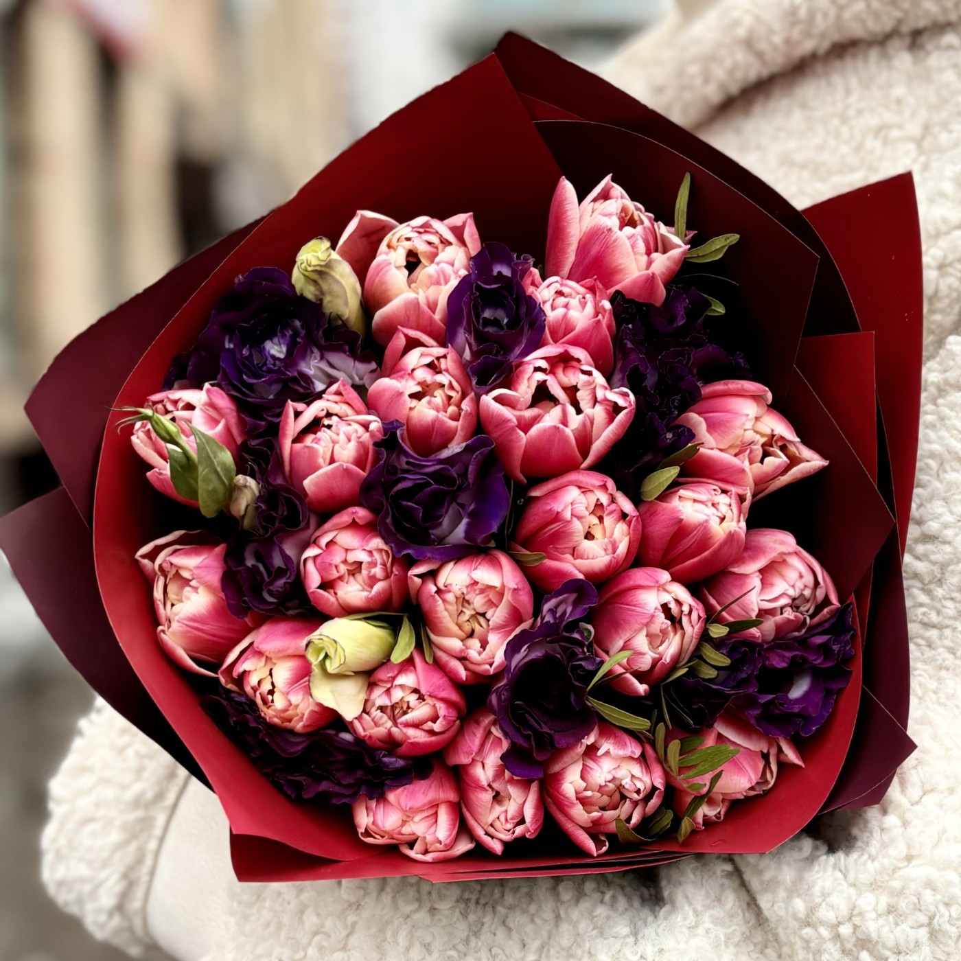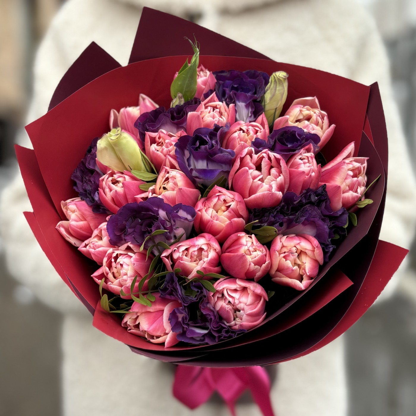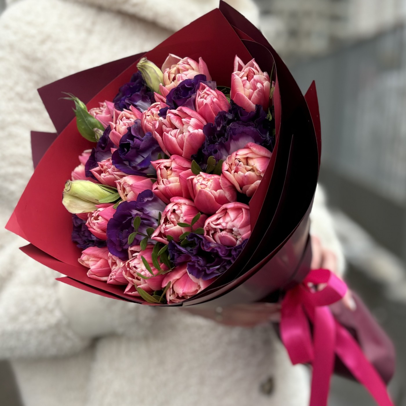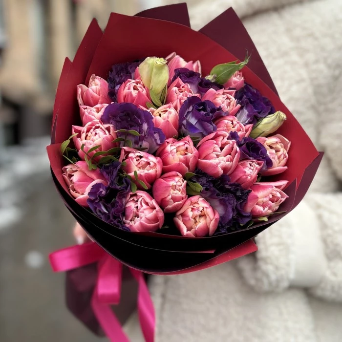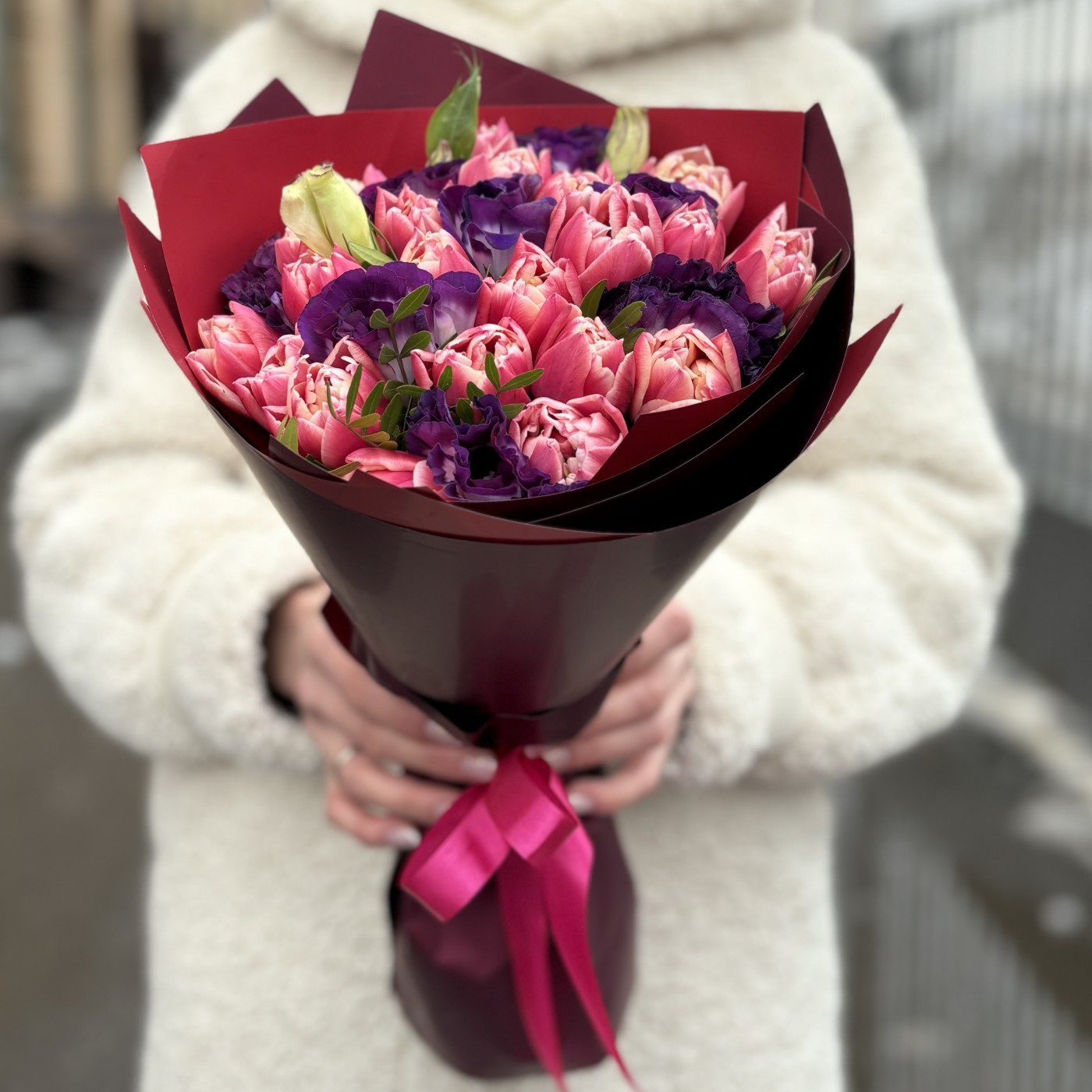Очаровательный колоритный букет создан для создания атмосферы праздника 8 Марта и поднятия настроения. Яркие и насыщенные тюльпаны - предвестники солнца и весны, в сочетании с эустомой - не оставят равнодушными Ваших близких. Невозможно грустить, видя это яркое великолепие. Подарите весеннее настроение вместе с этим ярким воздушным букетом.