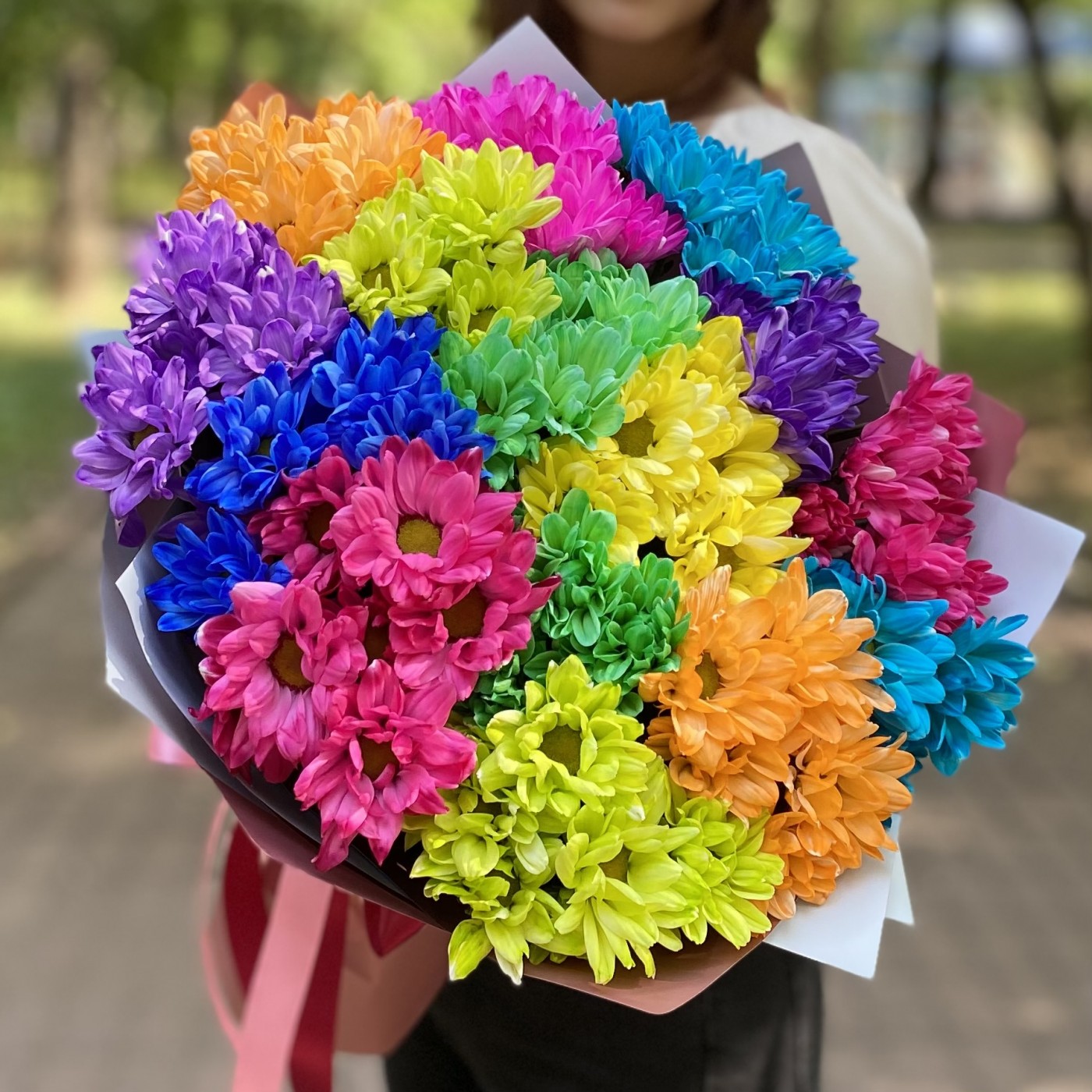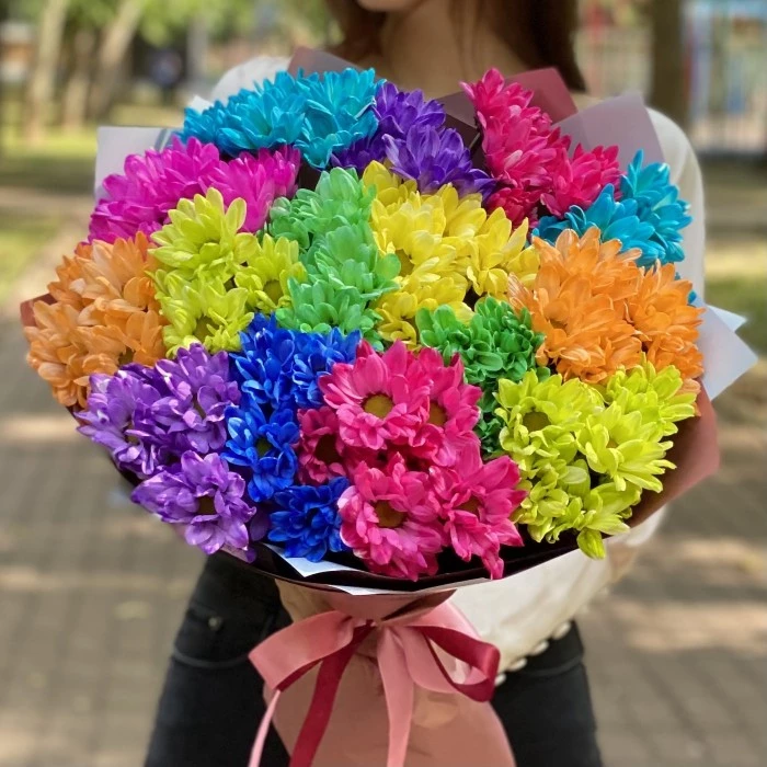Букет радужных кустовых хризантем