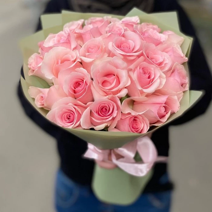 Пышными розовыми бутонами радует глаз роскошный букет из 25 розовых роз сорта Титаник. Композиция символизирует бесконечную нежность и преданность, передавая самые сокровенные чувства. Роскошный букет произведет впечатление на девушку и без слов скажет ей о ваших романтичных чувствах.