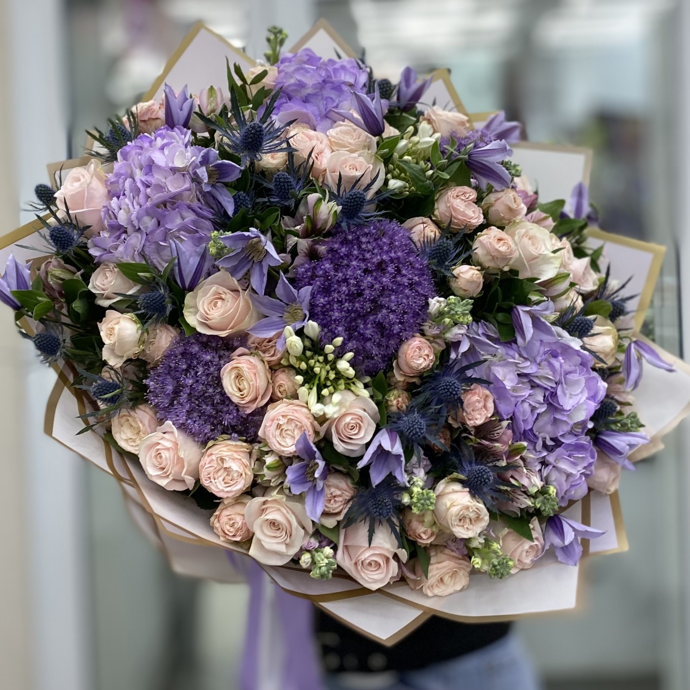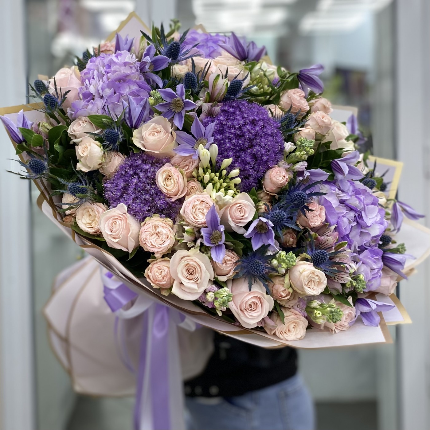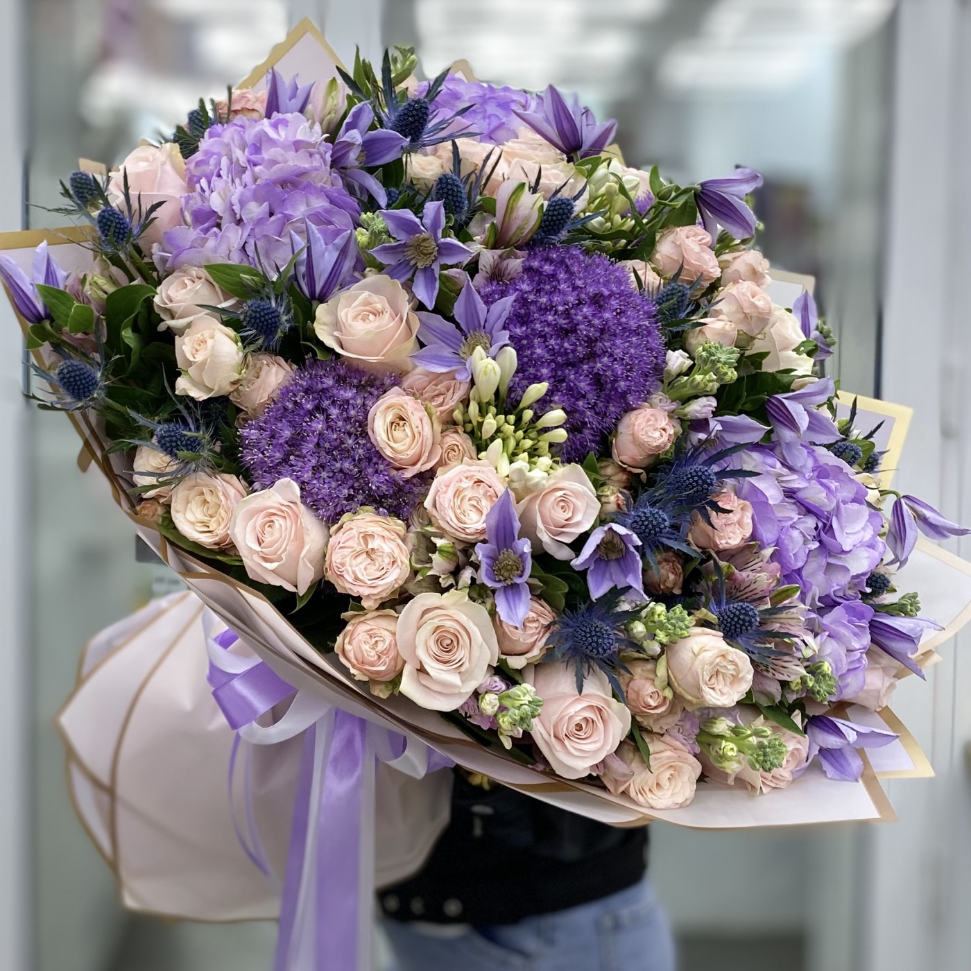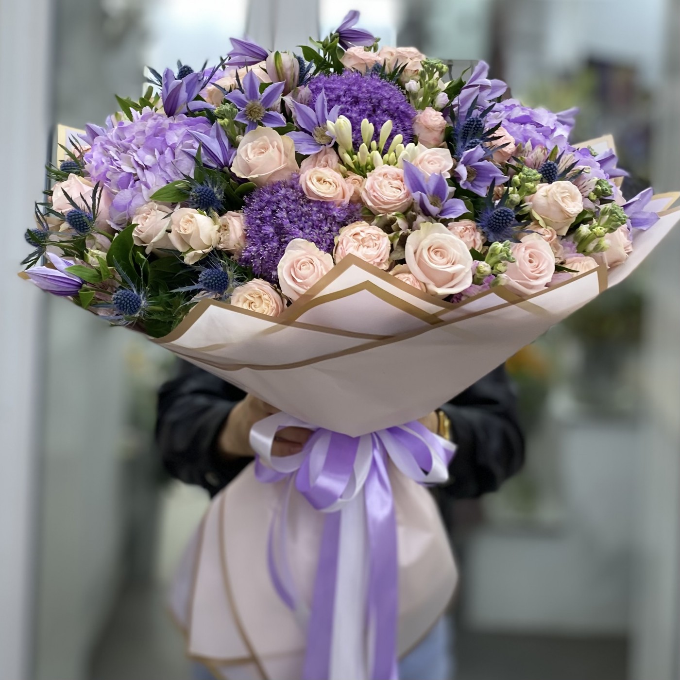 Сиреневый авторский букет для подарка на любое торжественное мероприятие. Такой букет приятно порадует получателя своей оригинальностью.