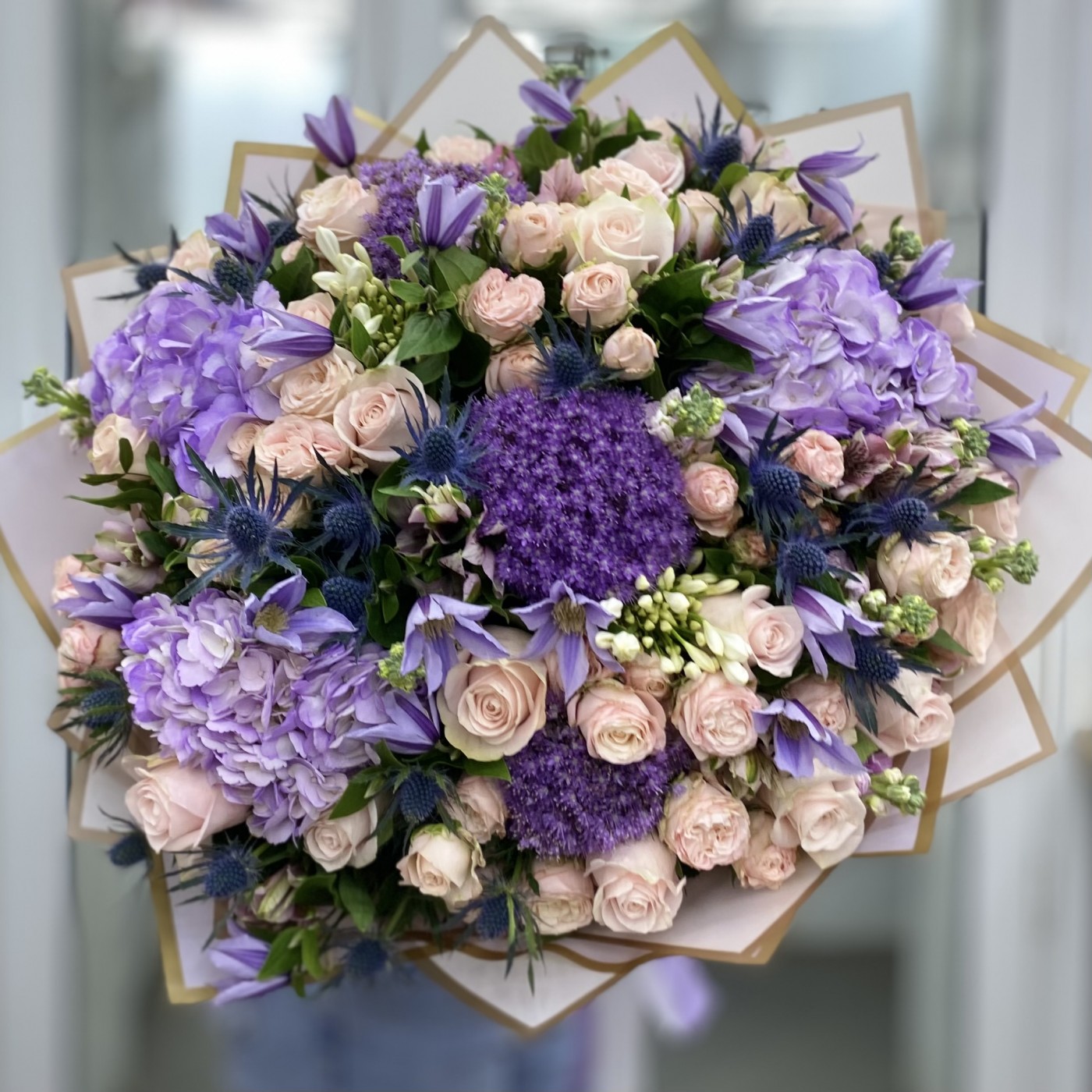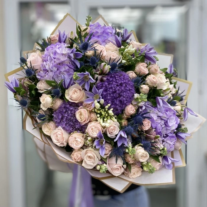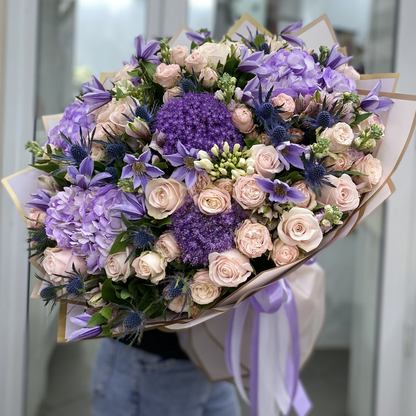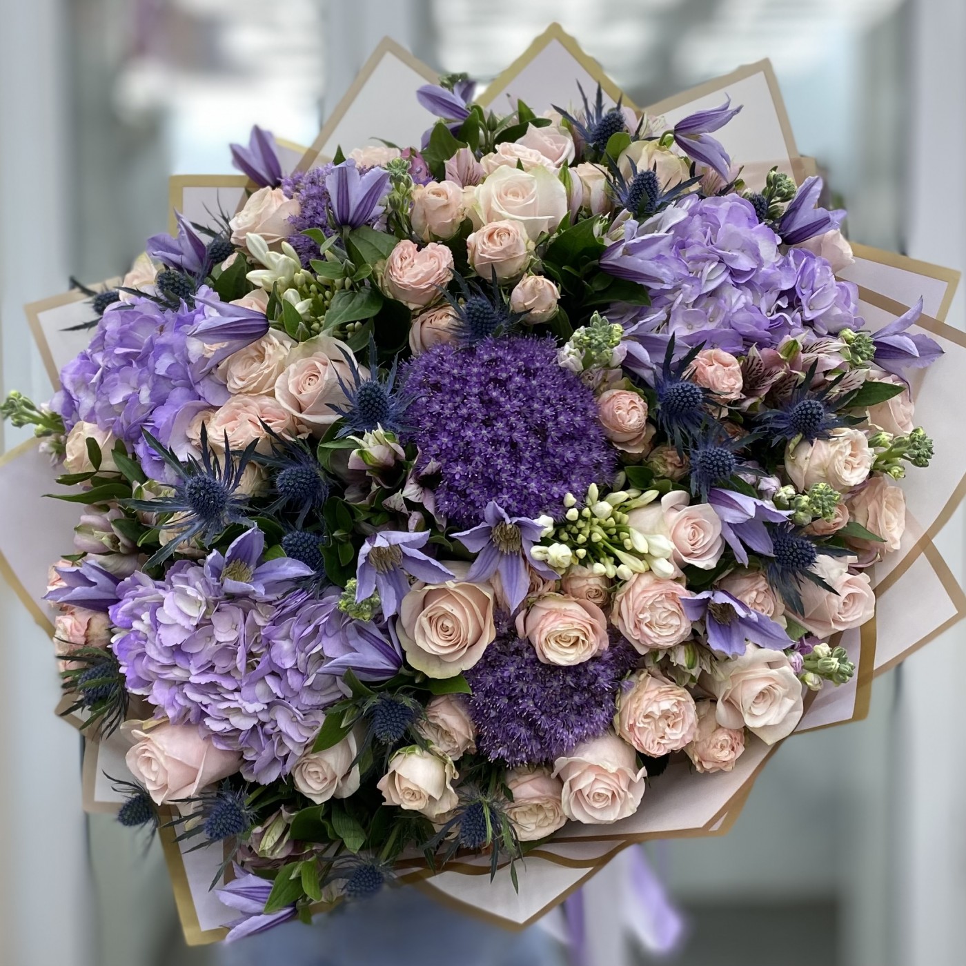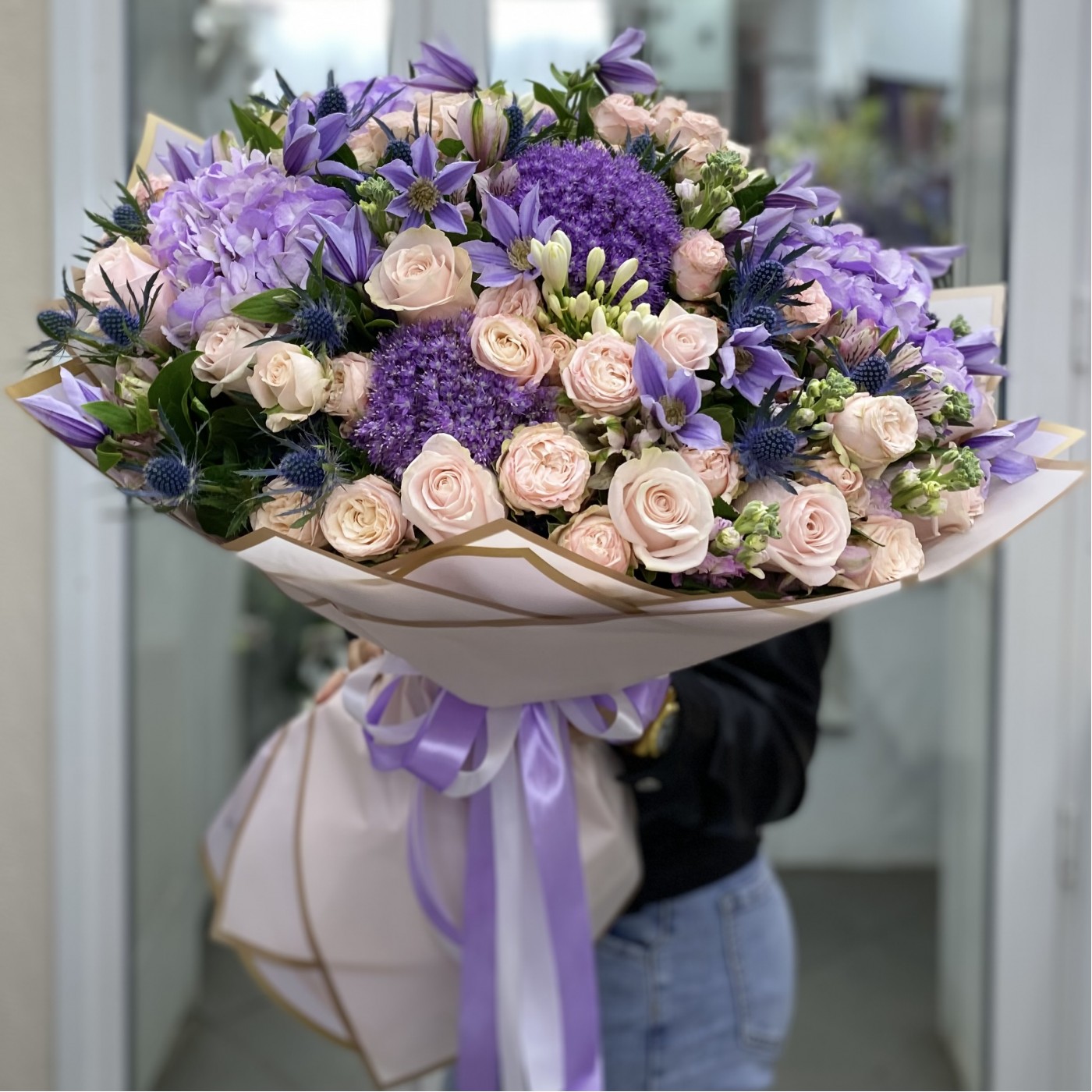Сиреневый авторский букет для подарка на любое торжественное мероприятие. Такой букет приятно порадует получателя своей оригинальностью.
