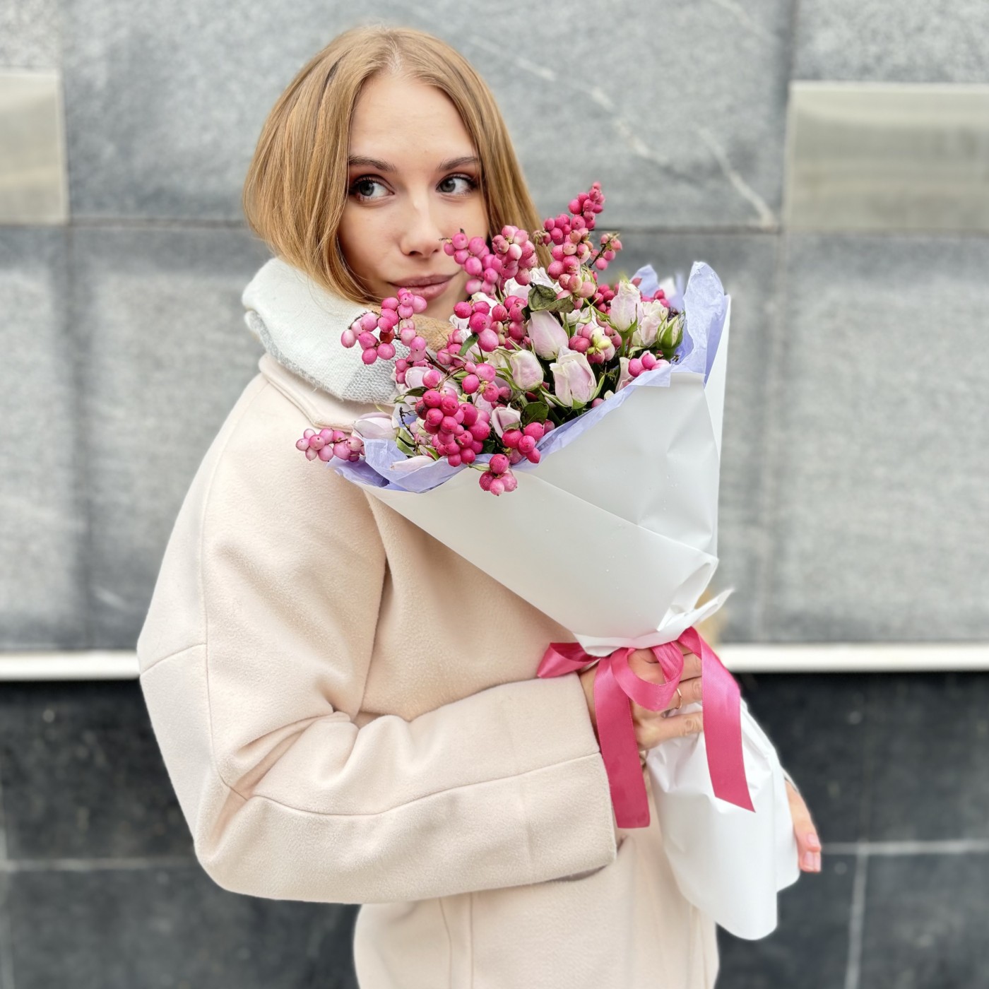 Большое спасибо за старания и пунктуальность, букет шикарный, а как пахнет! Ммм! Все замечательно! :)