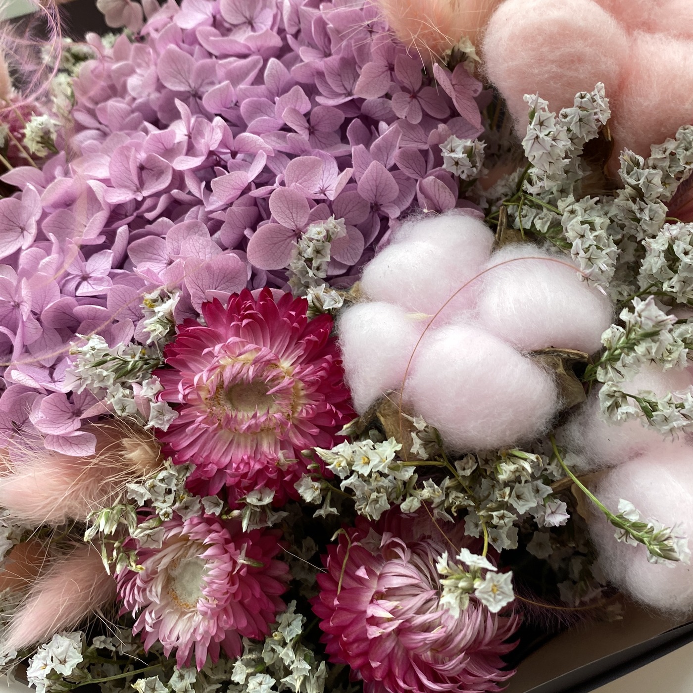 Нежная, объемная, стильная, а главное вченая композиция из необыкновенных сухоцветов станет приятным и незабываемым комплиментом для ребенка, девушке и семье.