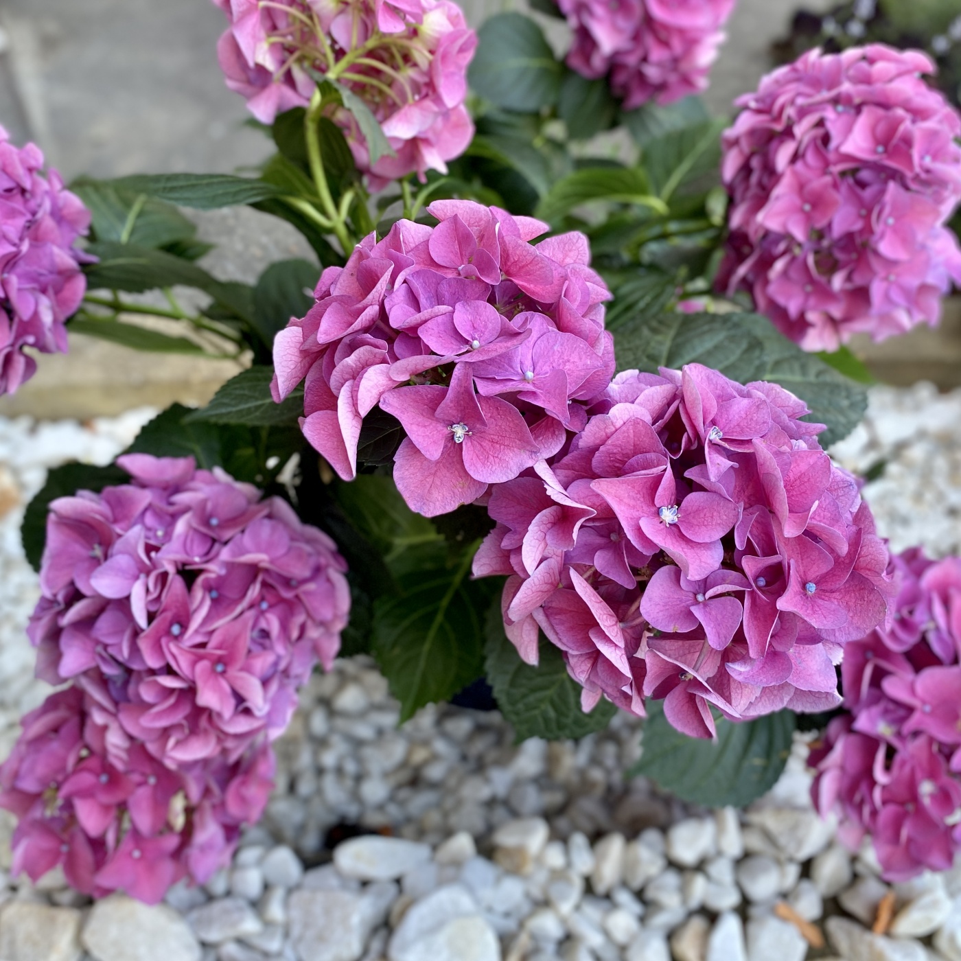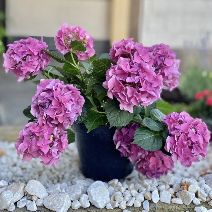 Гортензия макрофилла розовая (крупнолистовая) в горшке. Растение способствует увлажнению воздуха. Согласно народным приметам, помогает избавиться от вредных привычек.