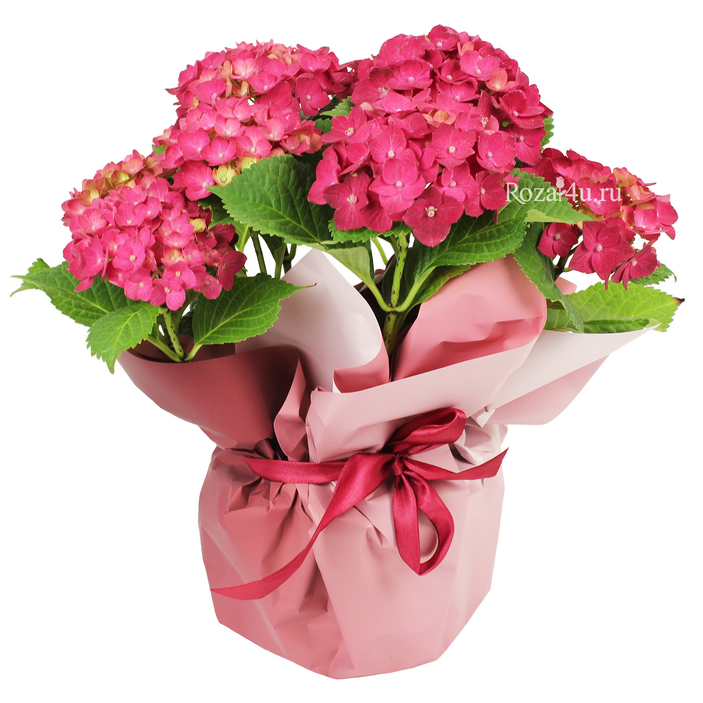 Уход – Улица - в течение первых двух лет после посадки уход за крупнолистной гортензией заключается в обильном поливе, внесении достаточного количества удобрений, мульчировании, рыхлении почвы и обрезке. Через два года полив может быть не таким обильным. Дома - в конце октября - начале ноября нужно отнести горшок с растением в сухой подвал или самое прохладное место дома или квартиры. В это время понемногу поливать землю, чтобы не допустить гибели корневой системы.