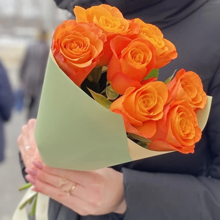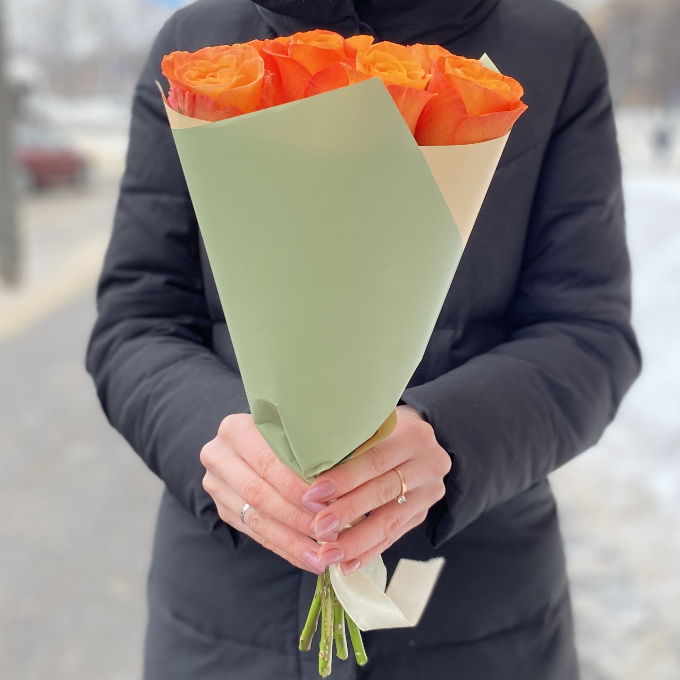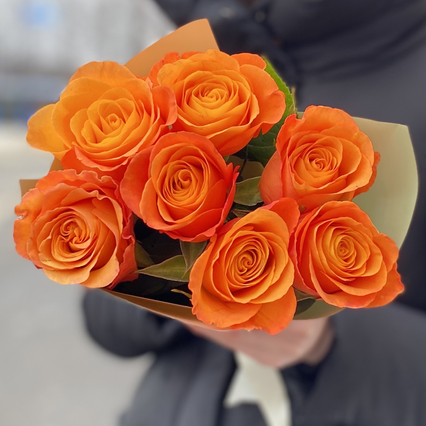 Бесподобный корпоративный букет из 7 роз насыщенного оранжевого цвета в стильной цветной упаковке станет приятным презентом коллегам, партнёрам по бизнесу и руководству к 8 марта, юбилею компании или любому другому торжеству. Такие монохромные флористические композиции не только презентабельно и стильно смотрятся, но и надолго сохраняют свой первоначальный вид. Все свои эксклюзивные букеты мы создаём исключительно из свежих и качественных цветов, потому что нам важно, чтобы вы получали лучшее! Заказывайте наши восхитительные цветы сами и советуйте другим.