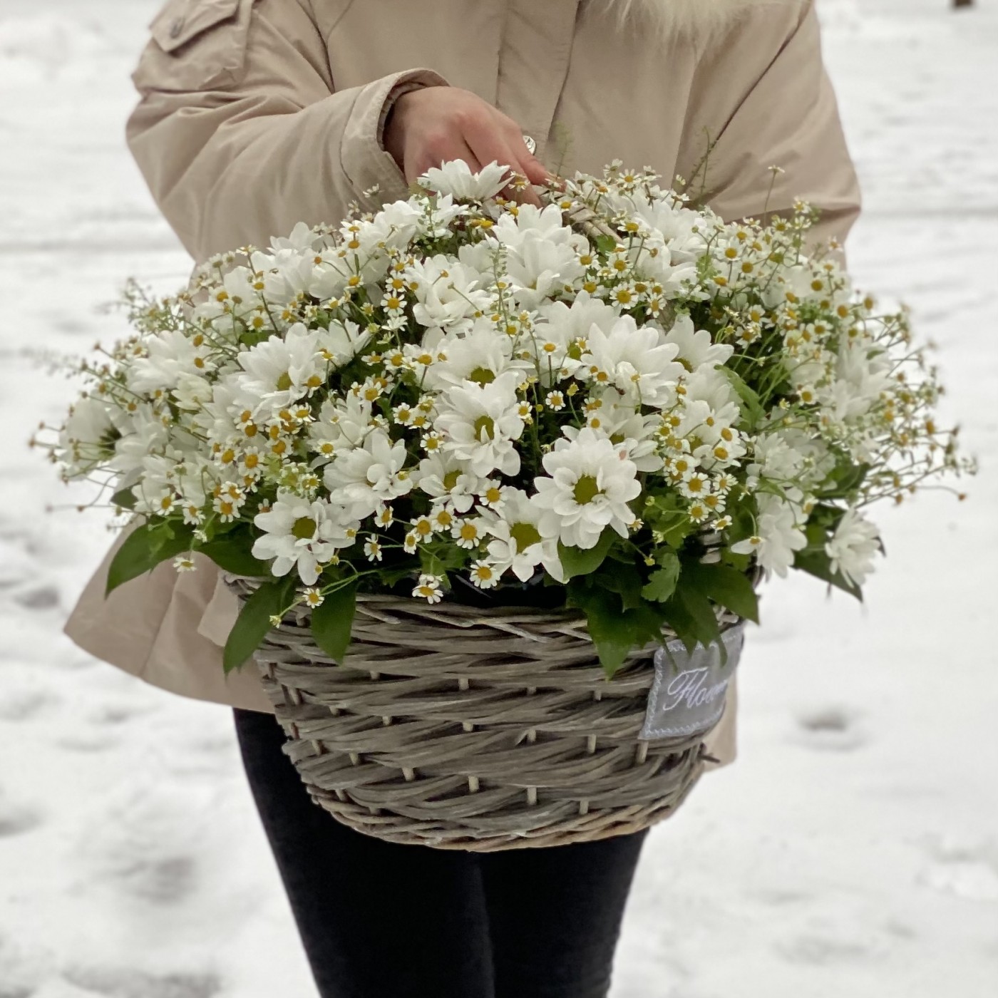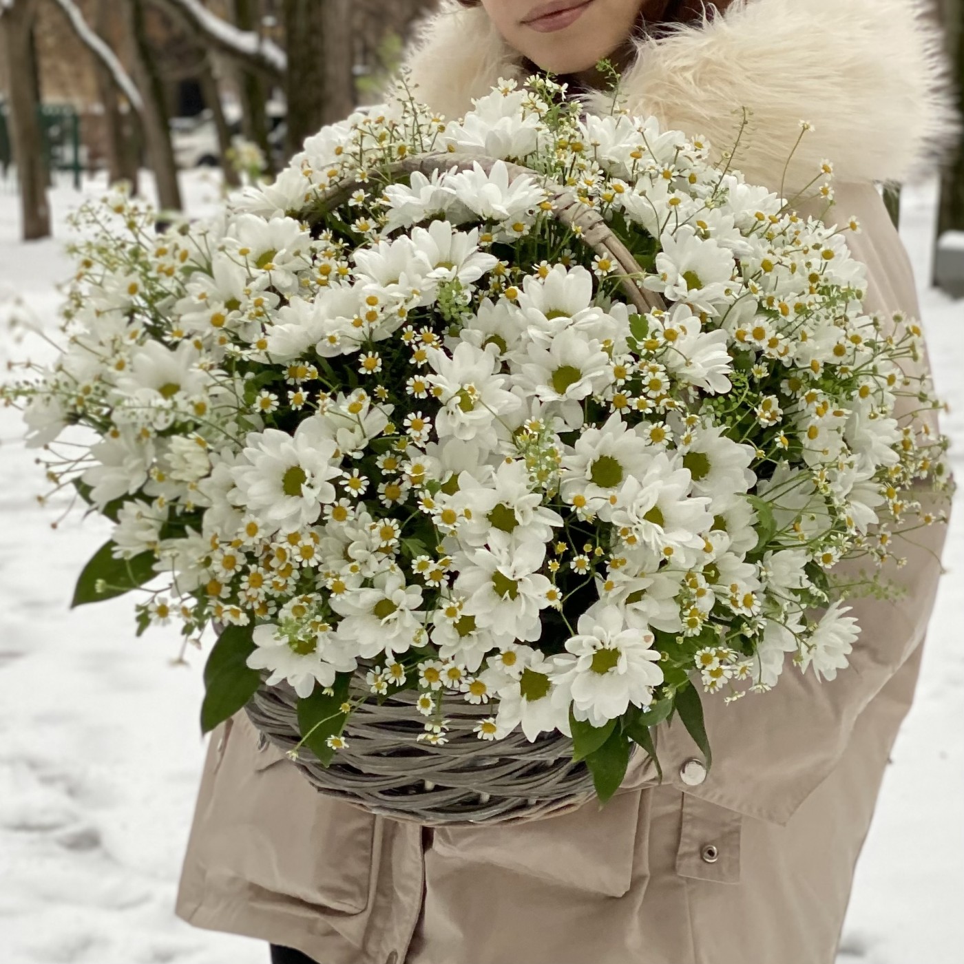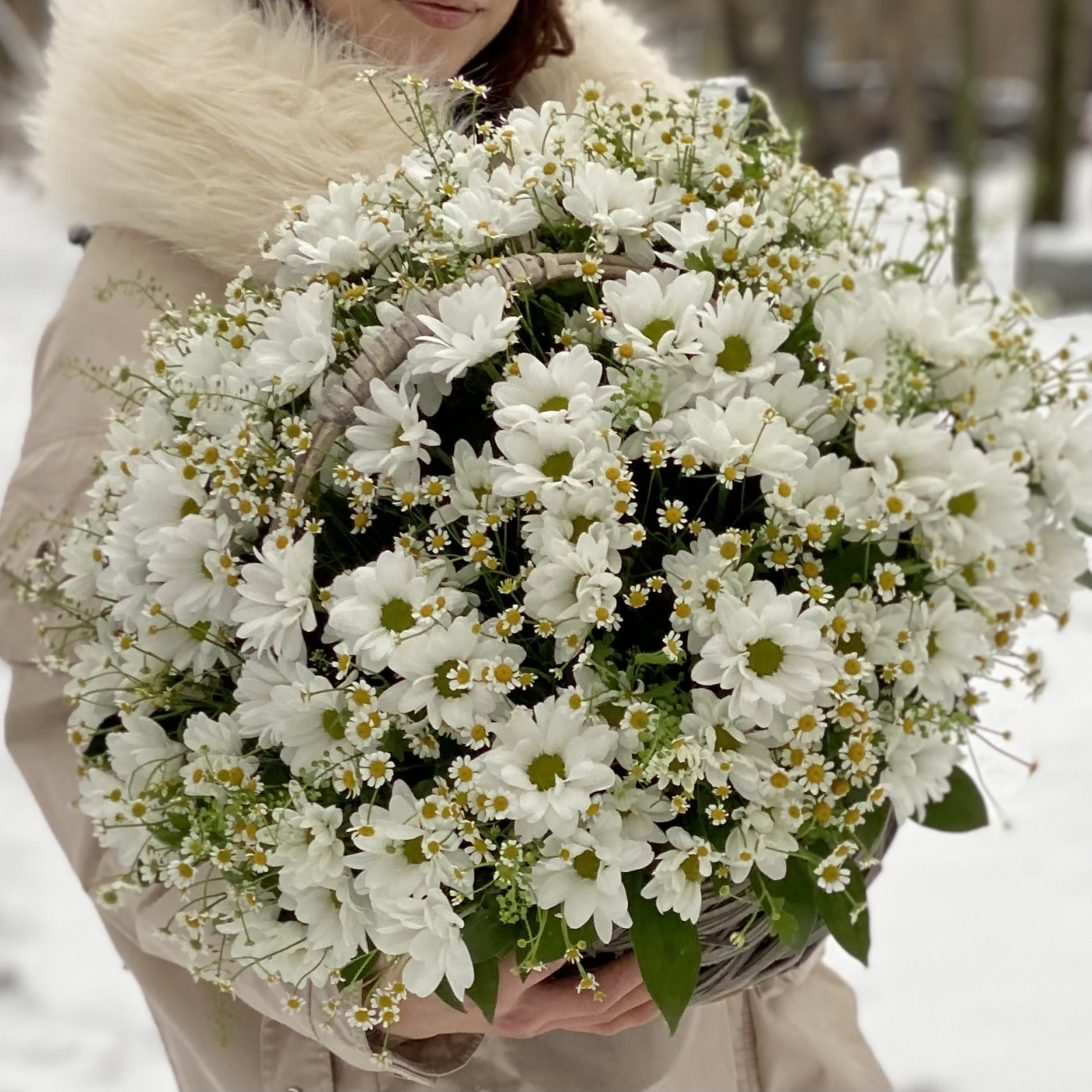 Корзина душистых хризантем и ромашек