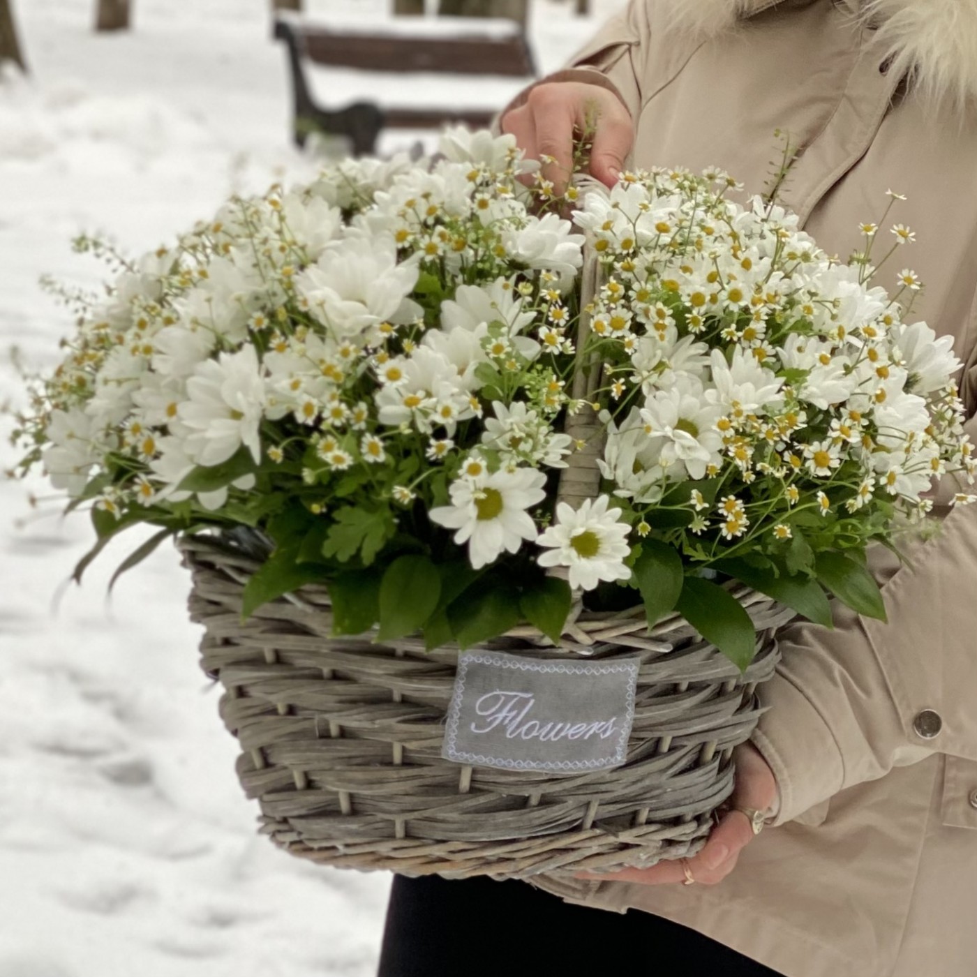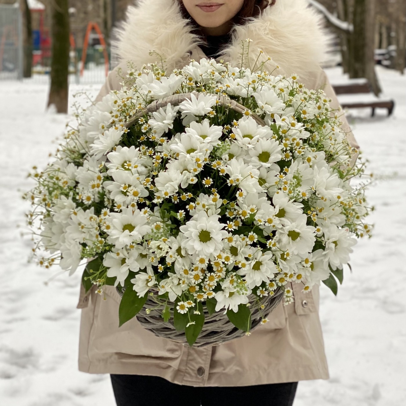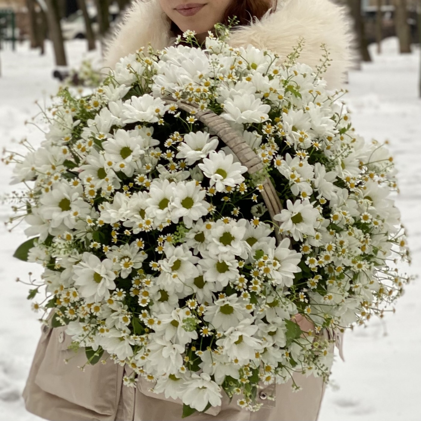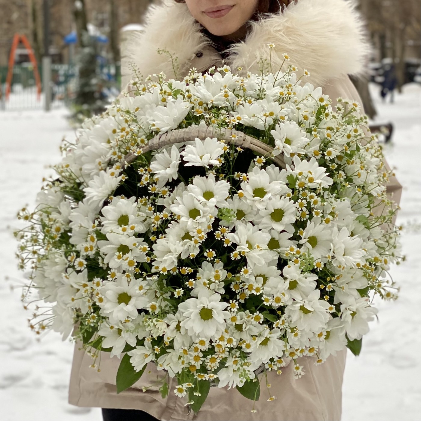 Корзина душистых хризантем и ромашек